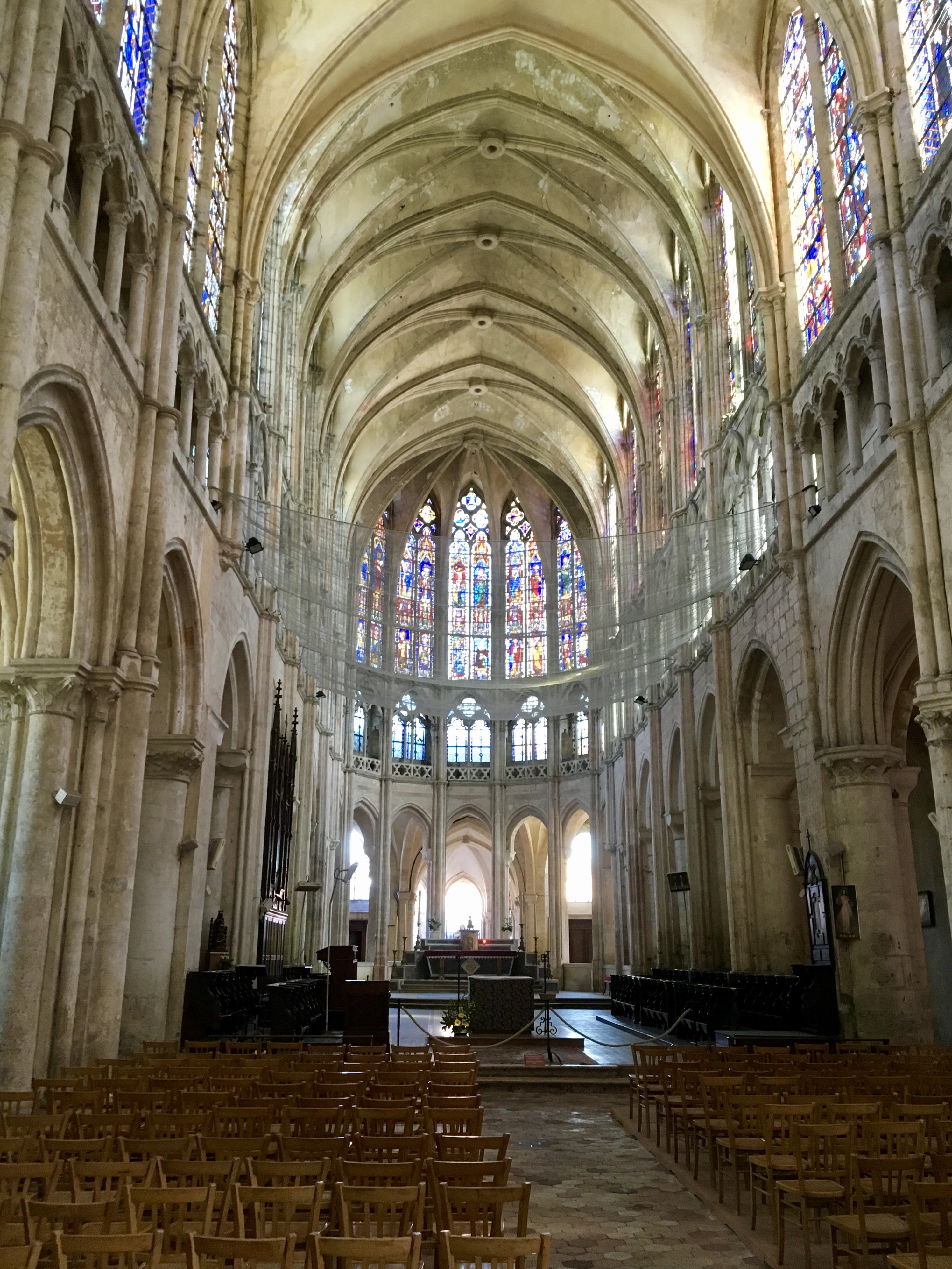 Beaux vitraux mais cette église a besoin de gros travaux ( filets de sécurité pour chute de pierres )