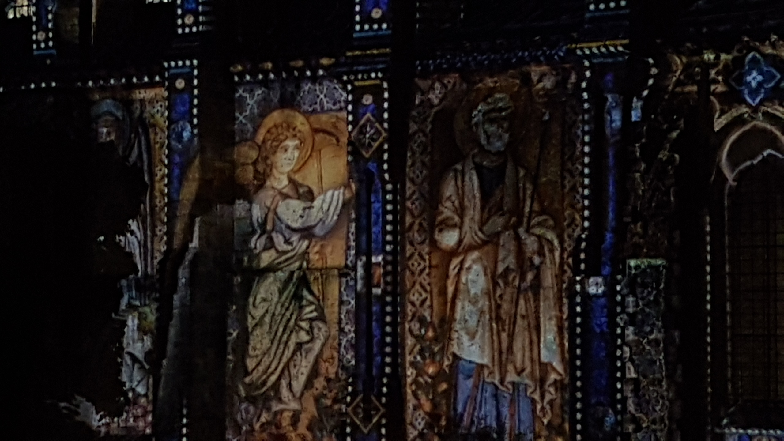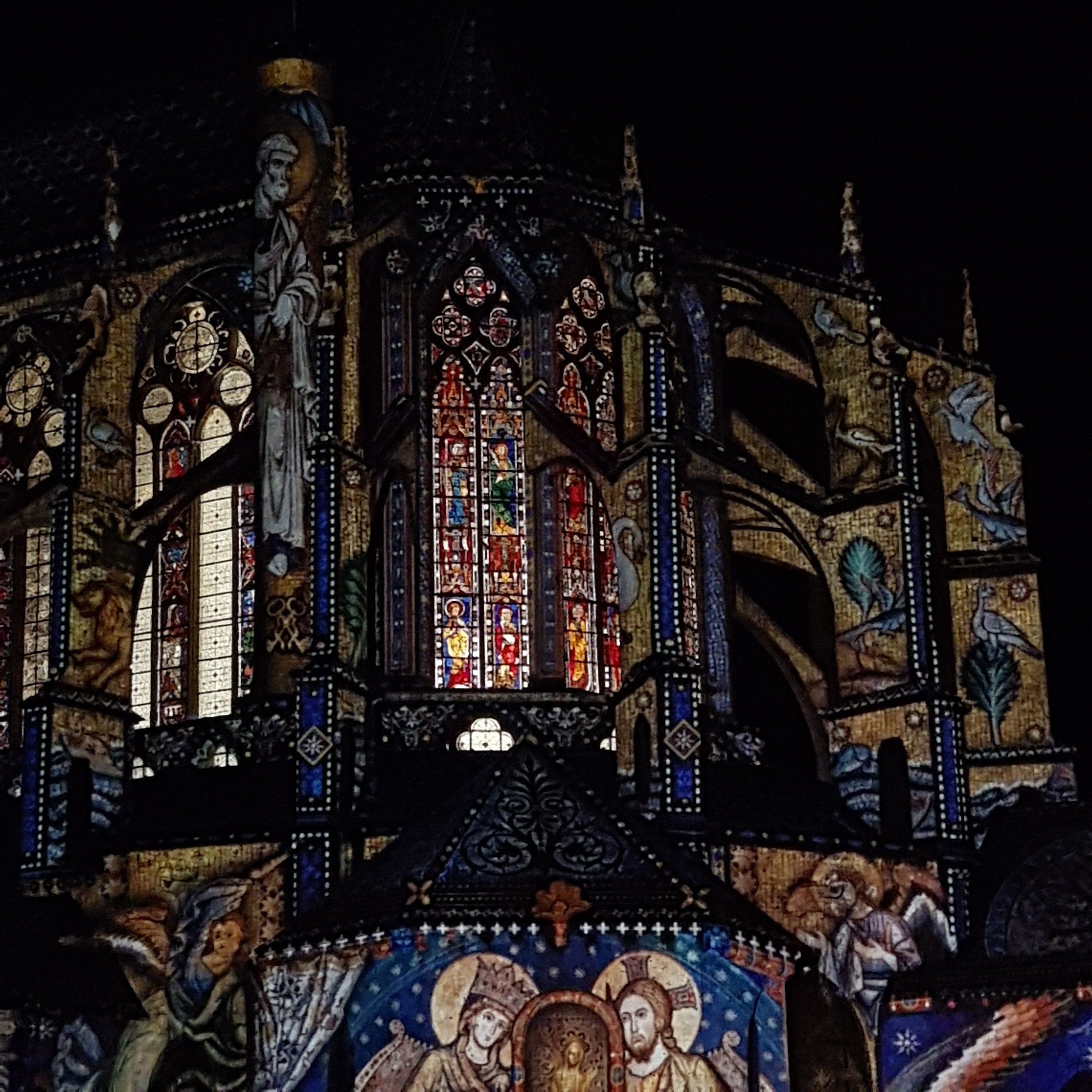 Sur l'église Saint Pierre lès illuminations de Chartres en lumières sont très belles même si moins impressionnantes que sur la cathédrale.