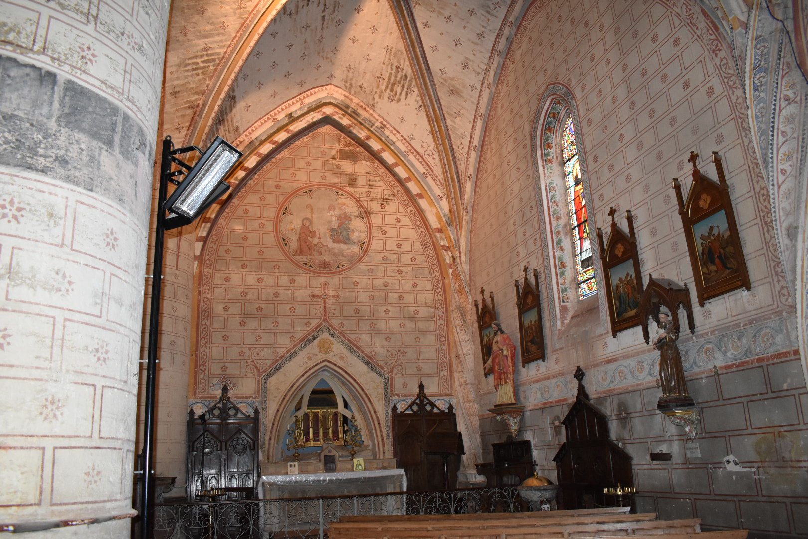 Église classée par l'UNESCO au titre du patrimoine des chemins de Compostelle. Peintures murales intérieures de l'époque baroque. À voir. Ouvert les dimanche d'été, le reste du temps, on peut contacter la personne indiquée sur le panneau à l'entrée. Point de vue sur l'abbaye de La Sauve Majeure.