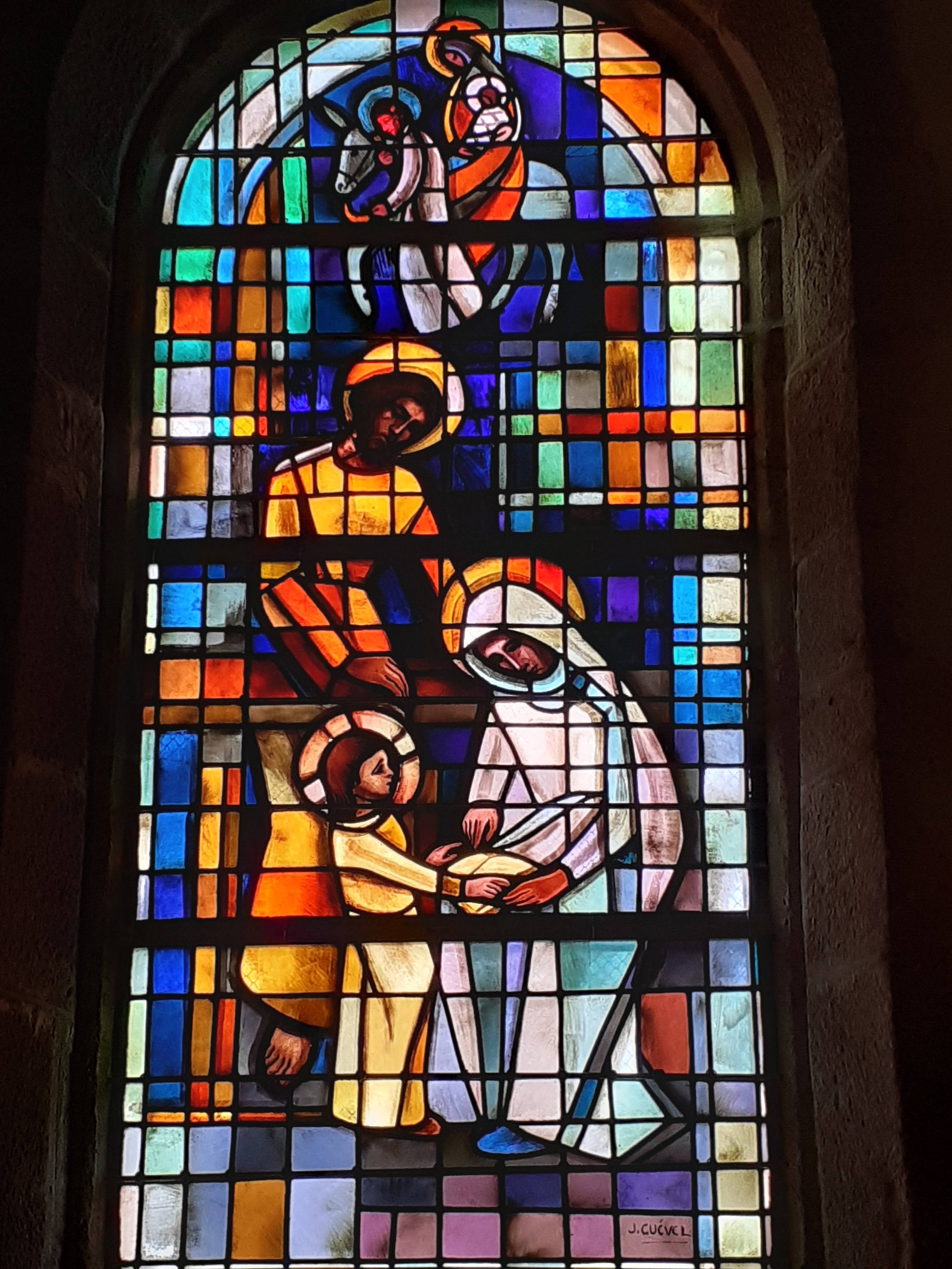 Église ouverte, mais avec une messe en cours, donc, respect. Visite à programmer pour un prochain passage. Belle croix bannière. 2022 - Retour sur la commune, Église ouverte, alors, visite. De jolis vitraux, autant modernes que plus anciens. Statuettes et chemin de croix.