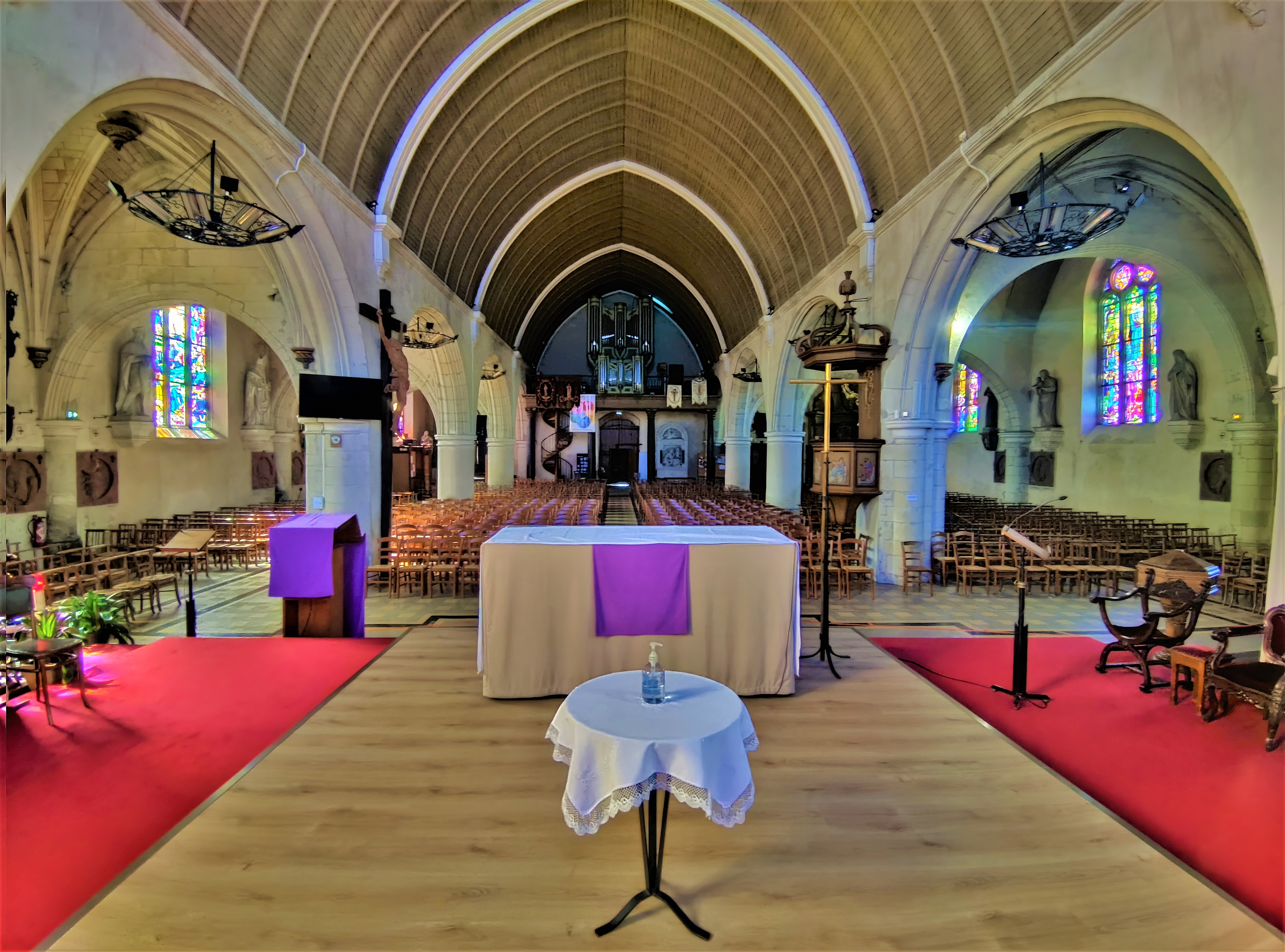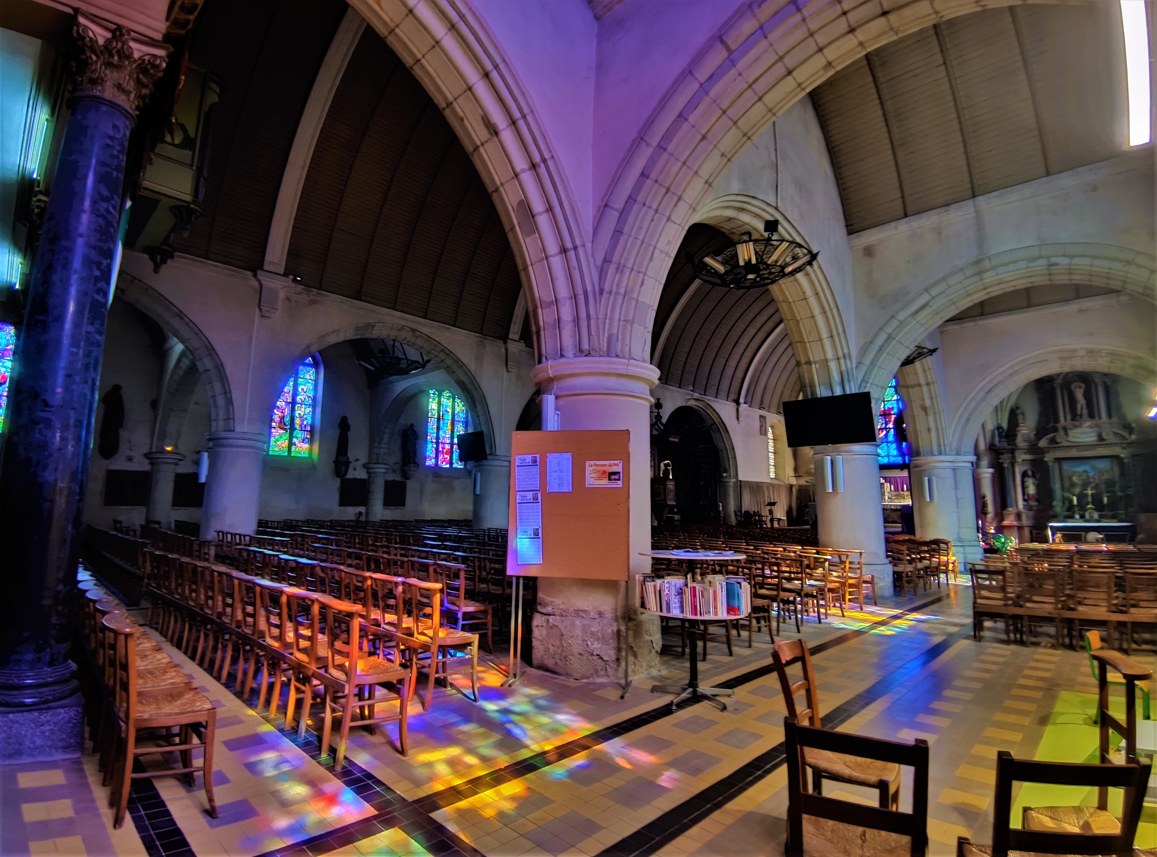Église lumineuse et chaleureuse avec ses vitraux très colorés !