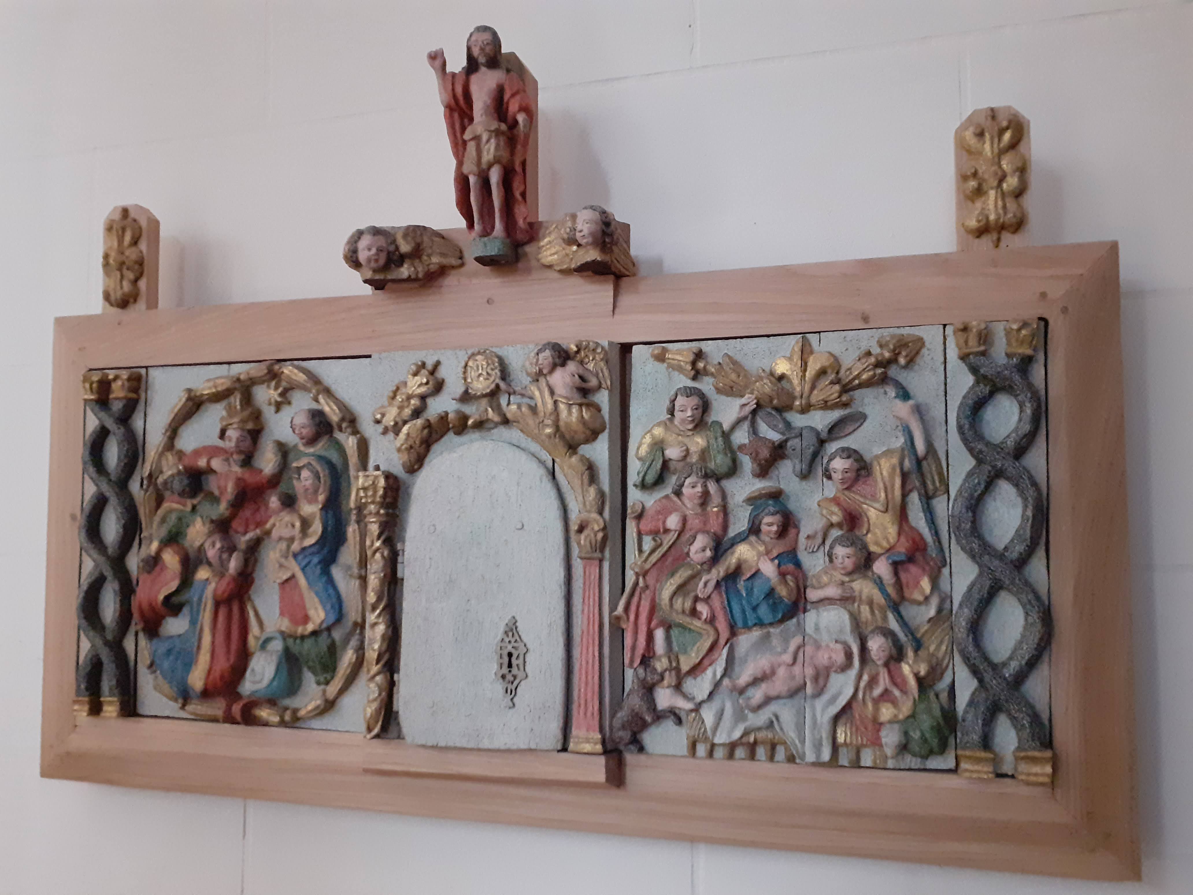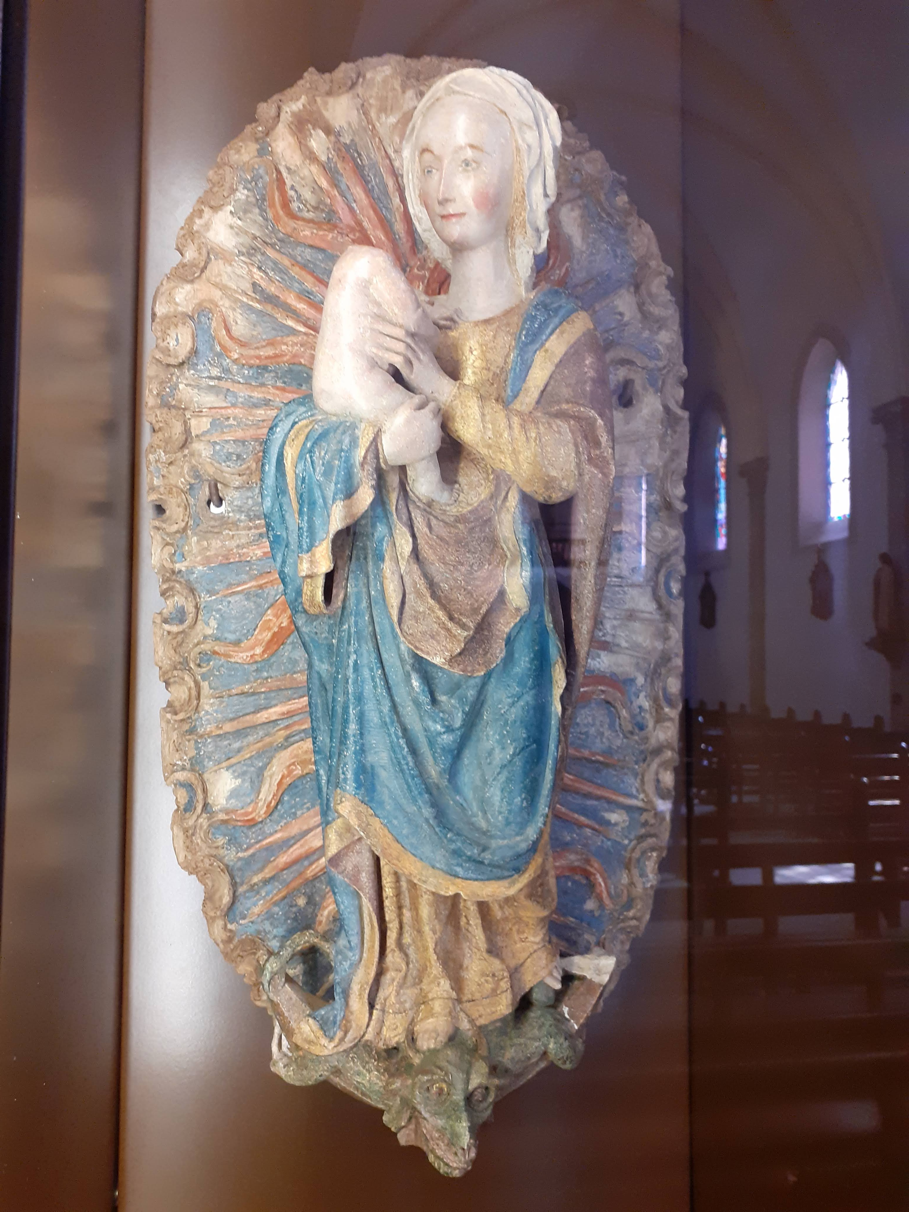 Église fin XIX ème en forme de croix latine, la première de la fin du XVI ème siècle, menaçant ruine ayant été détruite. Un clocher assez haut des années 30. Intérieur assez simple, quelques beaux vitraux, et, trésor de la paroisse, une très belle Vierge à l'enfant, de la fin du XV ème. Sculptée dans un calcaire fin, et décor polychrome.