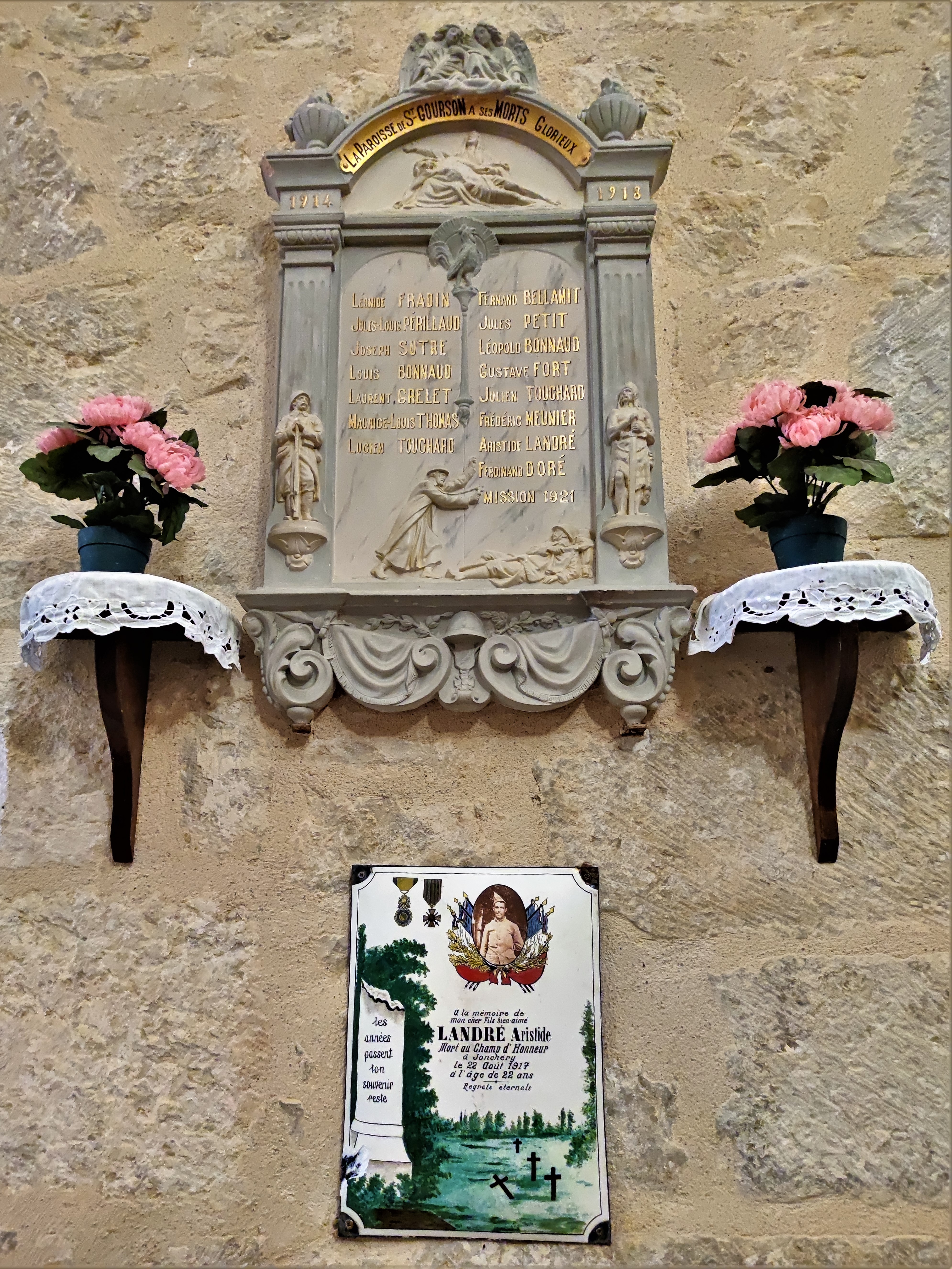 Cette église, aujourd'hui en état remarquable, intérieurement et extérieurement, est particulièrement accueillante. Cette église possède le charme particulier des églises de bourgs, agora du village, lieu paroissial de décisions et de spiritualité. Son caquetoire, très simple, a connu les réunions d'après-messe, durant lesquelles le syndic fixait, pour chaque paroissien, le montant de la taille. L'église Saint-Pierre, aujourd'hui en état remarquable, intérieurement et extérieurement, est particulièrement accueillante. Le samedi 29 juin 2019, à 18h30, une messe y fut célébrée, et un vin d'honneur servi à la salle des fêtes à l'occasion de la fin du chantier de restauration. La petite commune de Saint-Gourson, suite à de longues démarches, a bénéficié d'aides pour les travaux de restauration extérieure. Ce chantier fut donc délégué à des entreprises, chantier qui dura 5 ans. L'absence d'aide pour la restauration intérieure a contraint l'équipe municipale à organiser et à effectuer elle-même les travaux. Le Maire, ses Adjoints et l'Employé Communal ont donc effectué un travail remarquable. Assainissement des sols, des murs et et leur mise en valeur en pierres apparentes, restauration et réparation des statues, pose d'un vitrail, etc... Chantier qui dura 7 ans, chacun mettant ses compétences au service du projet. Pour visiter l'église, il faut s'adresser à la mairie. Ce fut pour l'occasion de rencontrer l'édile, Monsieur Guy Rivalland, qui me conta les périples de cette aventure. La volonté des paroissiens de préserver leur église, des citoyens et des collectivités de sauver leur patrimoine, est fort bien mise en lumière par cet exemple.