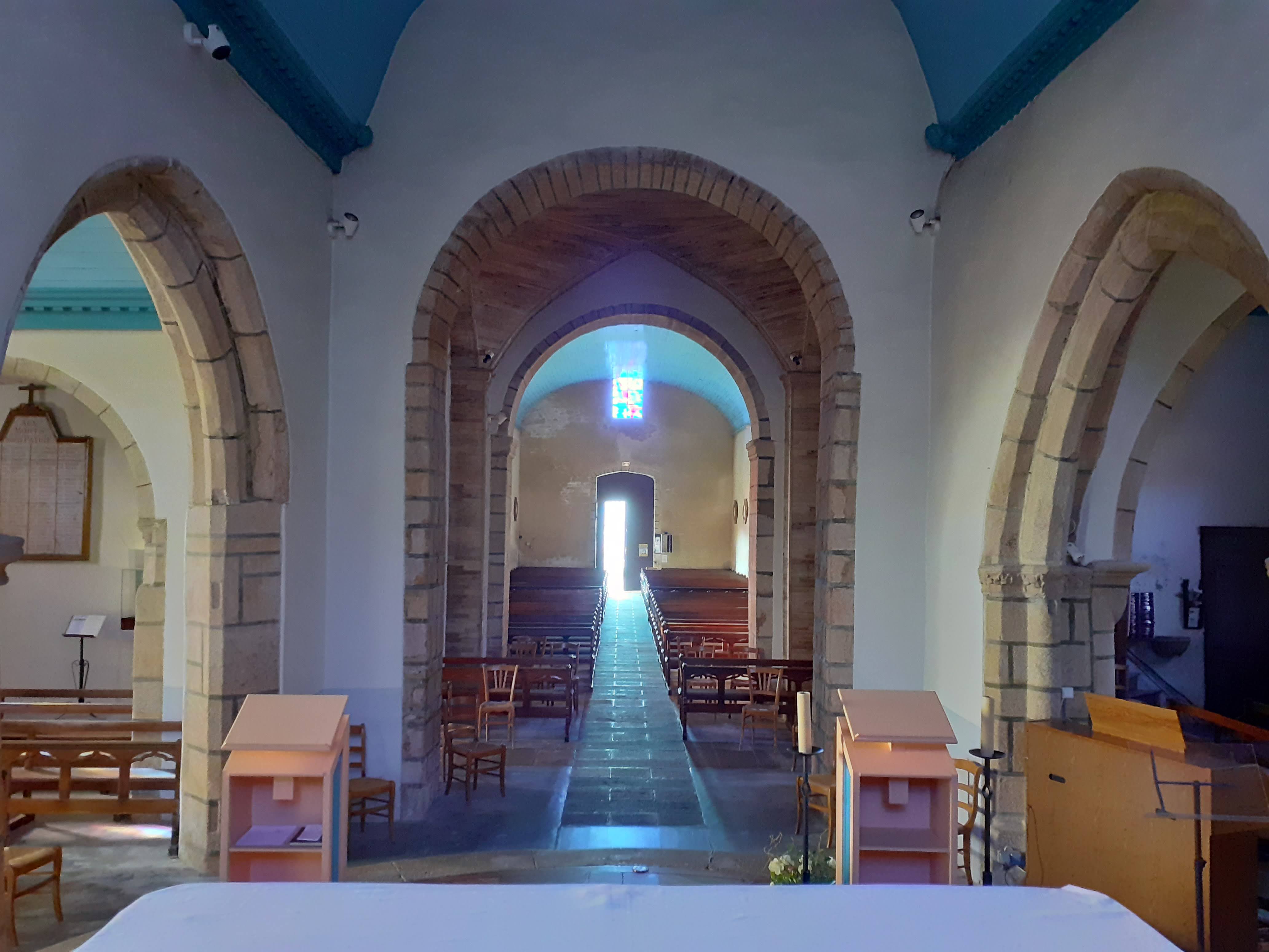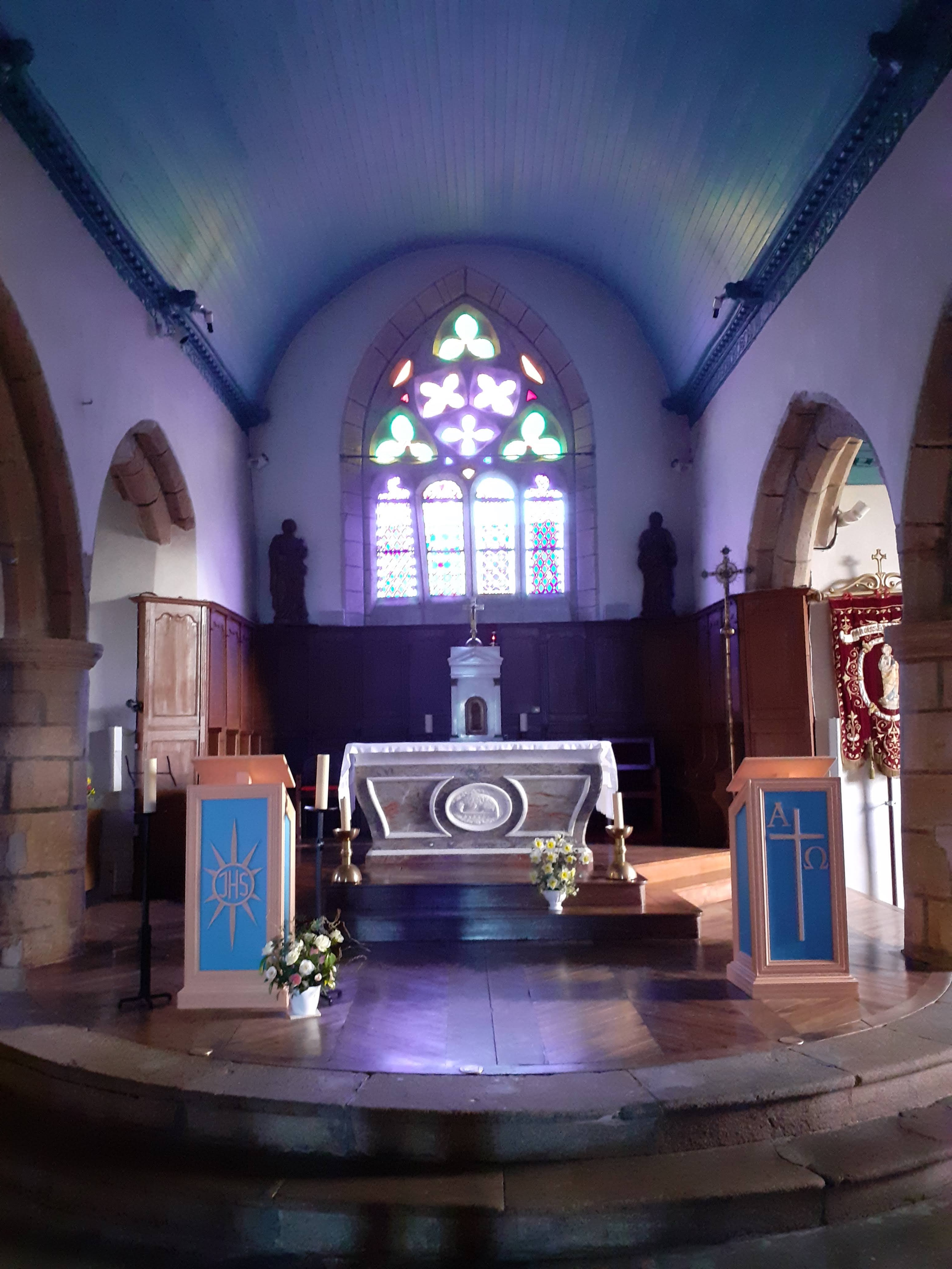 Eglise sur des fondations du XIII ème siècle Beaux objets de culte. Jolis vitraux.