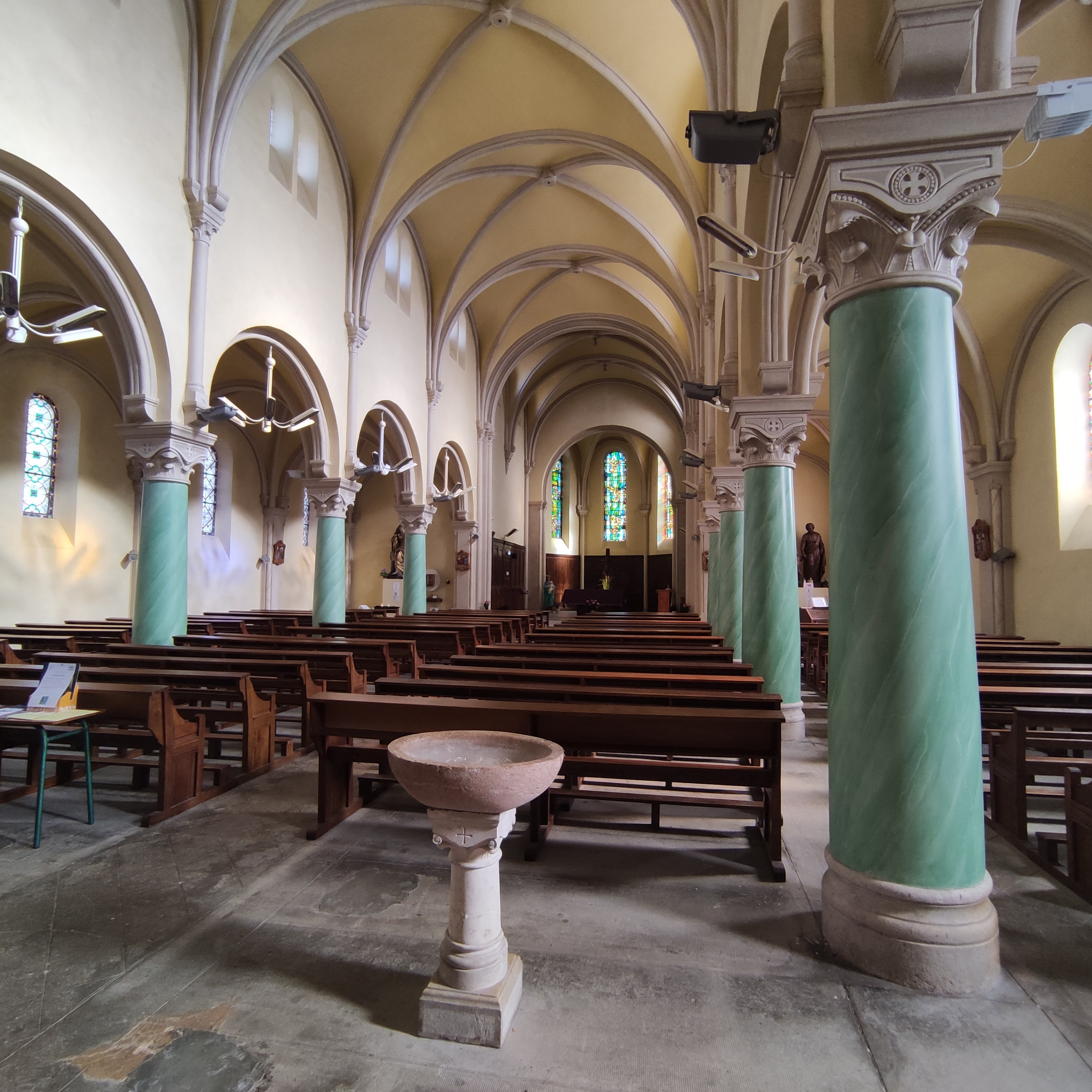 Belle église avec quelques vitraux intéressants.