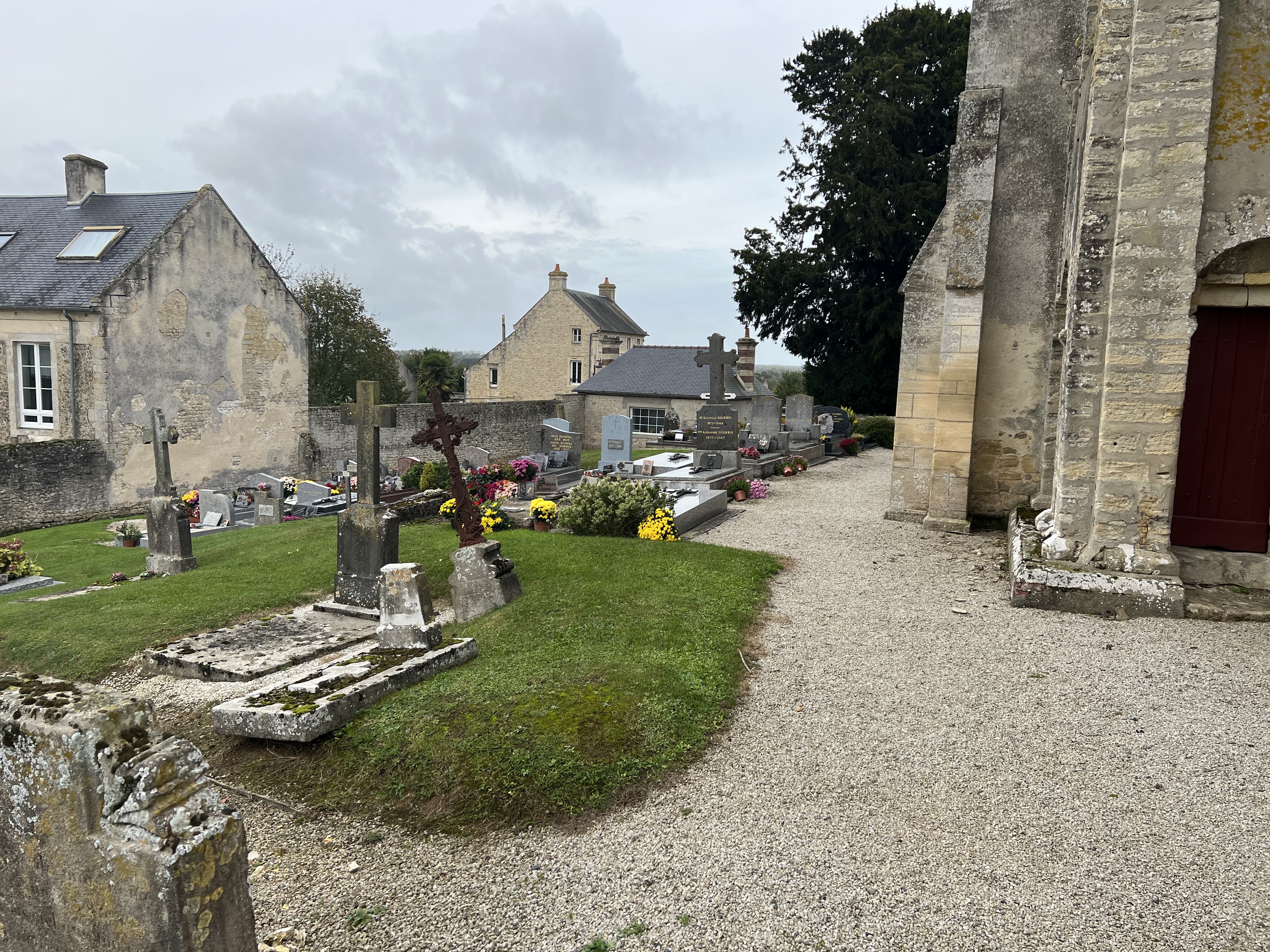 Église typique de Normandie, dans un tout petit village bien tranquille je crois. De nouvelle maison en fond un beau quartier. Voir description dans les photos