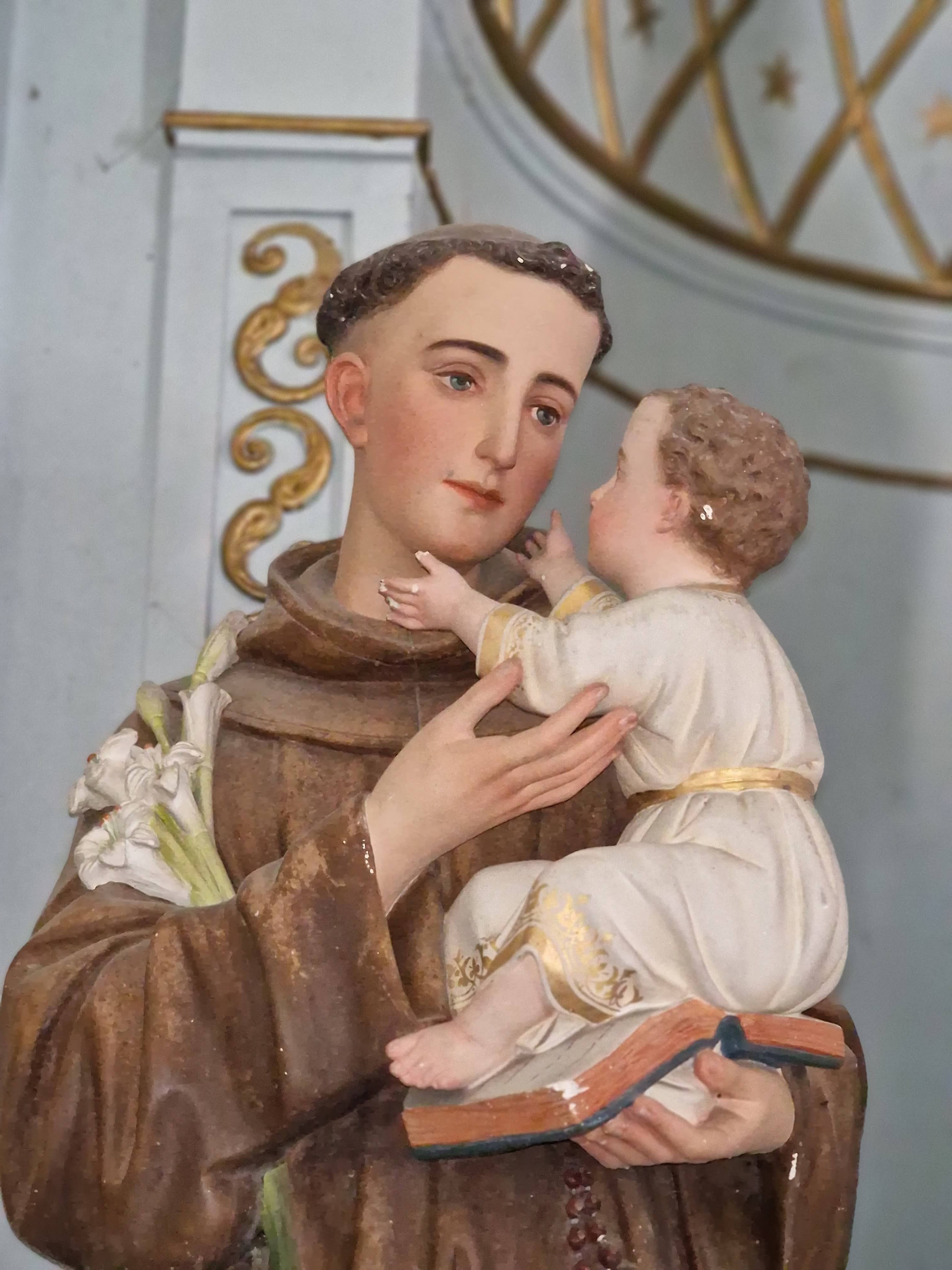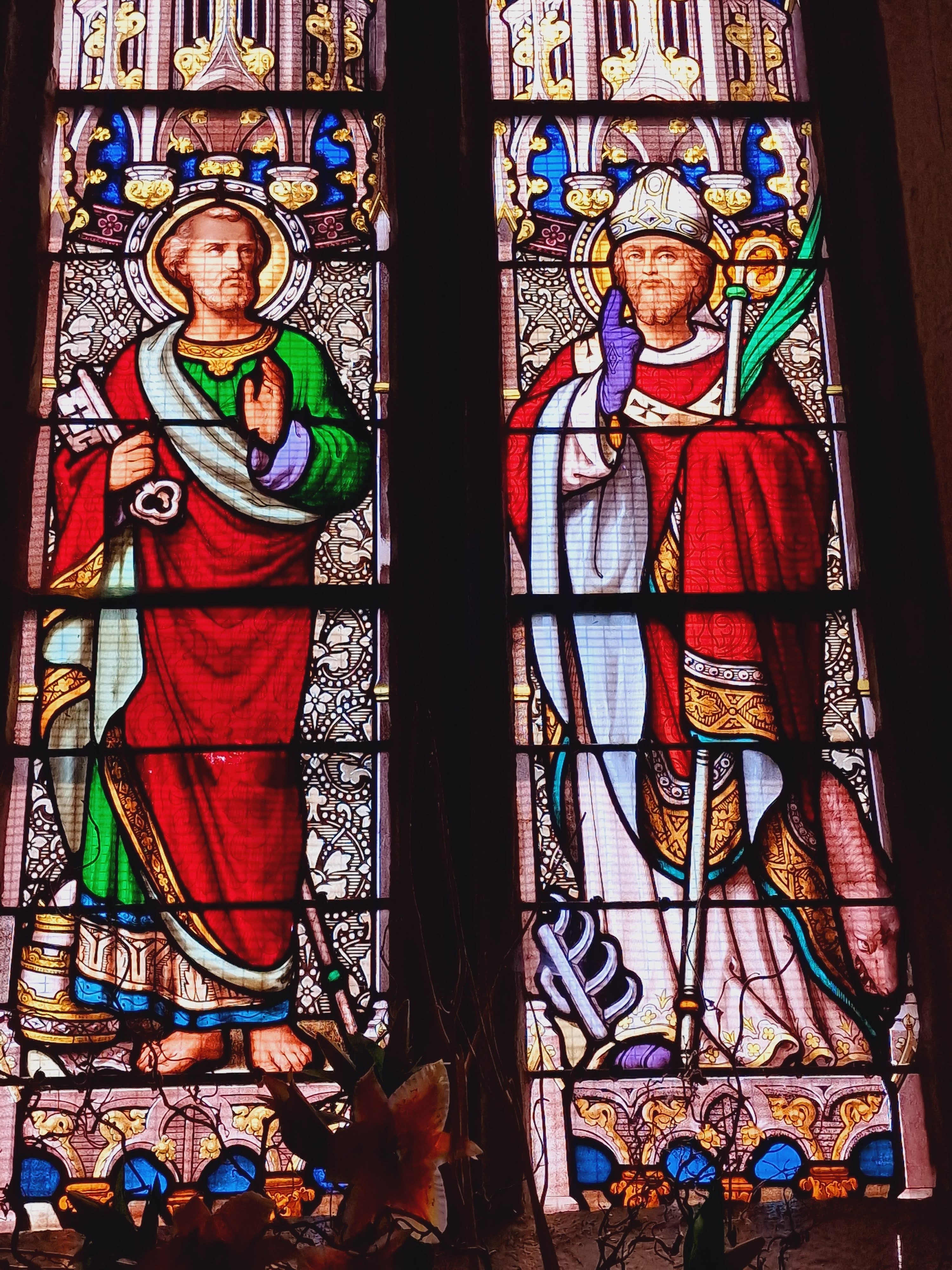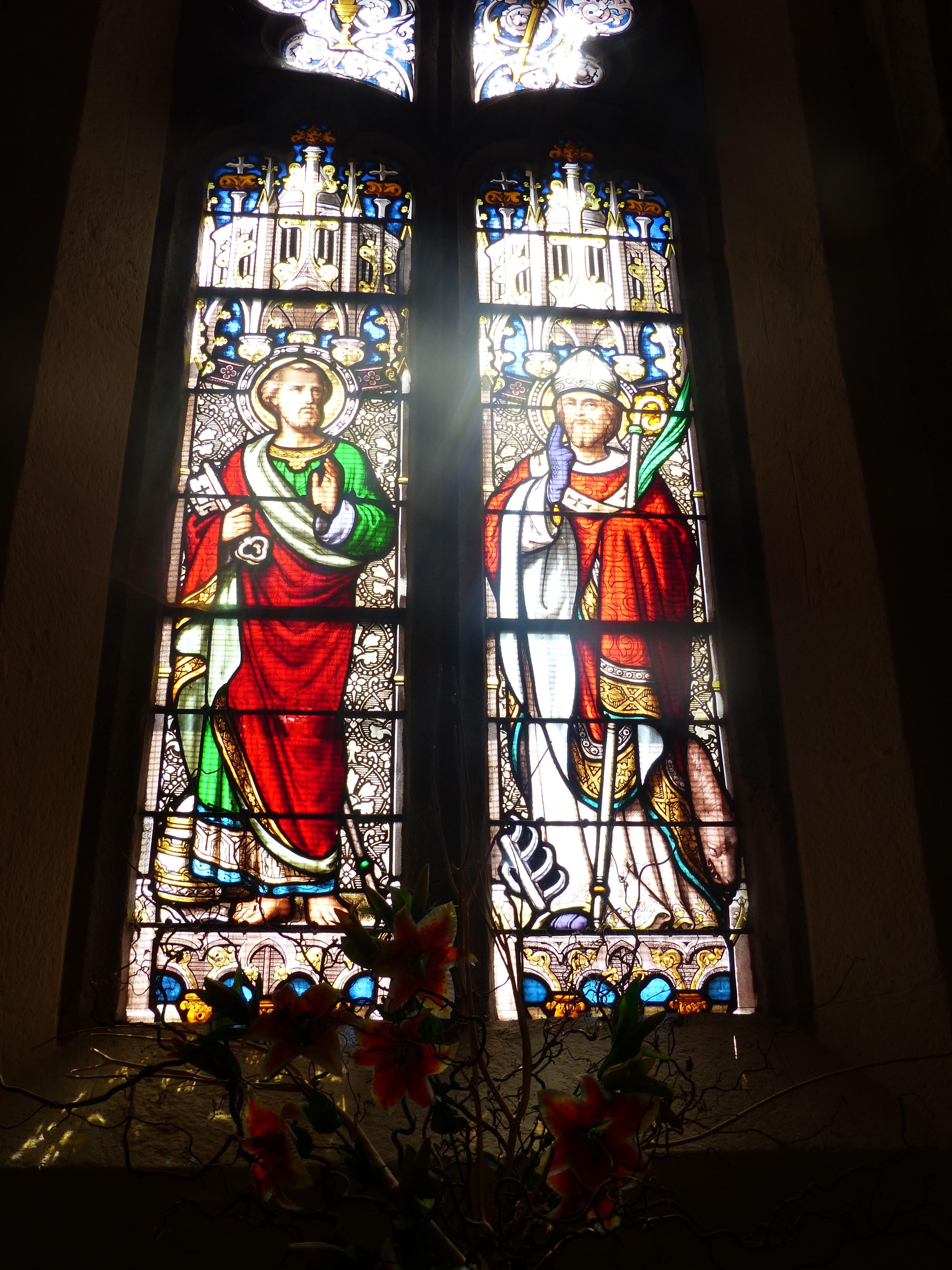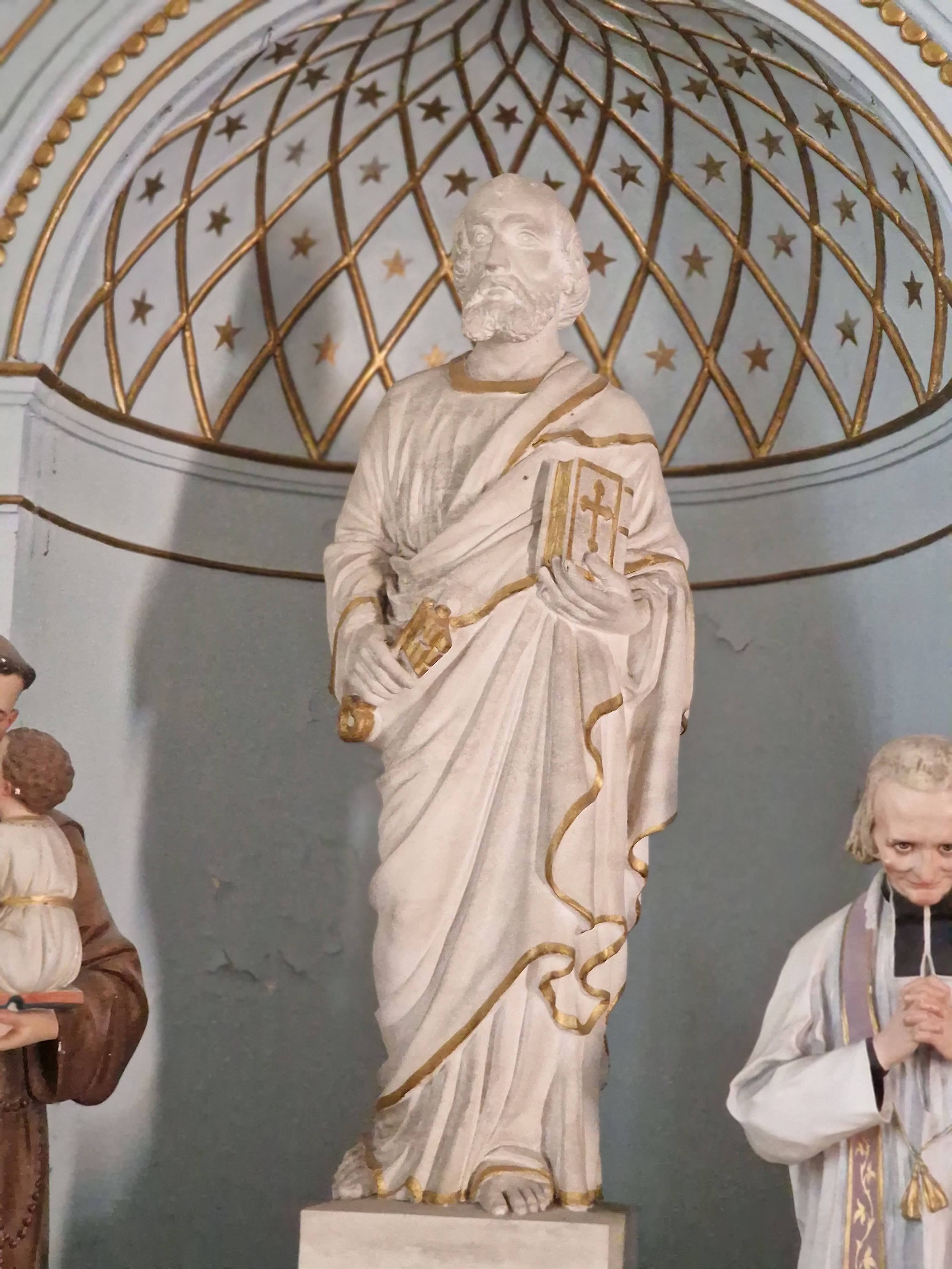 Eglise gothique. Elle a été construite en 1551, les deux chapelles ont été construites postérieurement. Petit originalité sur le fronton, à l'extérieur de l'église, un cadran solaire sur lequel on peut lire : Ailleux, pays des loups. Il semblerait que cela vienne de l'ancien nom du village qui s'appelait Aleu, leu signifiant loup en vieux français. À l'intérieur, on peut remarquer une très belle verrière avec un vitrail de Saint-Pierre, Saint-Paul, et un personnage représentant un évêque dont je ne sais le nom. De chaque côté, sur les nefs latérales des statues de saints. Dans le village, j'ai repéré plusieurs croix, dont une croix double face près de l'église, en contrebas une croix de mission en pierre de Volvic, une croix à l'entrée du village cachée par les arbres. En prenant la route en direction de Saint Boën, à la sortie du village, prendre la rue de la croix Lestrat. Au bout de la rue il y a une autre croix, et en face, un beau panorama sur la campagne avec, en cet été, des champs de blé. À droite en direction de Saint-Martin Lestra, vous remarquerez une Madone qui a été érigée par les paroissiens du village pour les 100 ans des apparitions de la Vierge à Lourdes.