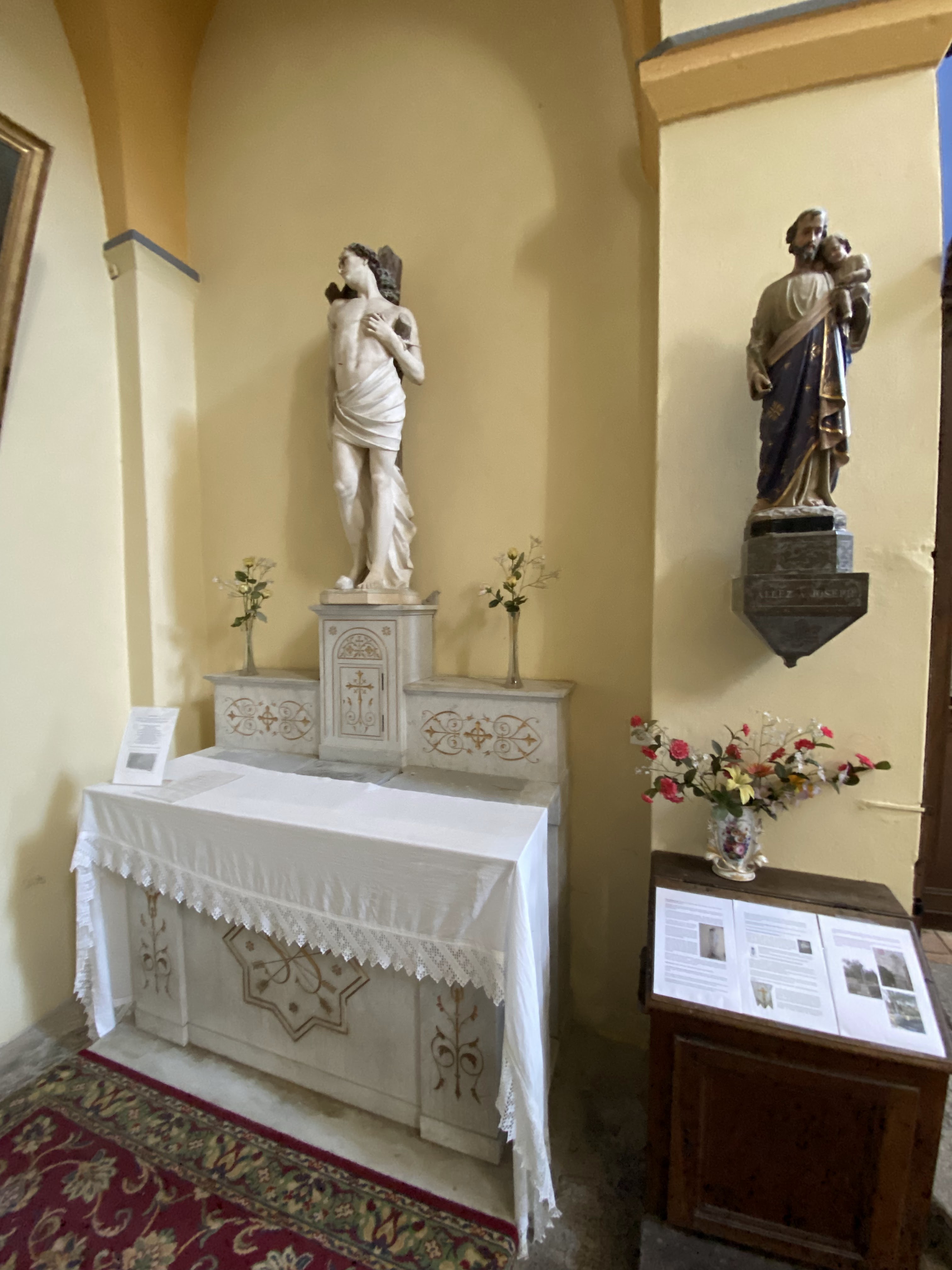 Jolie église avec son clocher soutenu par deux piliers pour former un portique. L'intérieur est simple, mais très lumineux.