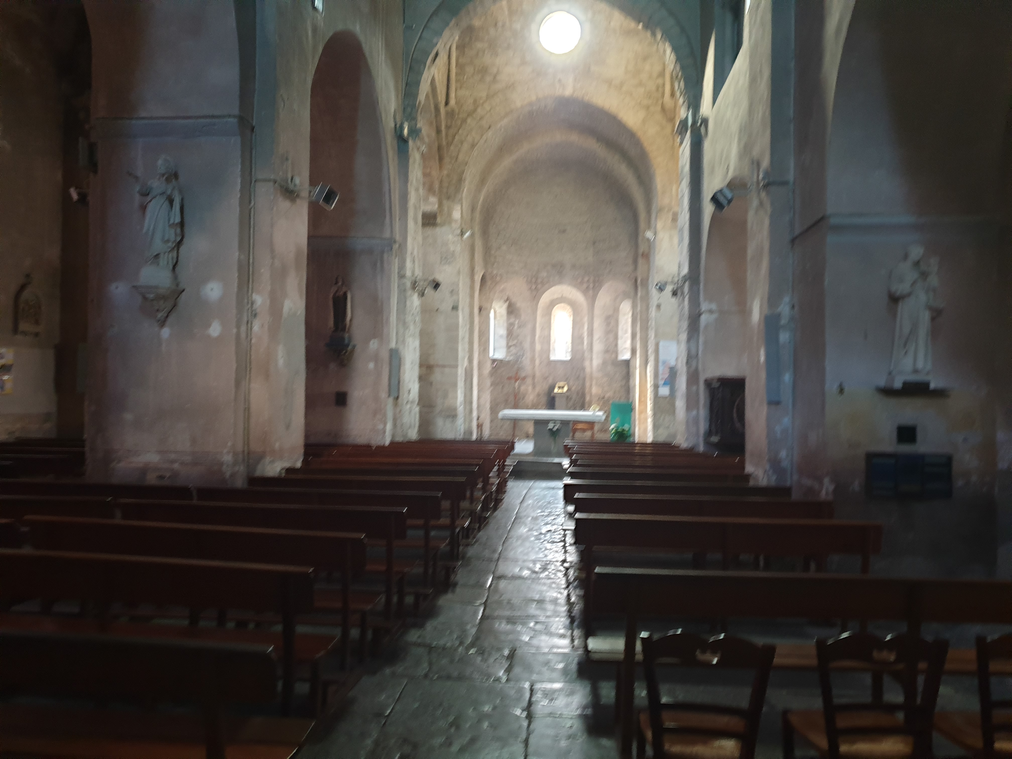 Église étonnante et avont découvert une petite cour intérieure magnifique grâce à la pancarte posée dans l'église annonçant une expo dons nous eu l'exclusivité car elle ne commençait que le lendemain. Les exposants des gents charmants et talentueux.