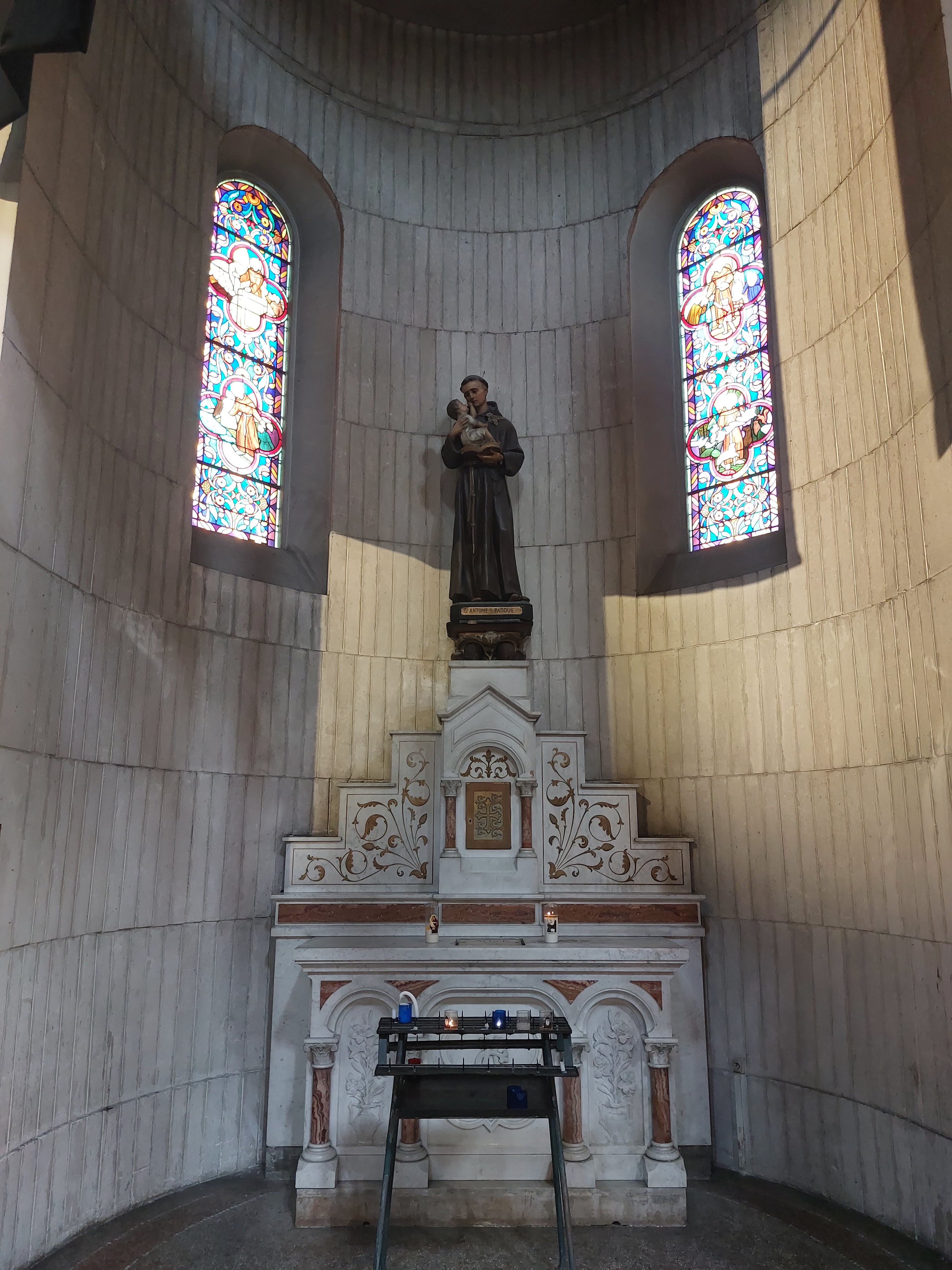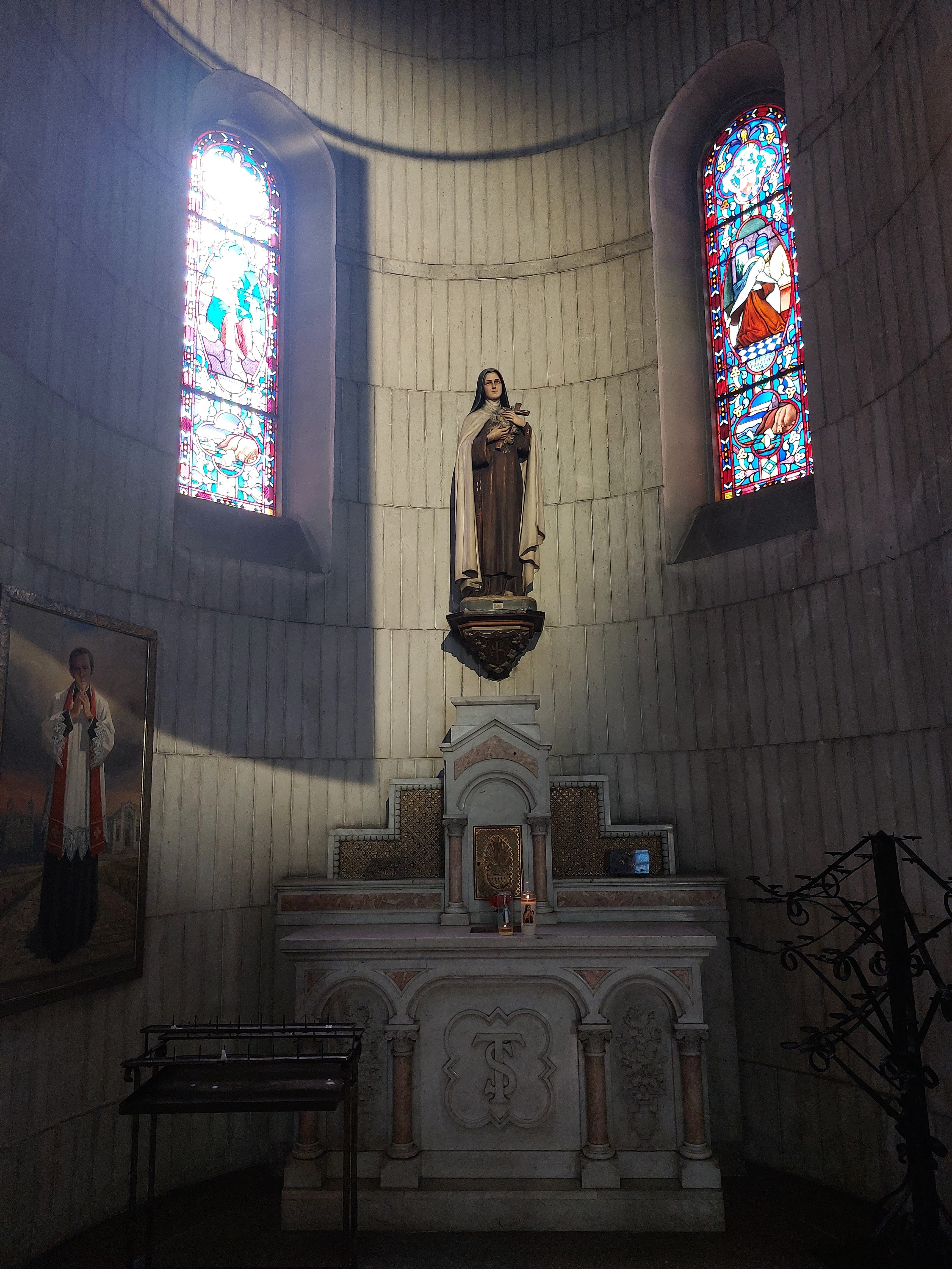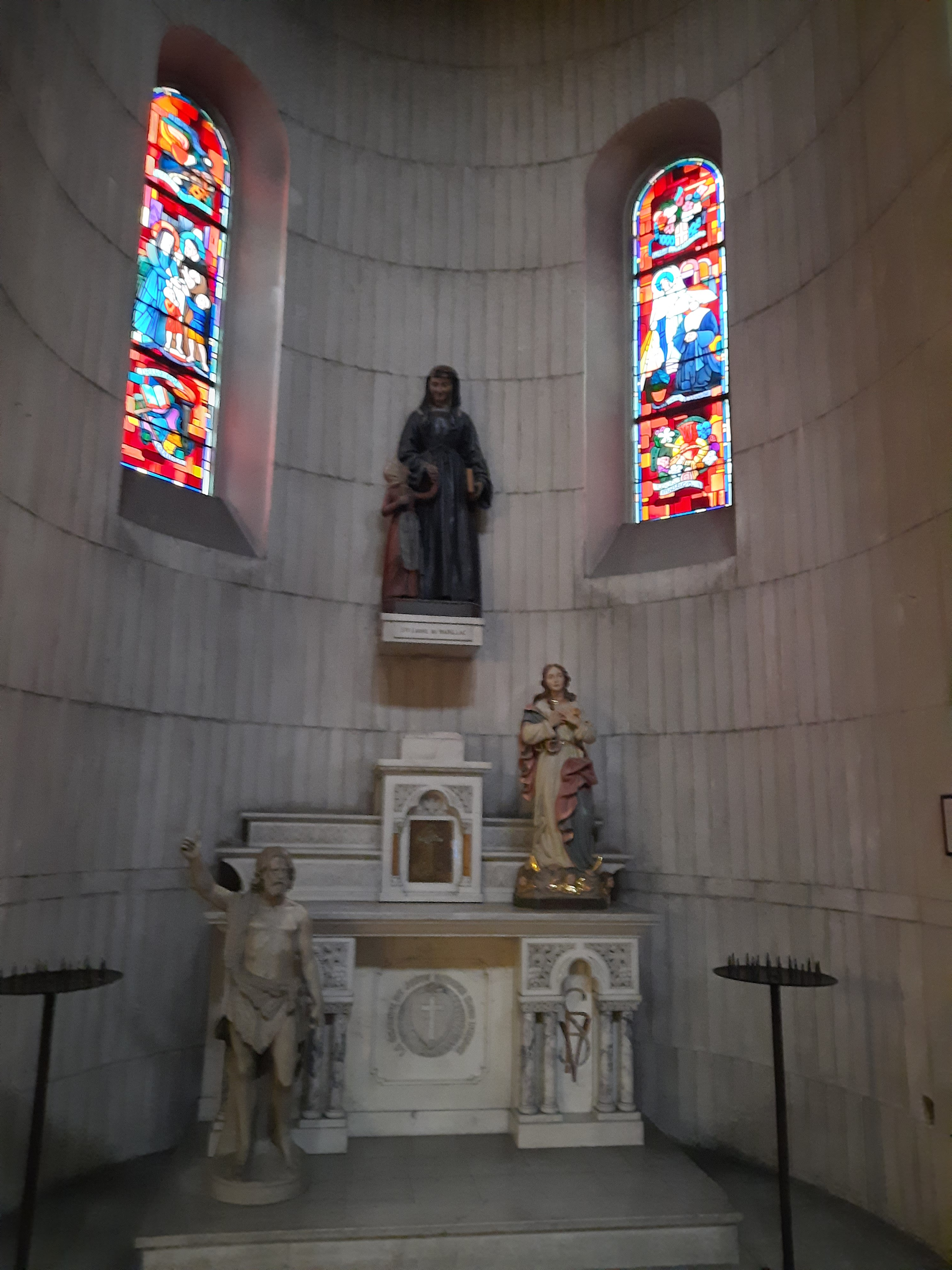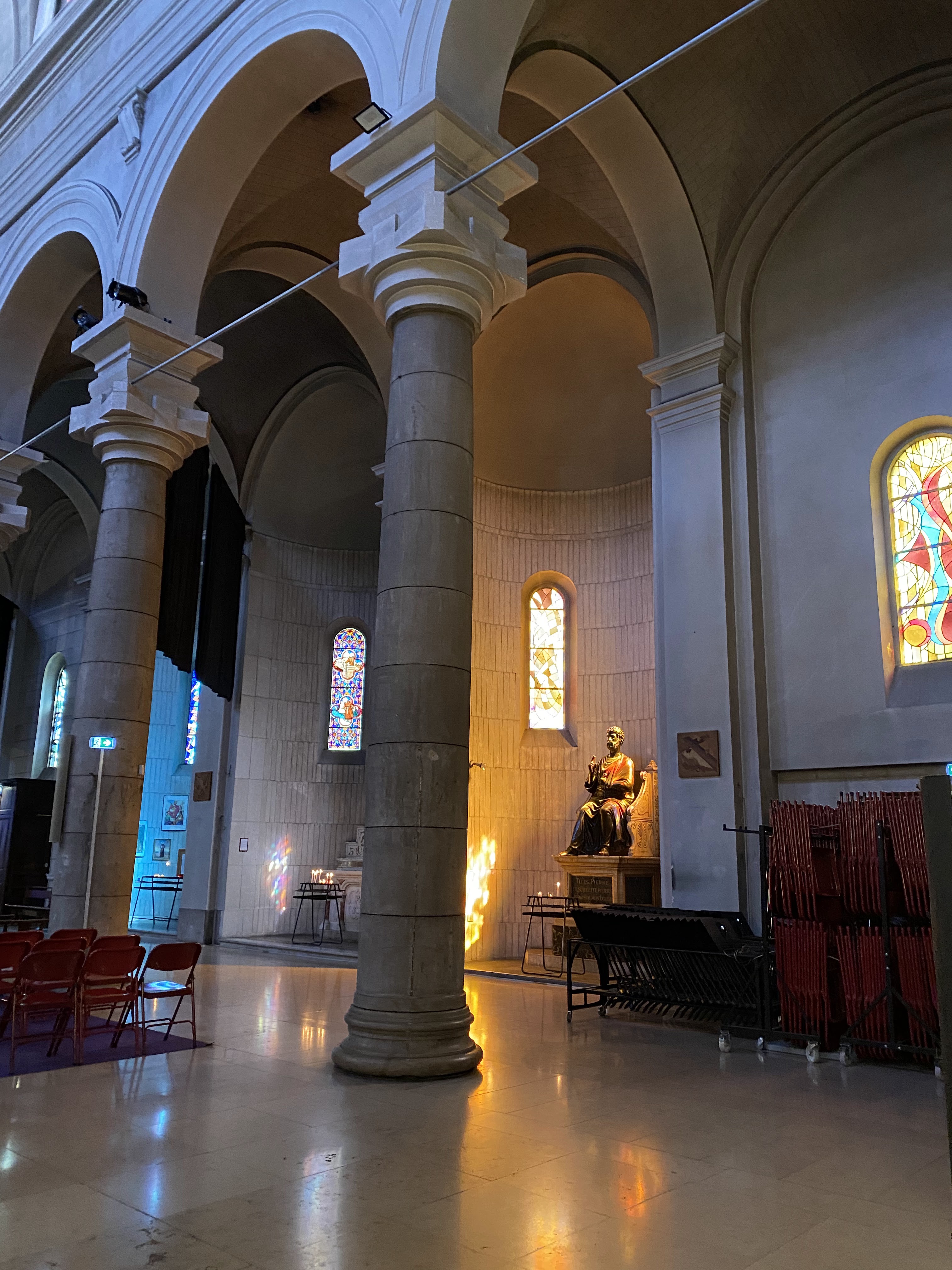 Frenesis surréaliste de l'art contemporain qui trouve difficilement sa place dans une église; Surtout que les sujets ne sont pas tres catholique...on cache le beau et noble par du cuivre avec des scultures d'un mauvais goût ou inculture total certain genre des gorilles pour representé l'homme et la femme. Et c'est rare de trouver une telle chaleur dans une église de pierre. Aucune eau bénite soi disant à cause du covid mais franchement presque toutes les églises de Nice ne prennent plus le soin de s'en occupé et ça bien avant le covid...donc à voir....Je deconseille ce lieu comme sanctuaire ou lieu de bien être...pour les messe ou les reliques je vous laisse juge. anciennement enfant de coeur dans ce lieu avant si paisible et qui ressemble comme beaucoup trop d'église à des bureau et collecte de fond.