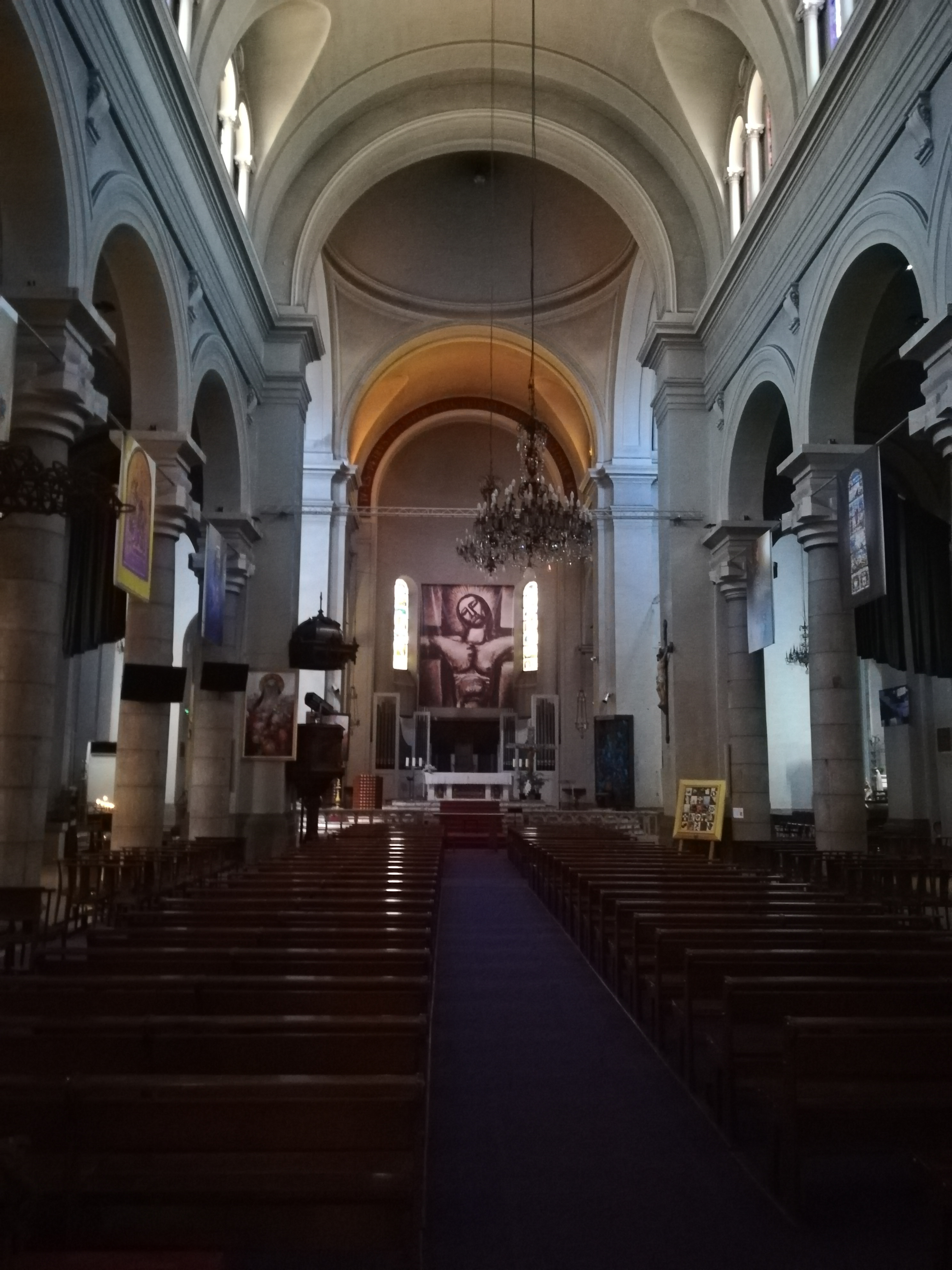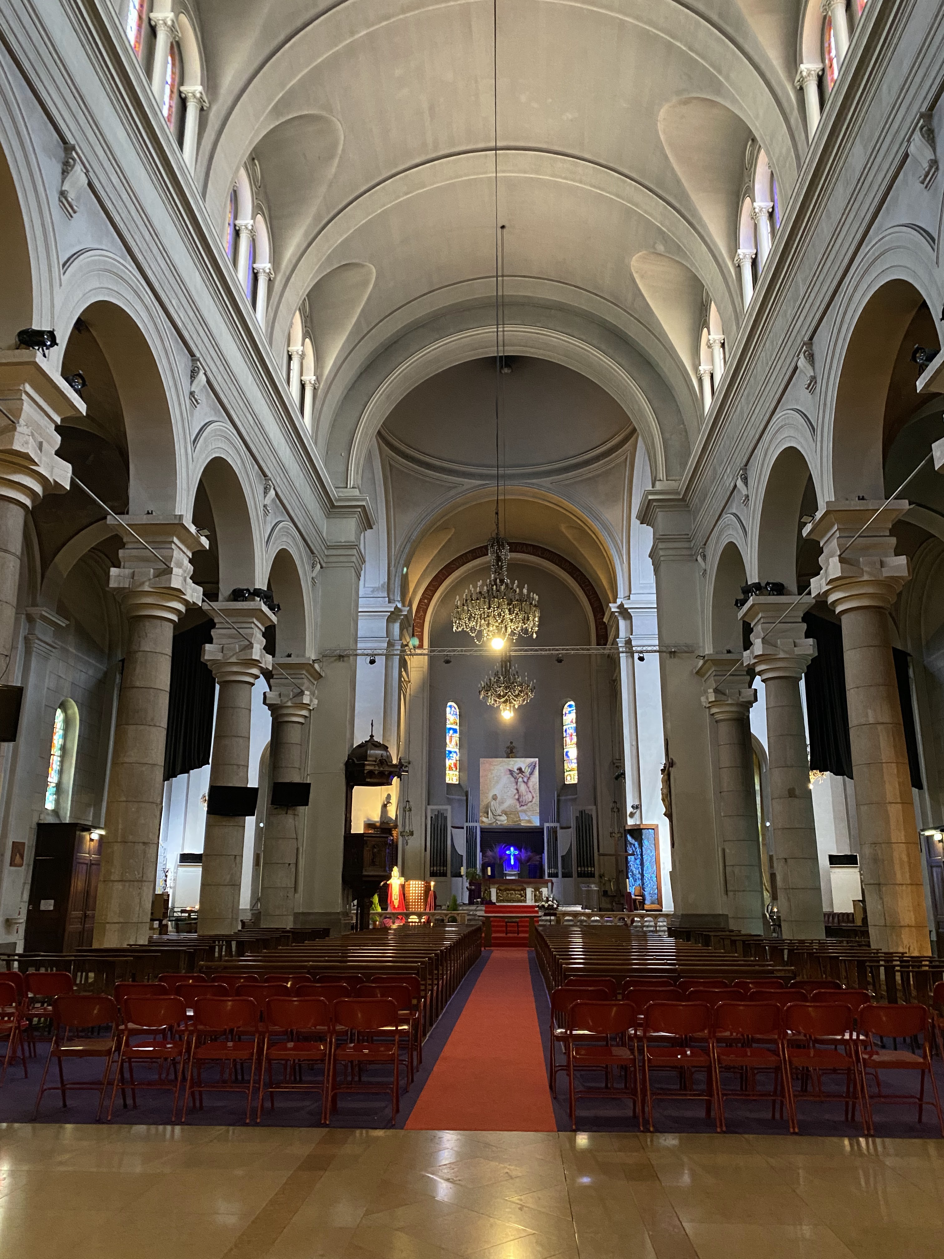 Belle église catholique, de style néogothique, située rue de France. Ambiance chaleureuse, vous vous sentez comme chez vous. Nous communiquons en français, italien et anglais, avec traduction simultanée sur les vidéos fixées sur les colonnes latérales. Le concert de fin d'année était super (mais cette année il n'a pas eu lieu....)