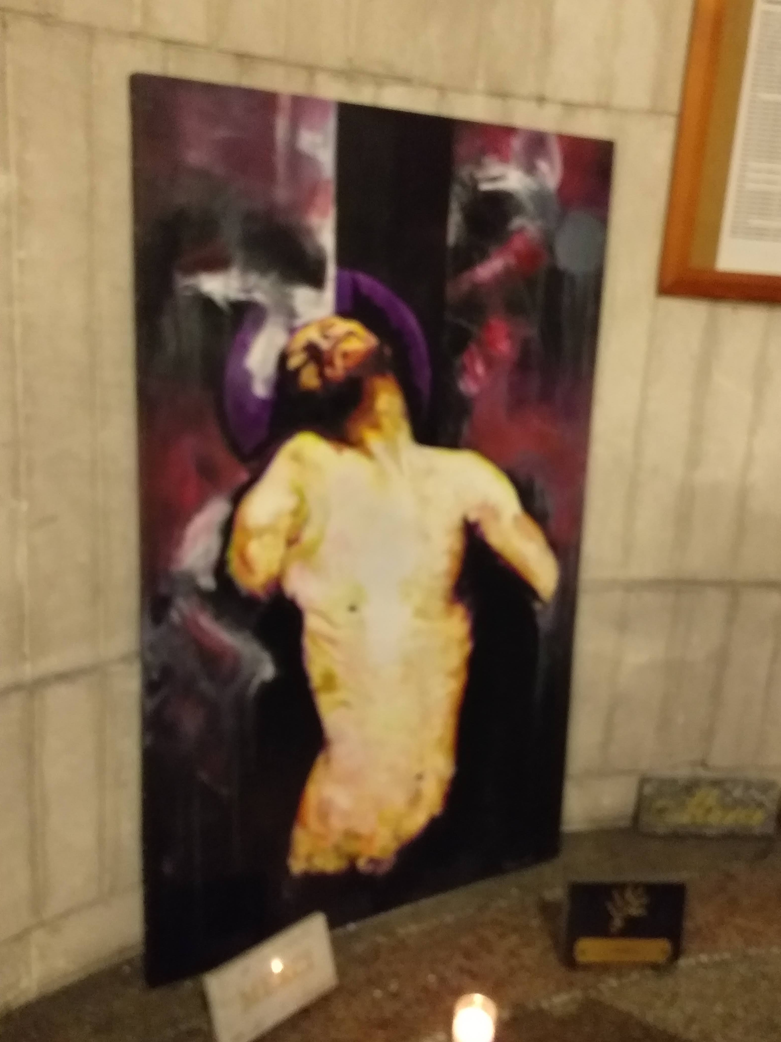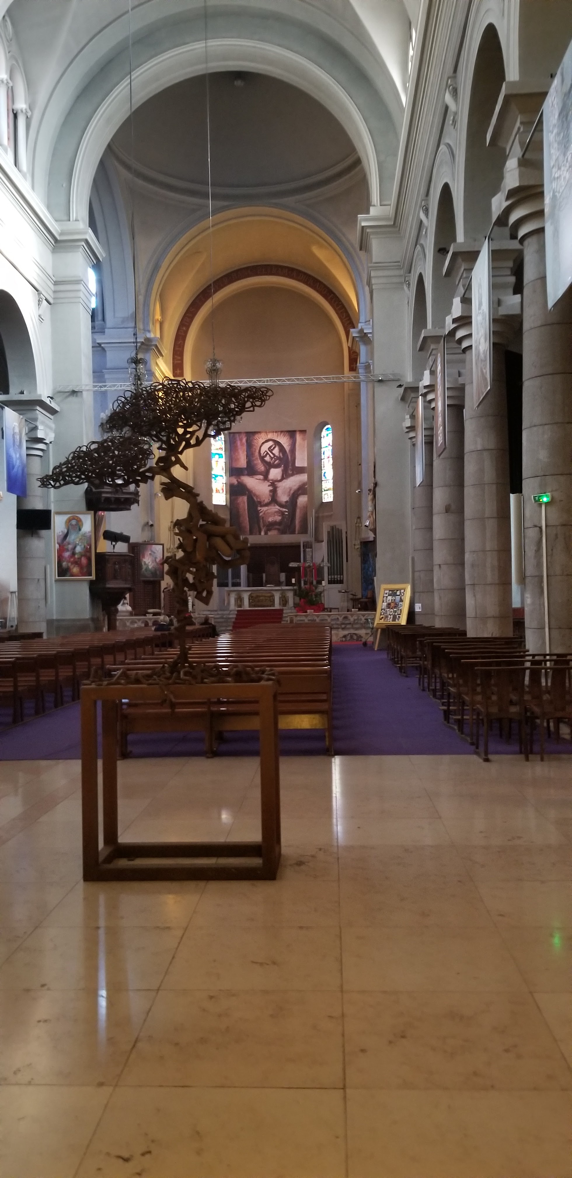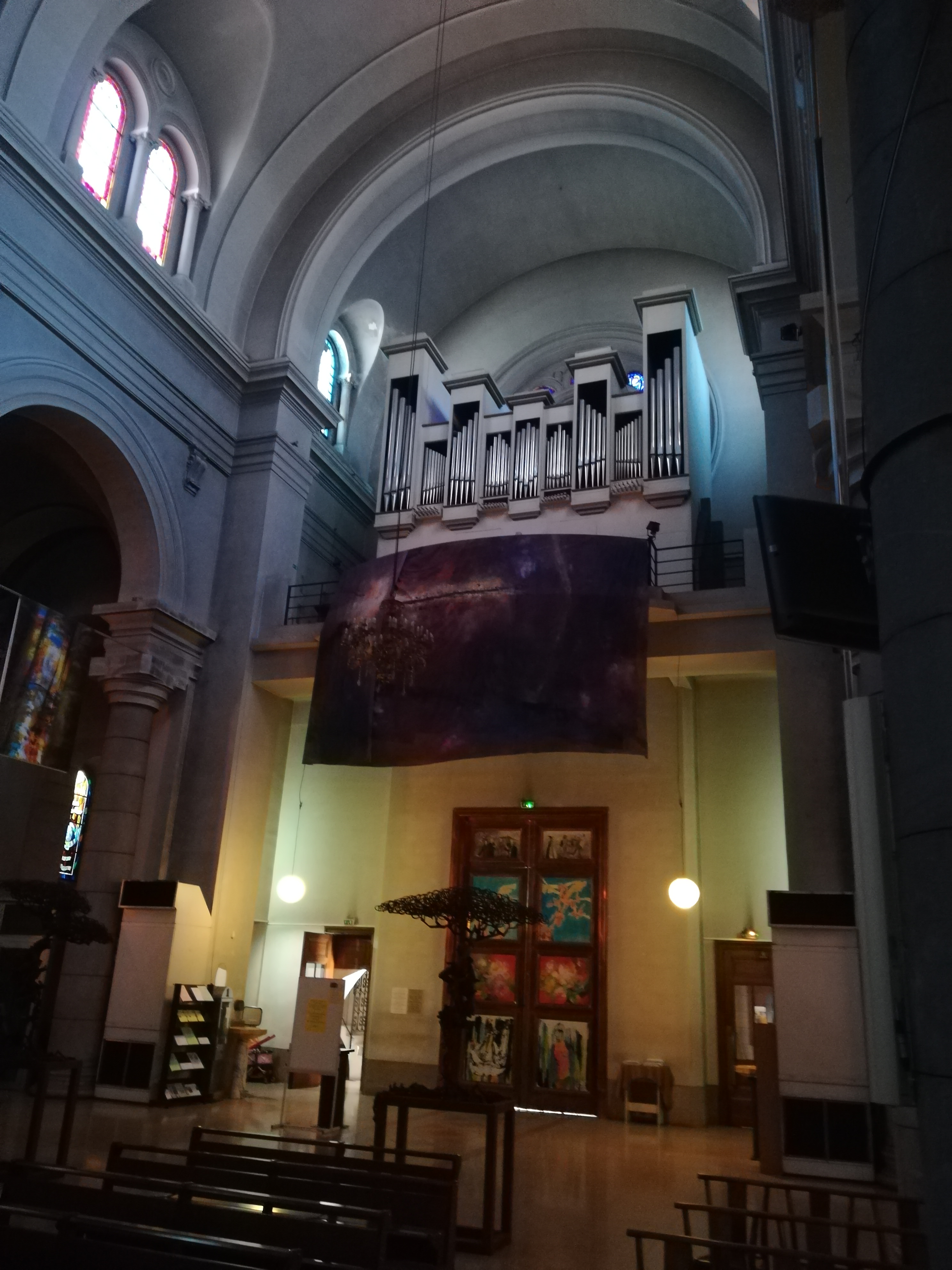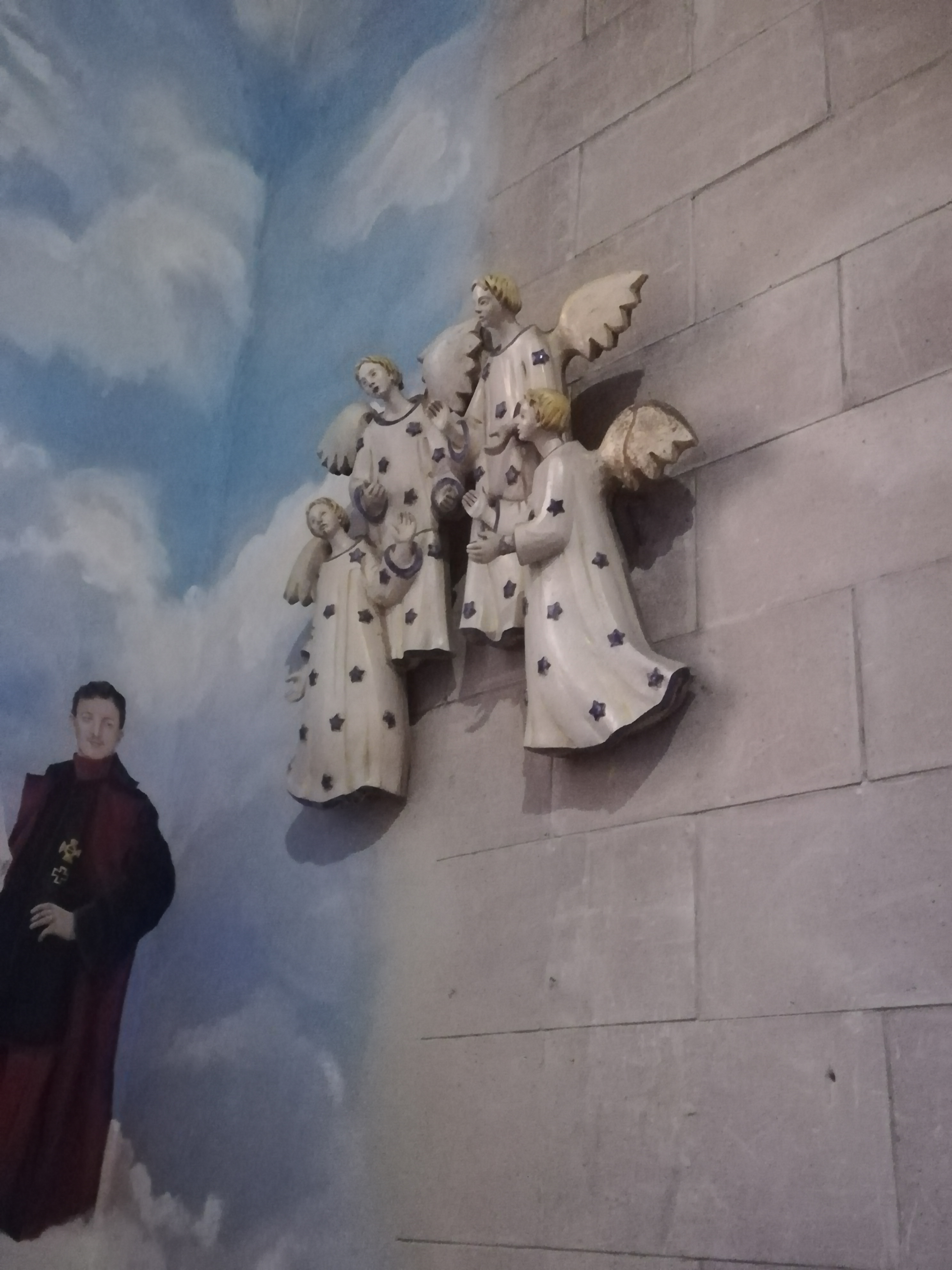 Belle œuvre d'art dans cette église. Belle messe le dimanche soir à Nice... bénie avec les 11 reliques du pape Saint-Jean-Paul à la fin de la messe.