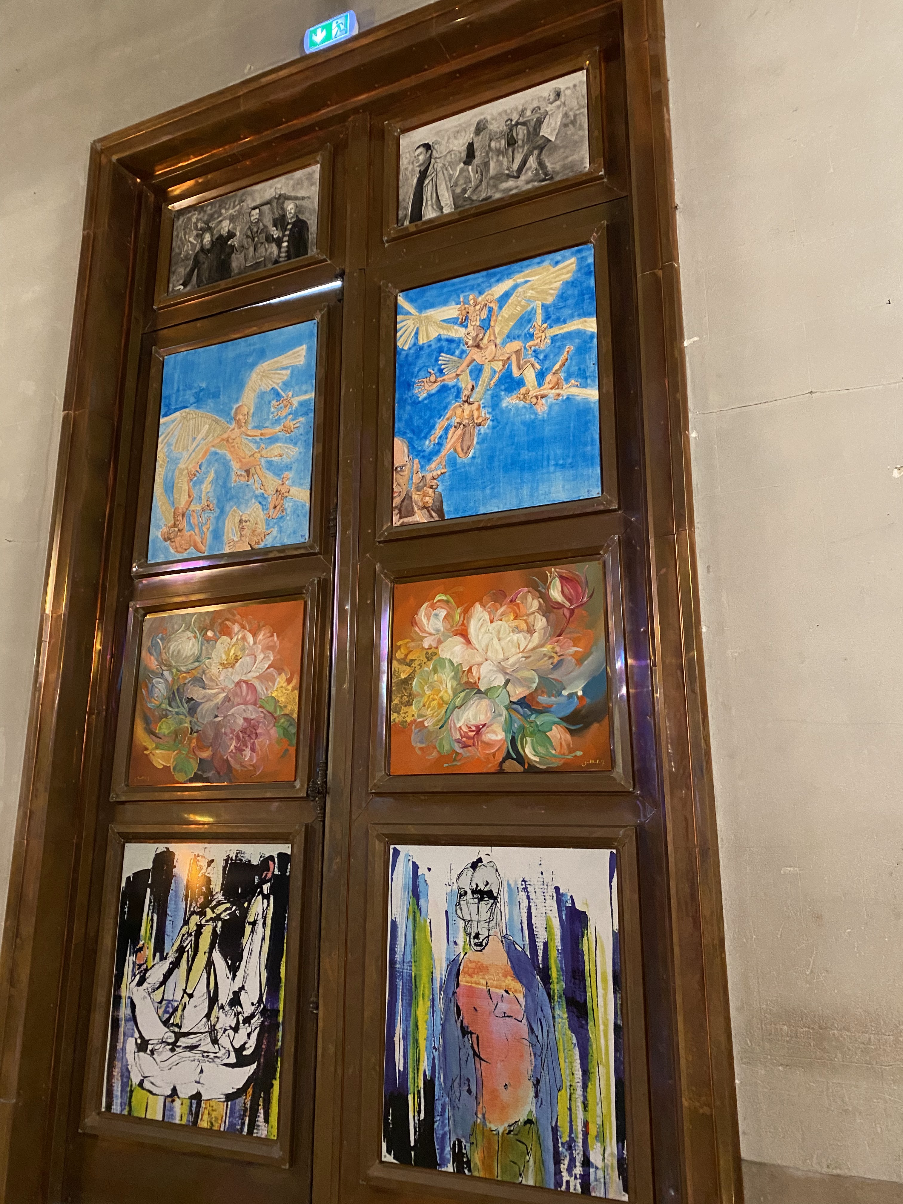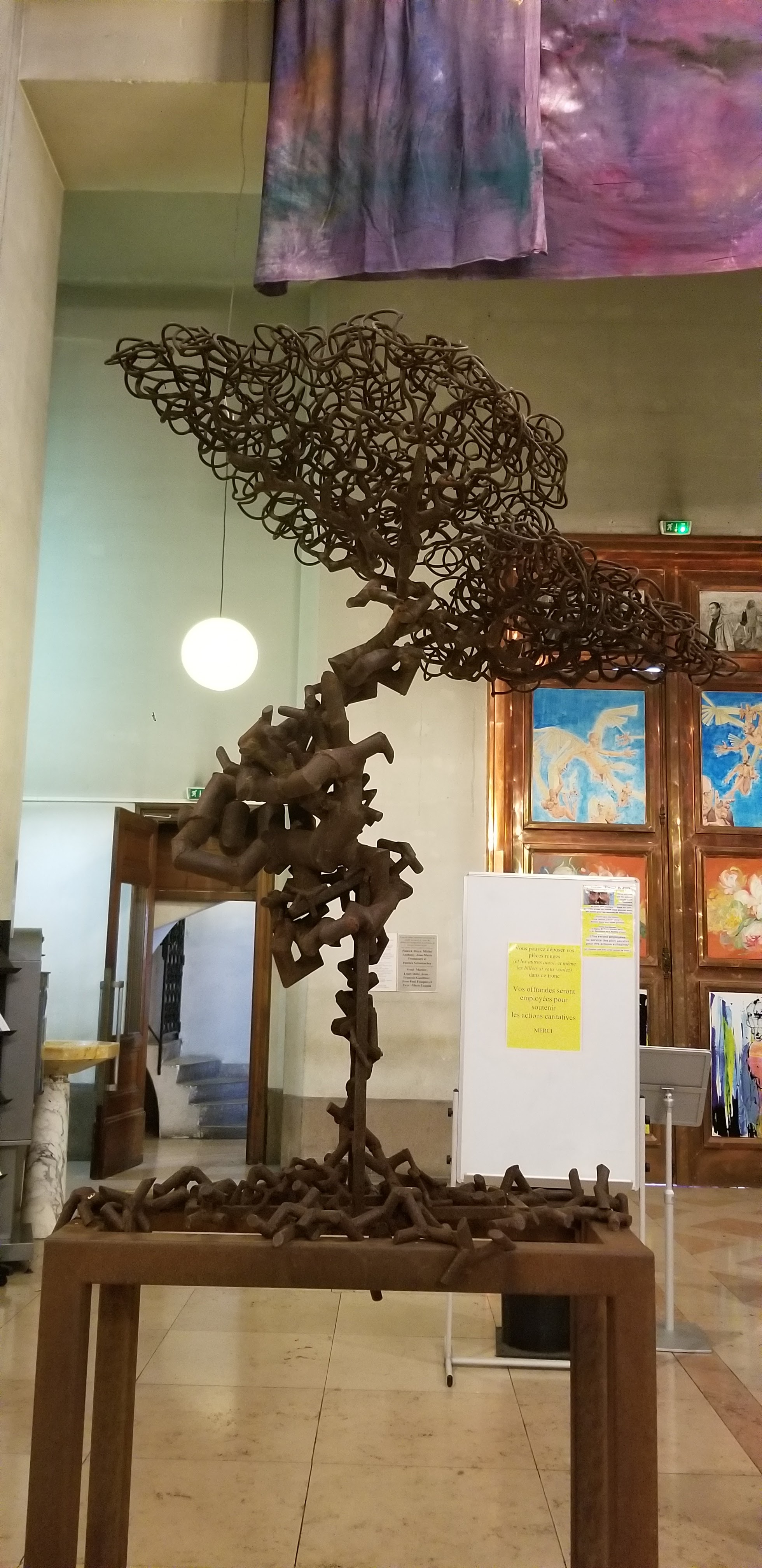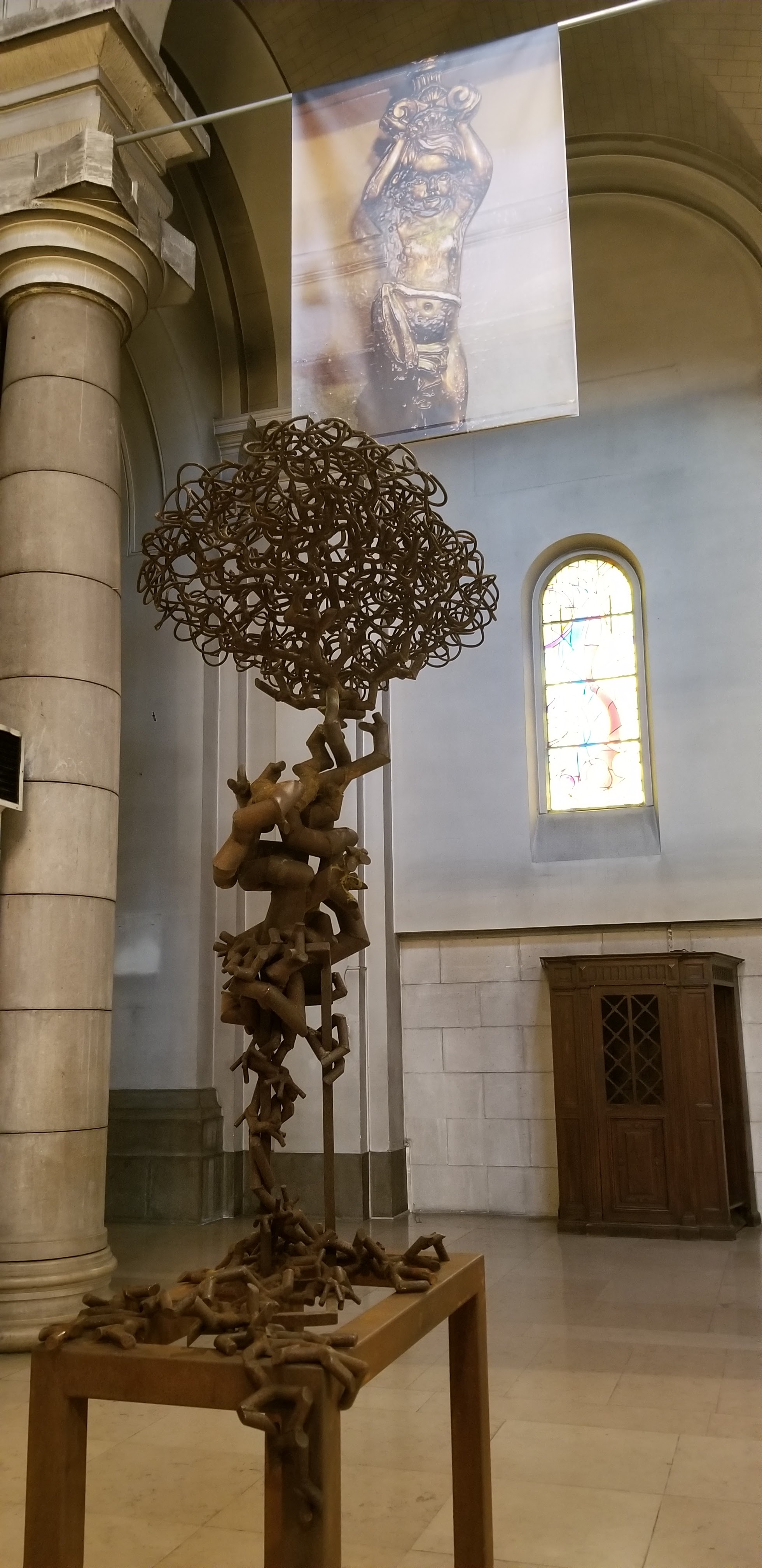 Une église dédiée aux artistes, où cette année ils ont été accueillis dans une ambiance particulierement bienveillance vu l'impact important du covid et de la crise et le conflit en Ukraine. Les œuvres étaient déposées à même le sol symbolisant un chemin de croix. Ici, un Christ de Nathalie Broyelle.
