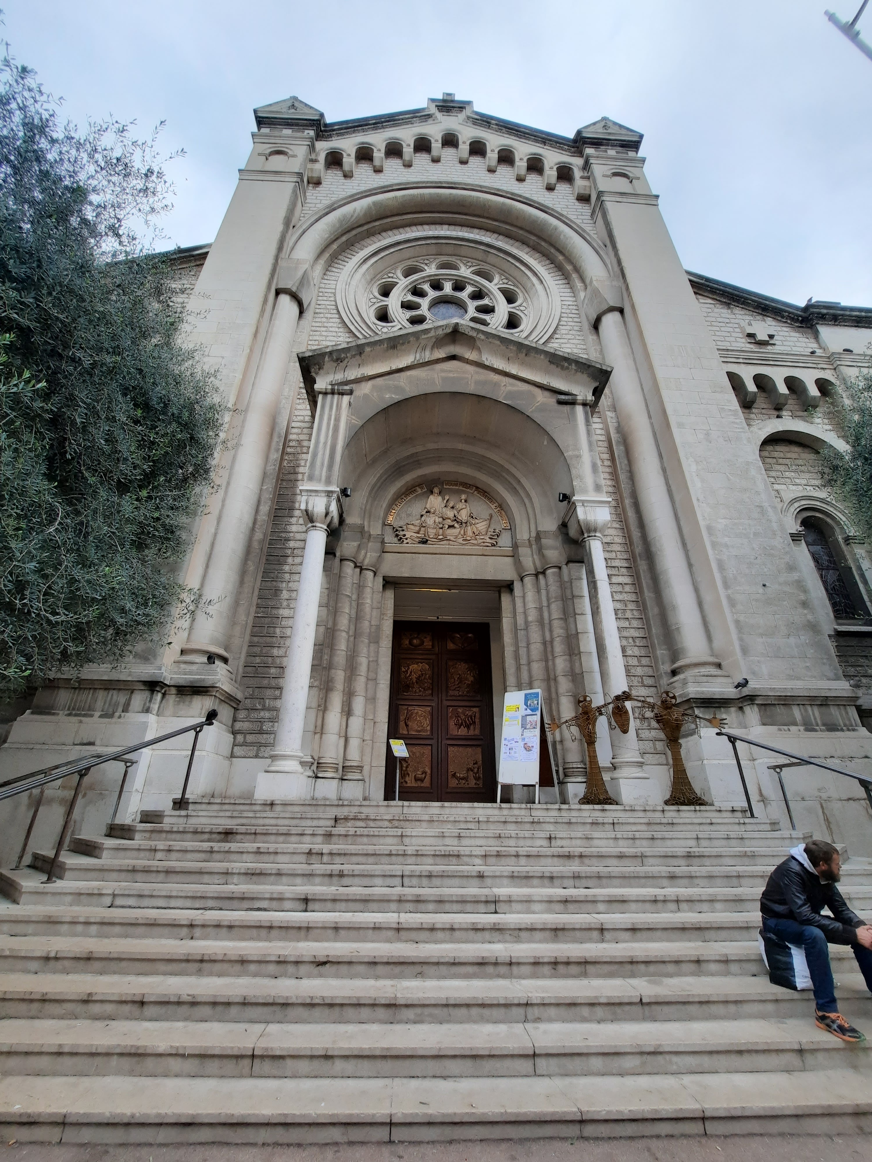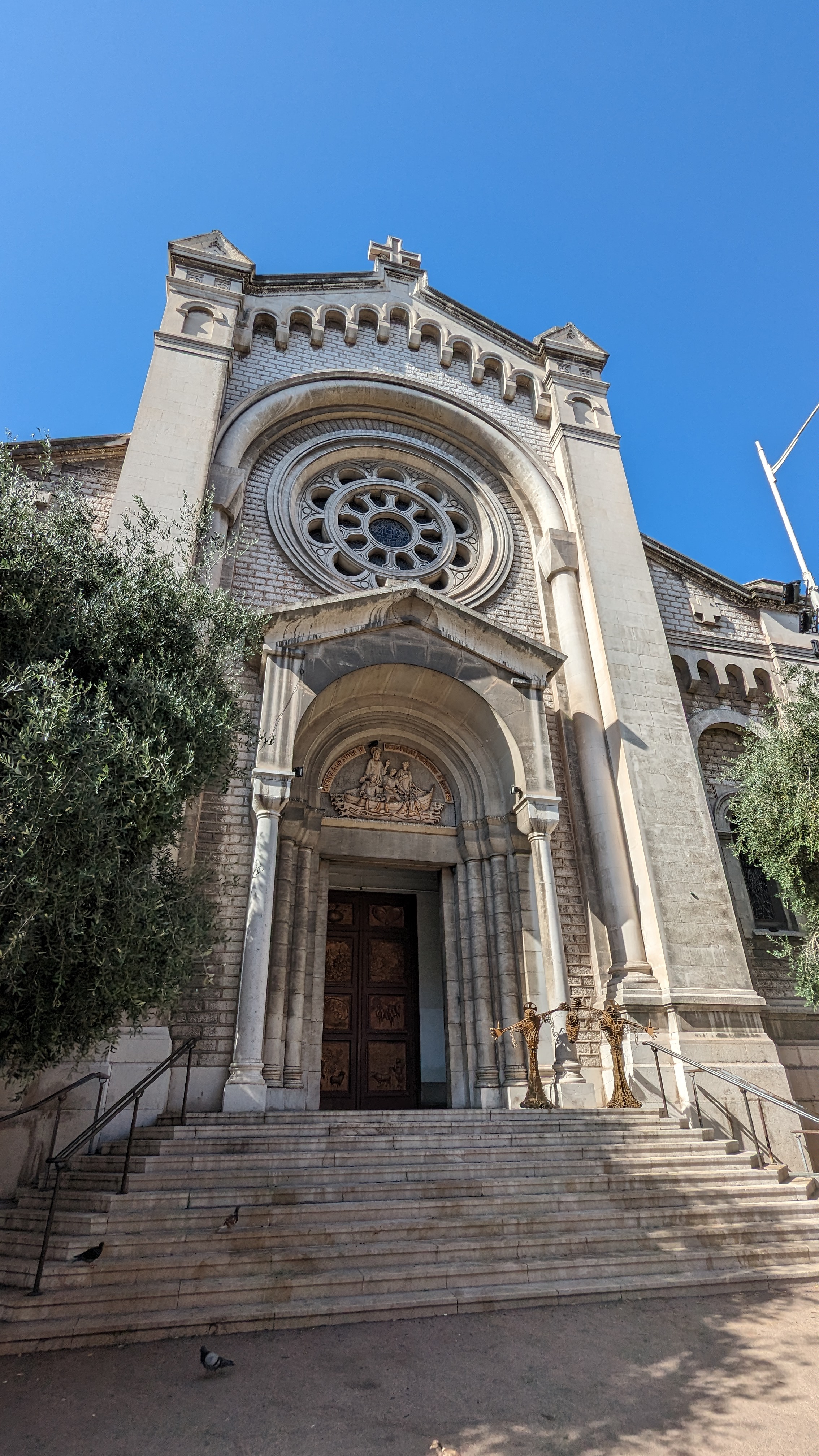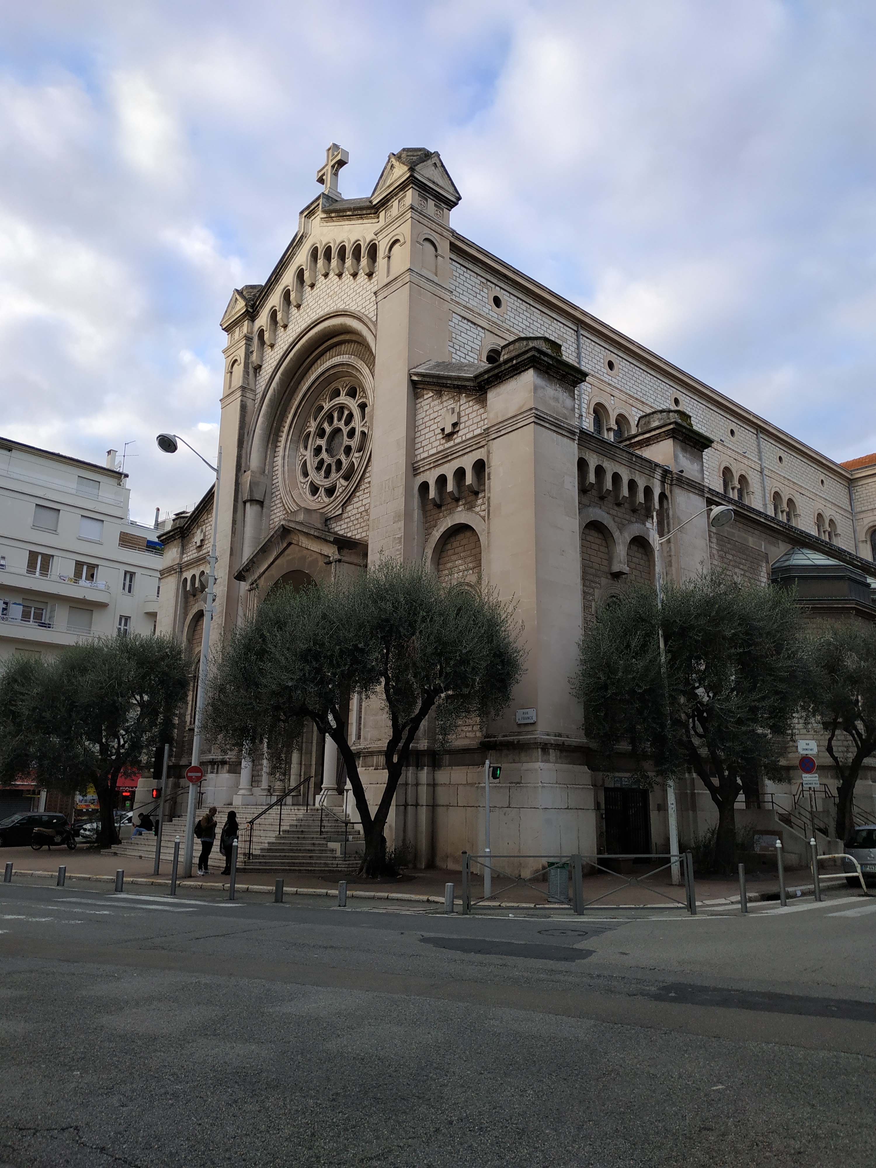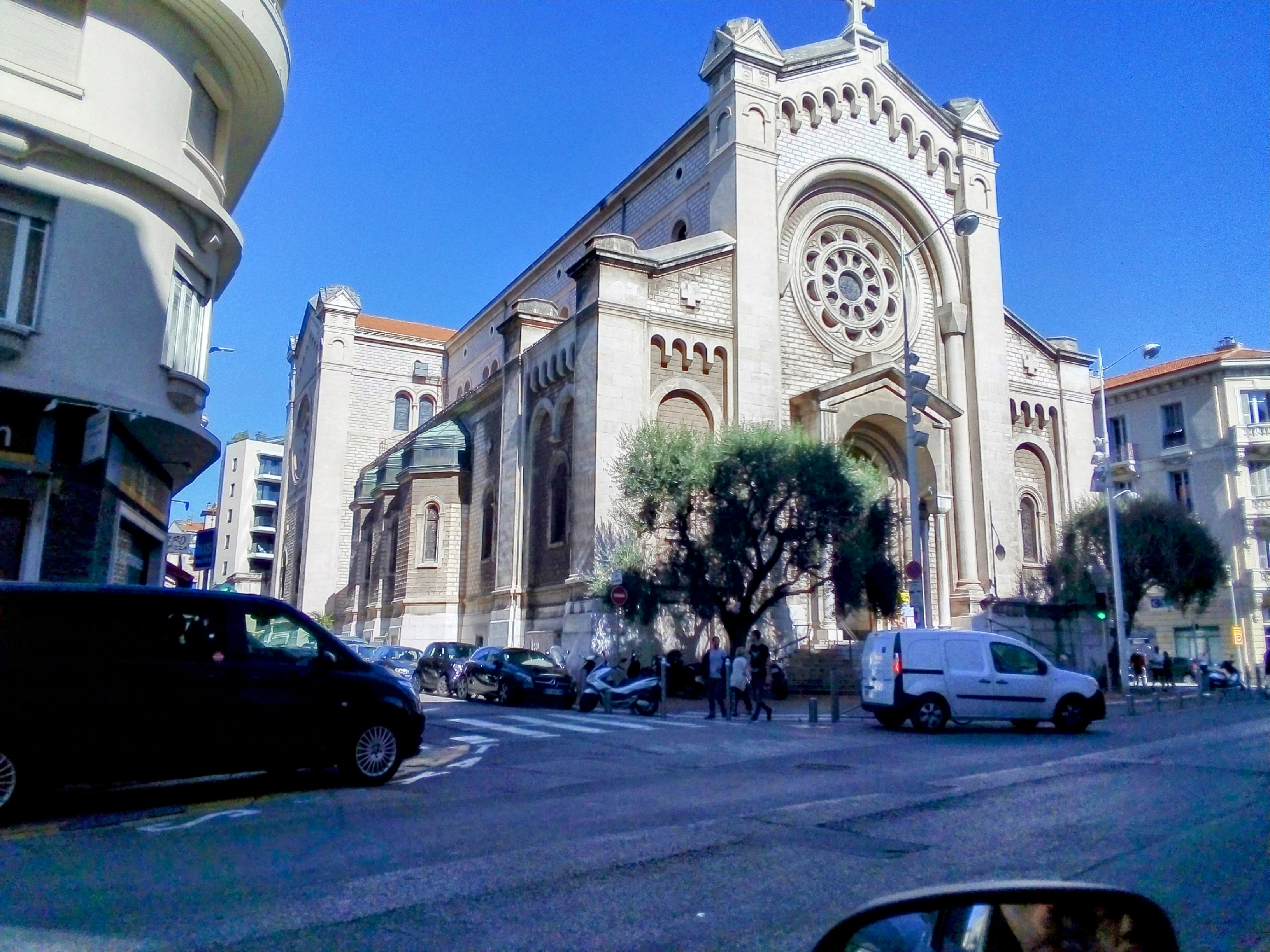 Très belle église située à 2 pas de la mer.. Le parking Massena est à 5 mn à pied.. J'y suis entré malheureusement pour les obsèques de ma maman et les curés sont vraiment top ainsi que les dames qui s'occupent du secrétariat.