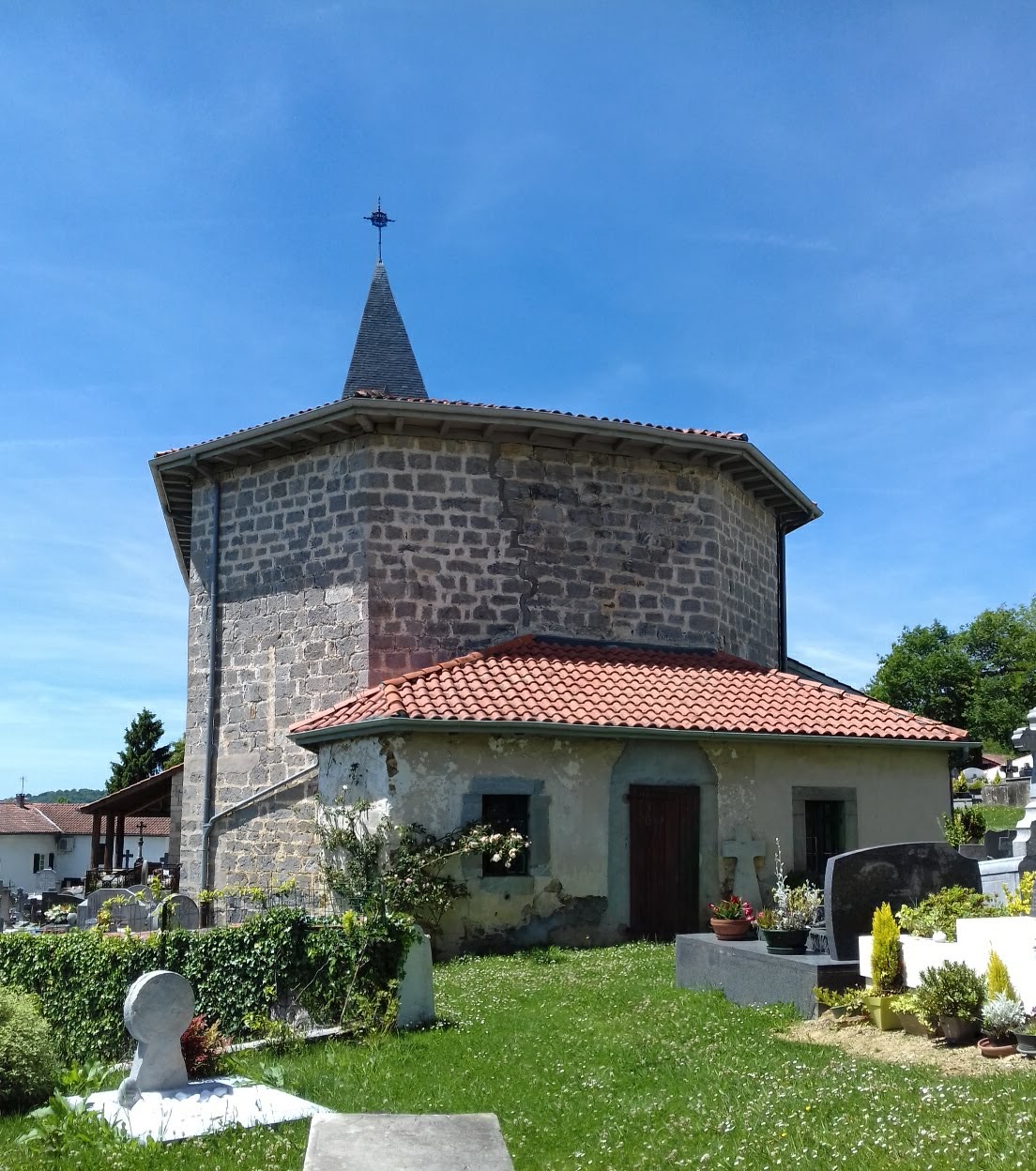 Une solide église de pierres du pays. Malheureusement fermée au moment de ma visite. Beau clocher et son toit d'ardoises.