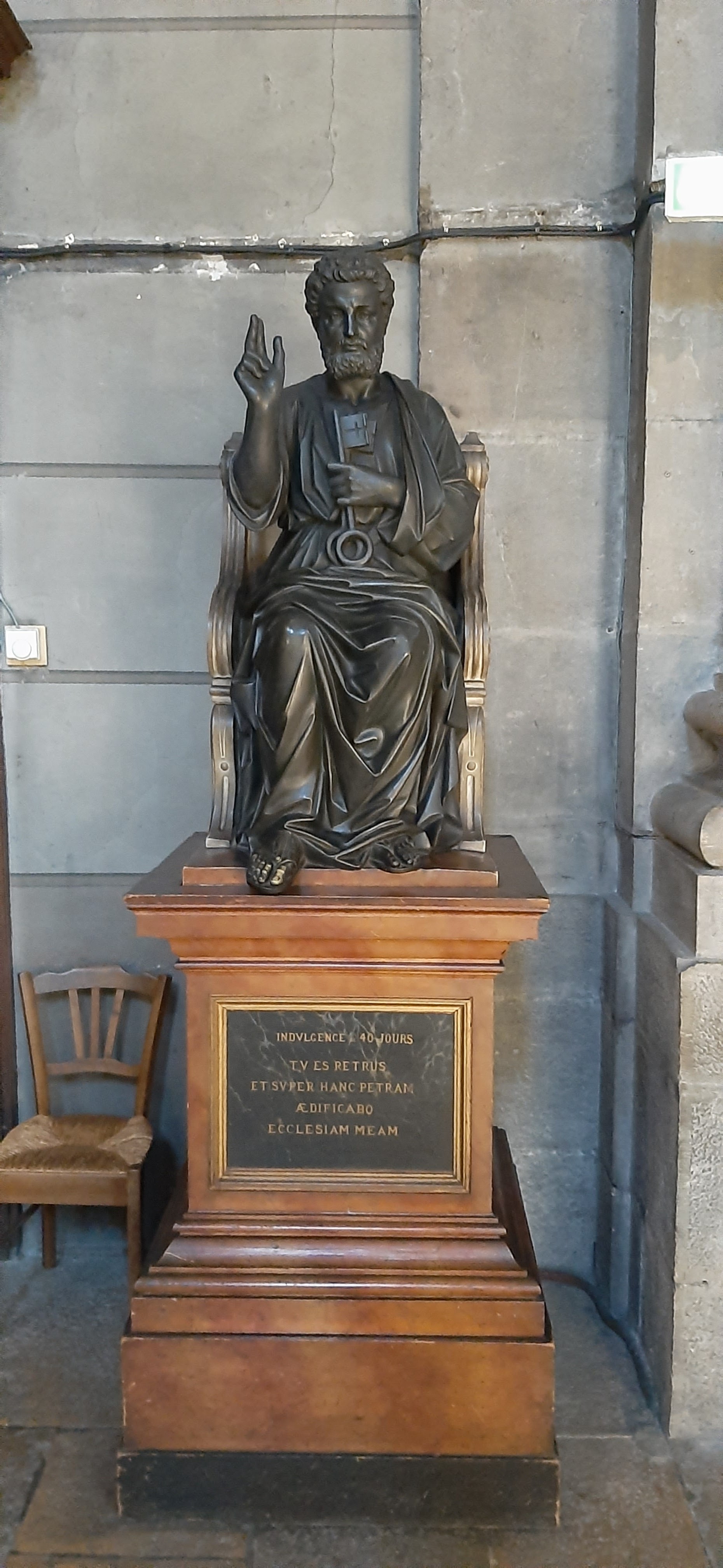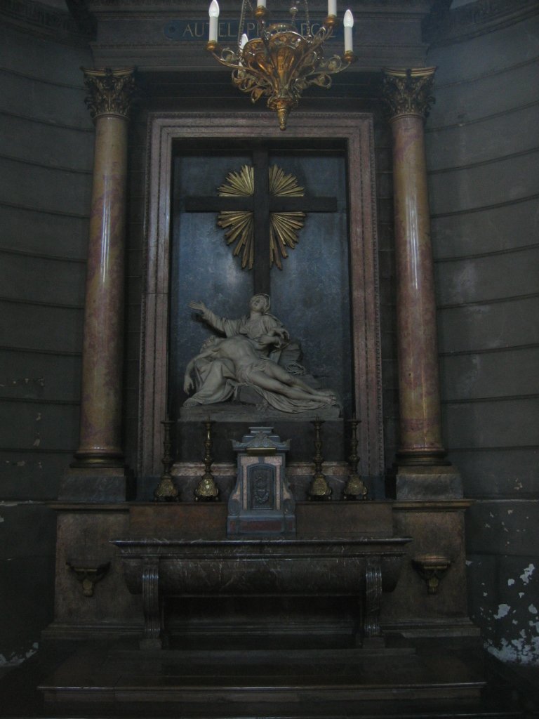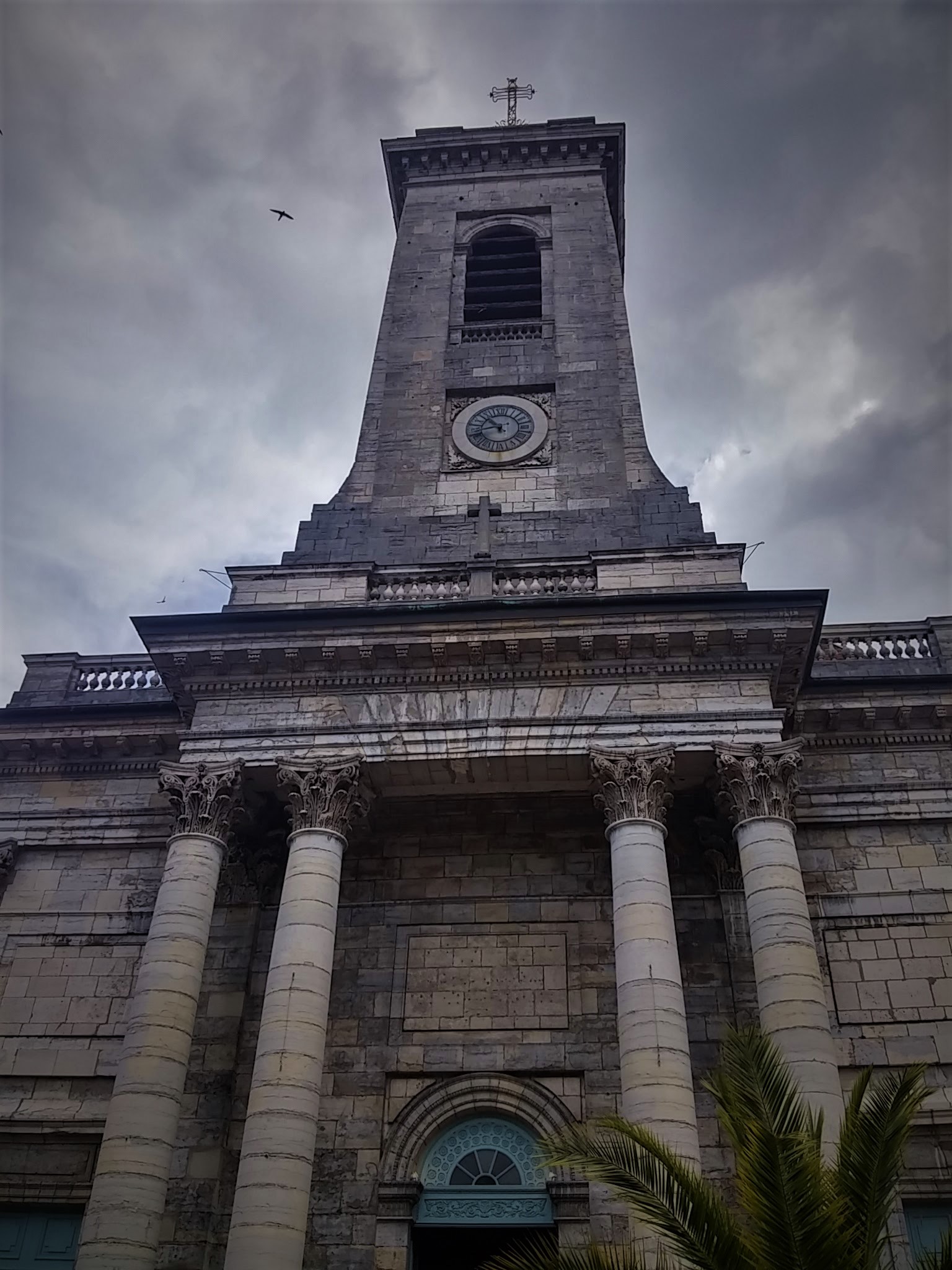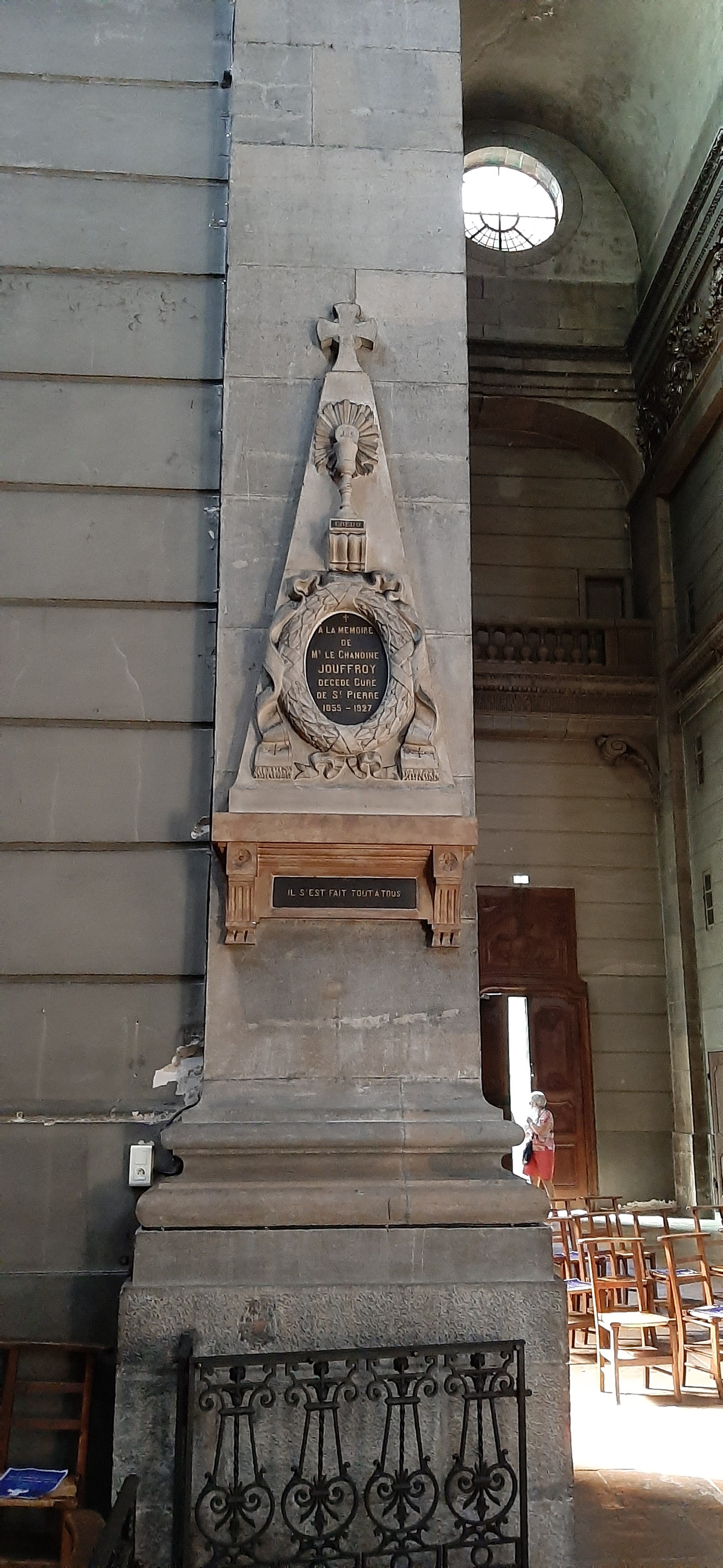 L'édifice est achevé en 1784 mais l'église Saint-Pierre doit traverser les aléas de la Révolution. En 1809 des travaux d'embellissement sont effectués, ils se terminent en 1815. Modifiée en 1897 pour des raisons de voirie elle est restaurée en 1950 notamment pour ses vitraux de style Louis XIV. Elle me fait penser à un temple avec ses colonnes et son intérieur assez sombre...