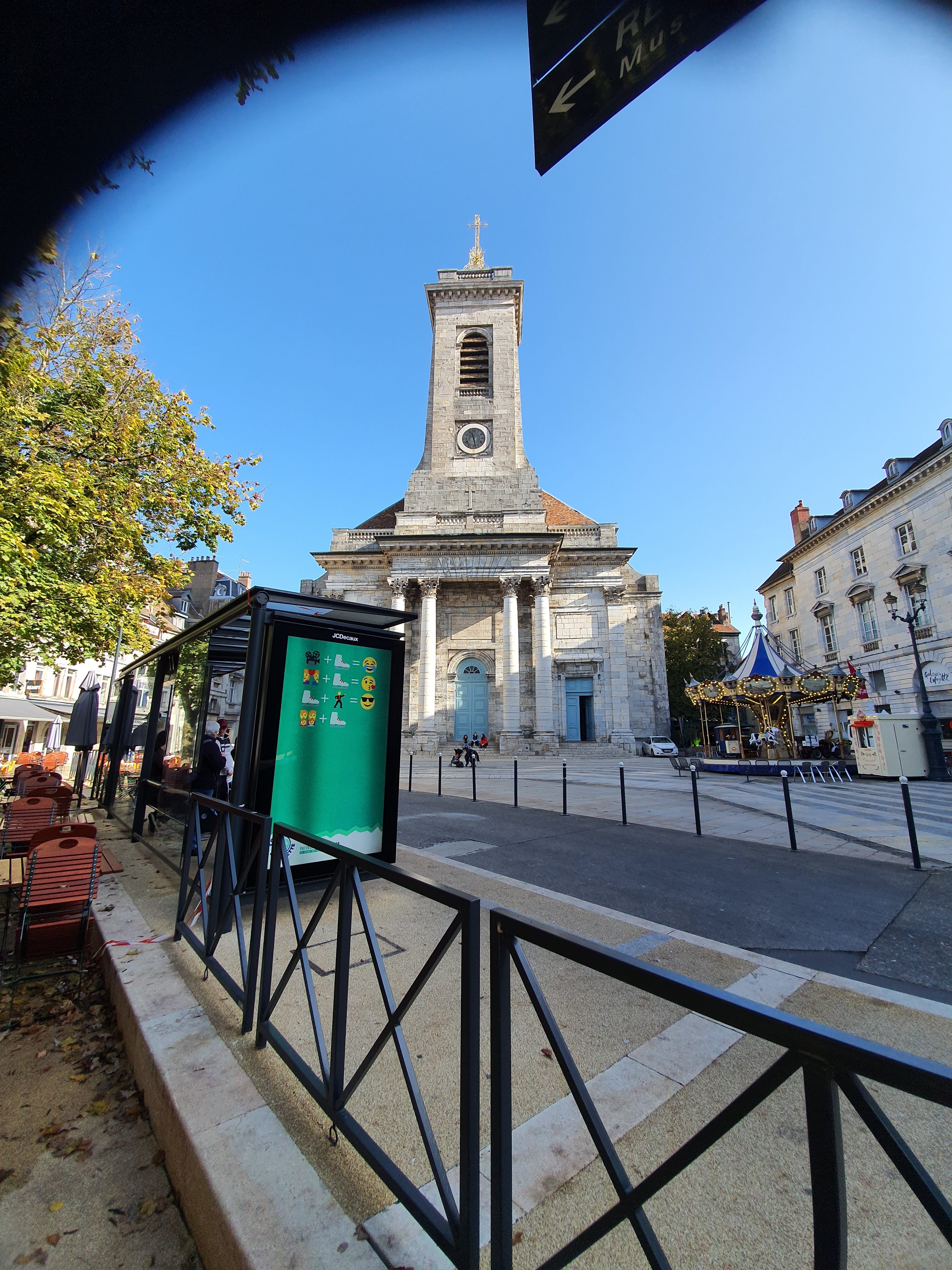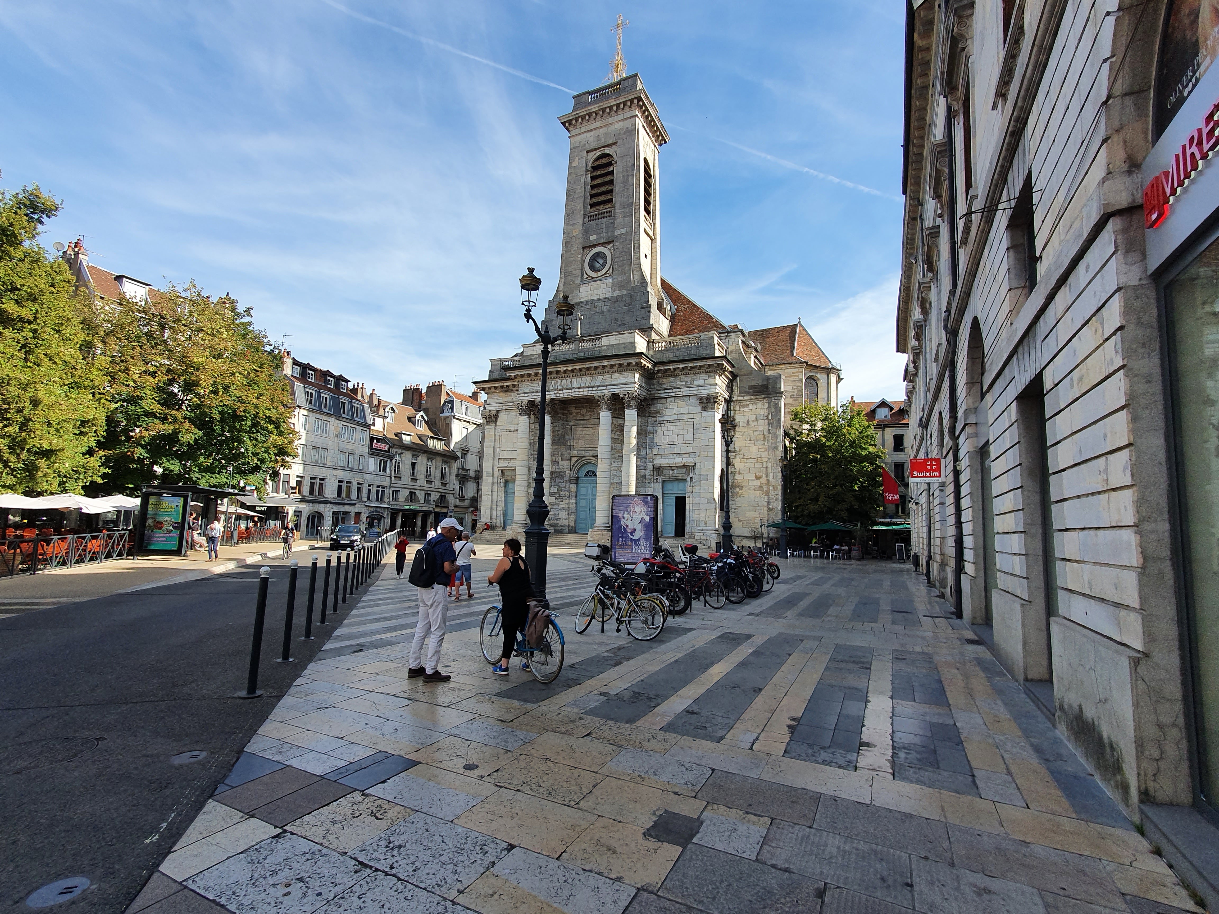 Place centrale du centre ville de Besançon. Très agréable en temps de soleil avec une belle Église à visiter, des terrasses à café et la possibilité de faire du shopping à tout moment.