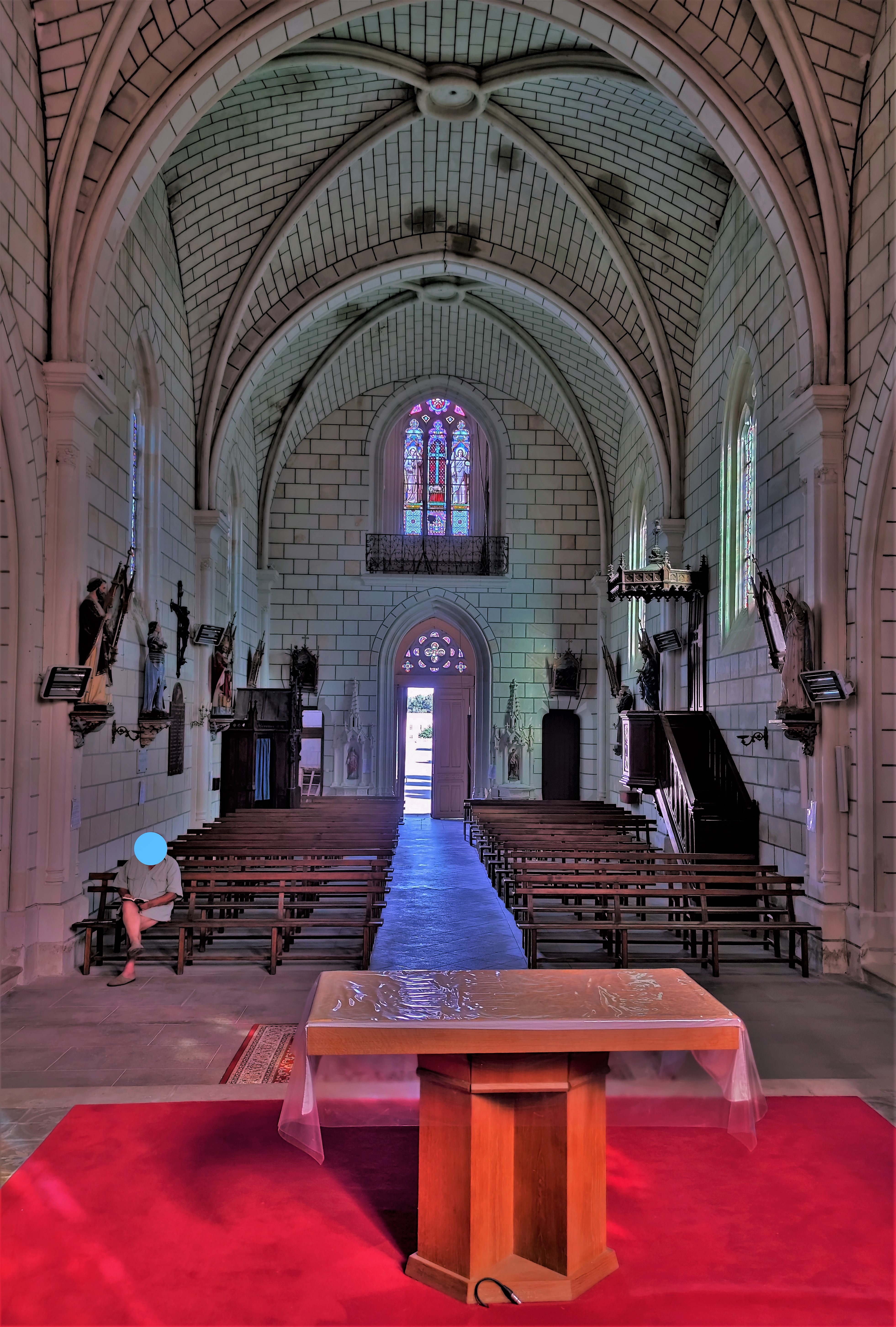 Le lieu est charmant, le village et ses habitants accueillants, je ne peux qu'encourager la visite de cette église. L'église Saint-Pierre de Chaveignes est une construction néo gothique du 19ème qui remplace l'ancienne église du 12ème, détruite par un incendie. Il reste de cette église primitive une chapelle gothique du 15ème. Servant aujourd'hui de sacristie, cette chapelle était fermée, je n'ai pu la voir. La nouvelle église a l'air en bon état, bien entretenue, elle est ouverte tous les jours par Jean-Louis LARUS, artiste peintre et citoyen du village. La mairie est située à proximité de l'église, vous pouvez aussi y demander l'ouverture, si par hasard l'église est fermée. Cette visite m'a bien plu, l'église est simple, sa taille modeste en fait un édifice qui rassemble. De jolies choses sont à découvrir dont des vitraux de Lobin de Tours. Le lieu est charmant, le village et ses habitants accueillants, je ne peux qu'encourager la visite de cette église.