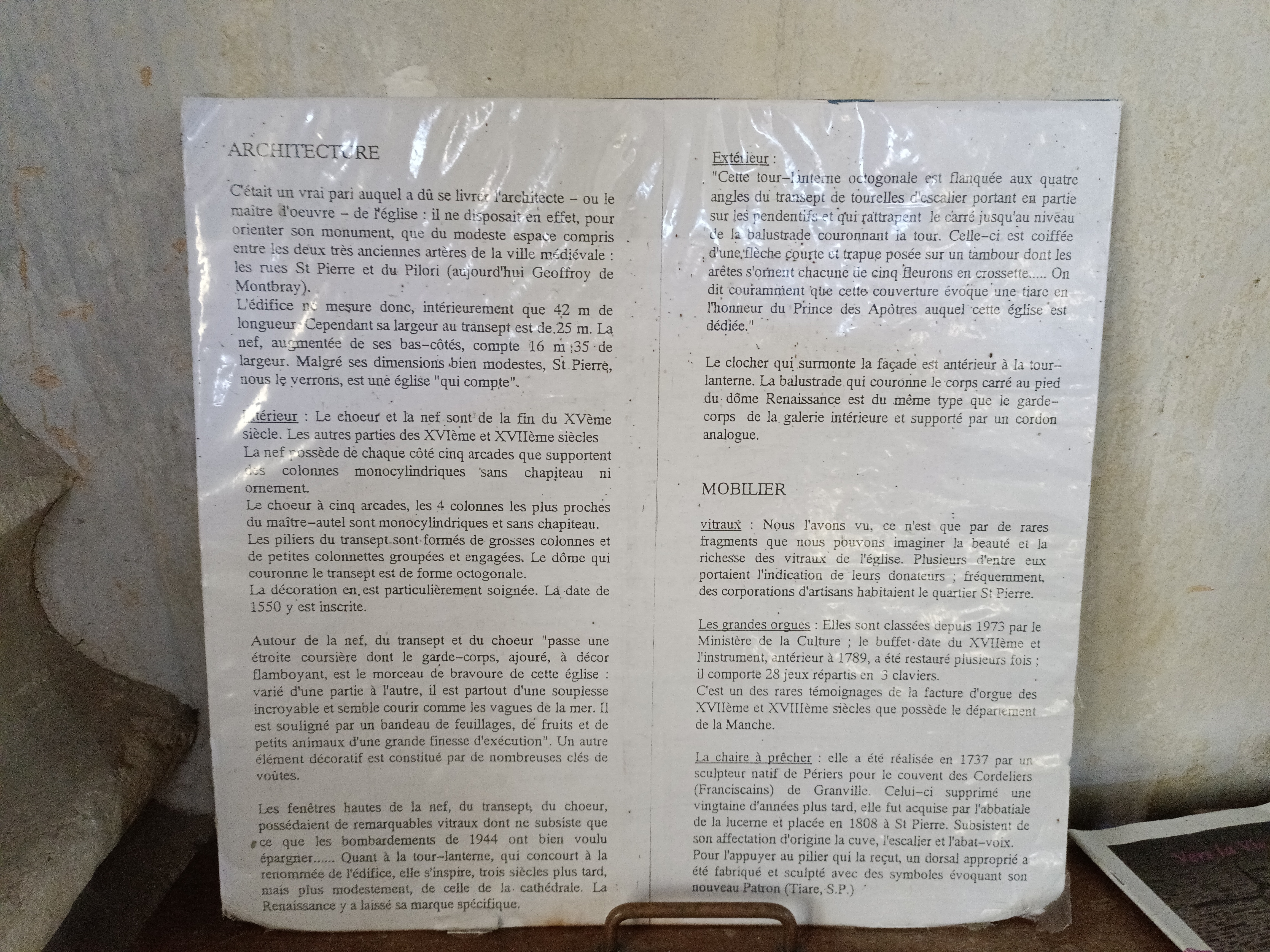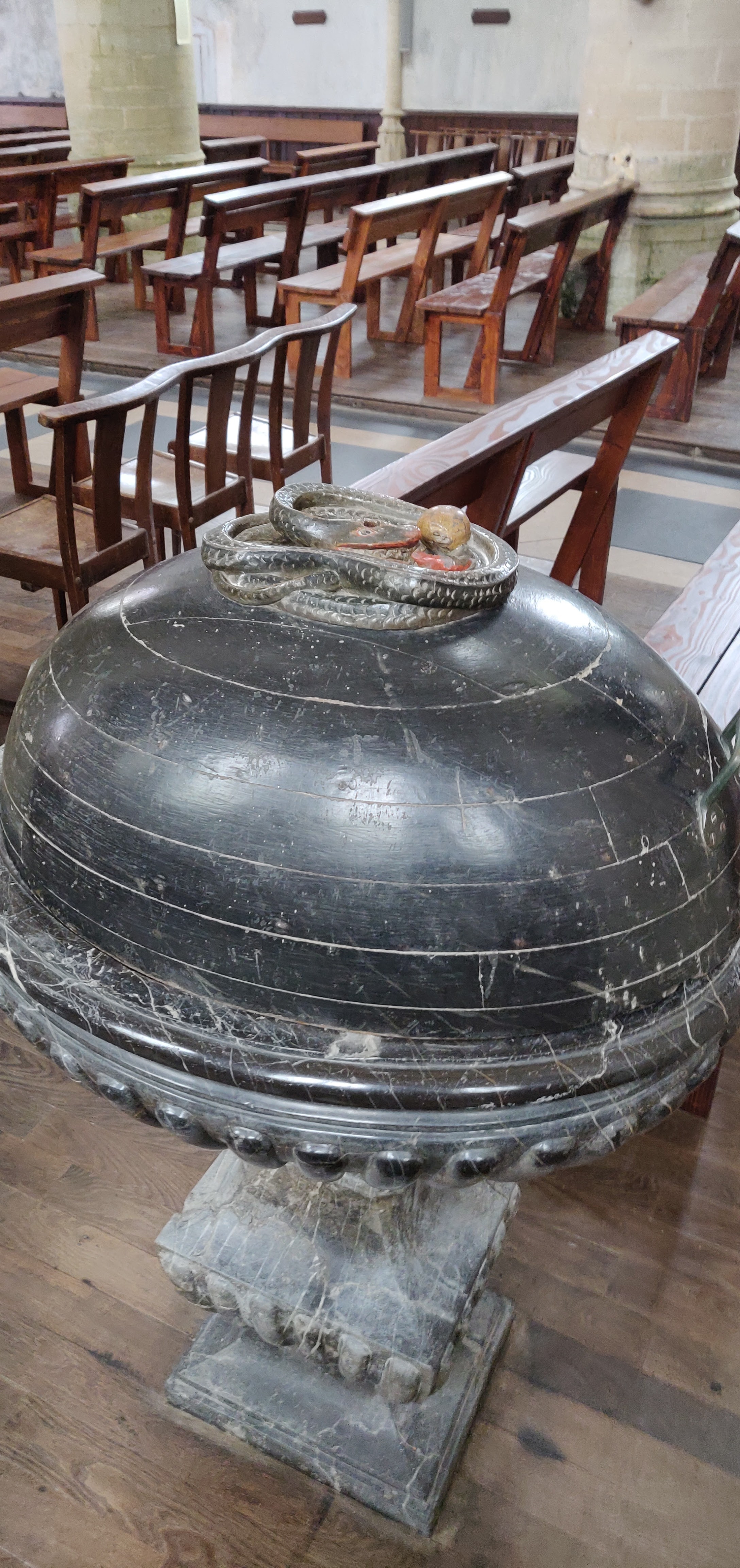 Coutances recèle des trésors, notamment par ses édifices religieux. L'église Saint Pierre est à visiter. Belle lumière, chaire en bois, nombreuses statues et des fonds baptismaux originaux (couvercle orné du serpent tentateur du péché originel.