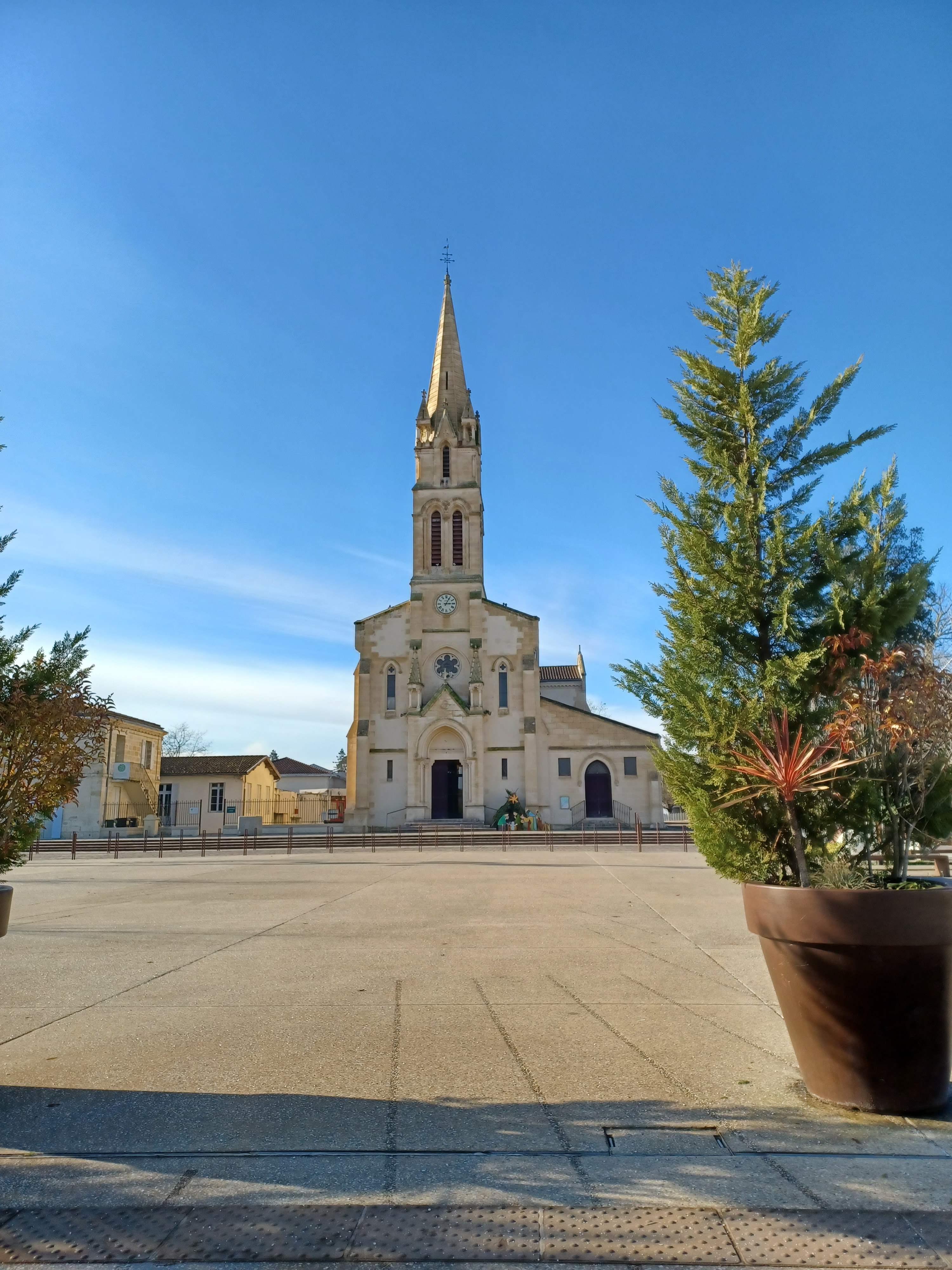 Belle église surtout l ' intérieur, avec la place refaite l' église est mise en valeur. Merci à la mairie et Bordeaux métropole. ..