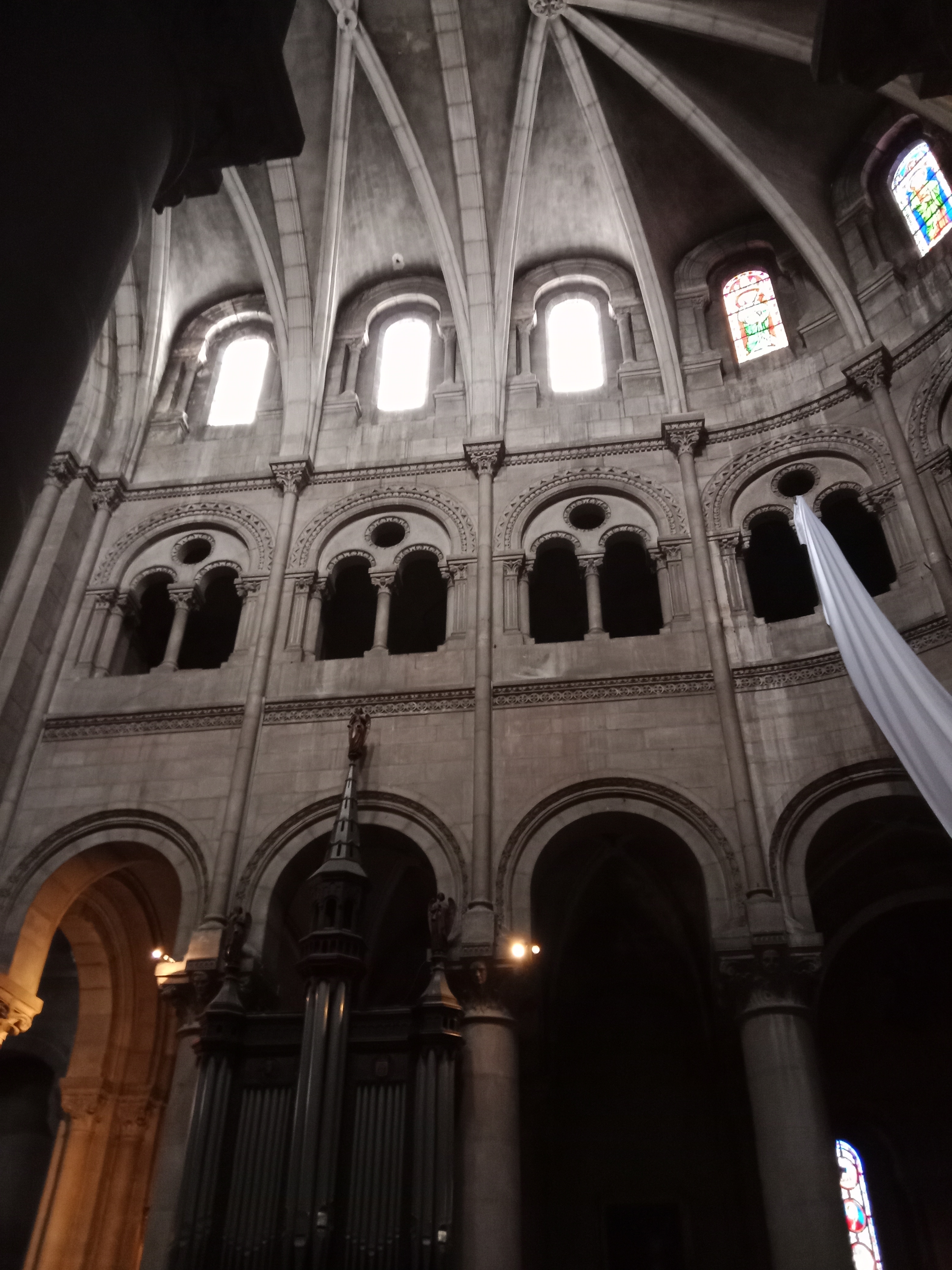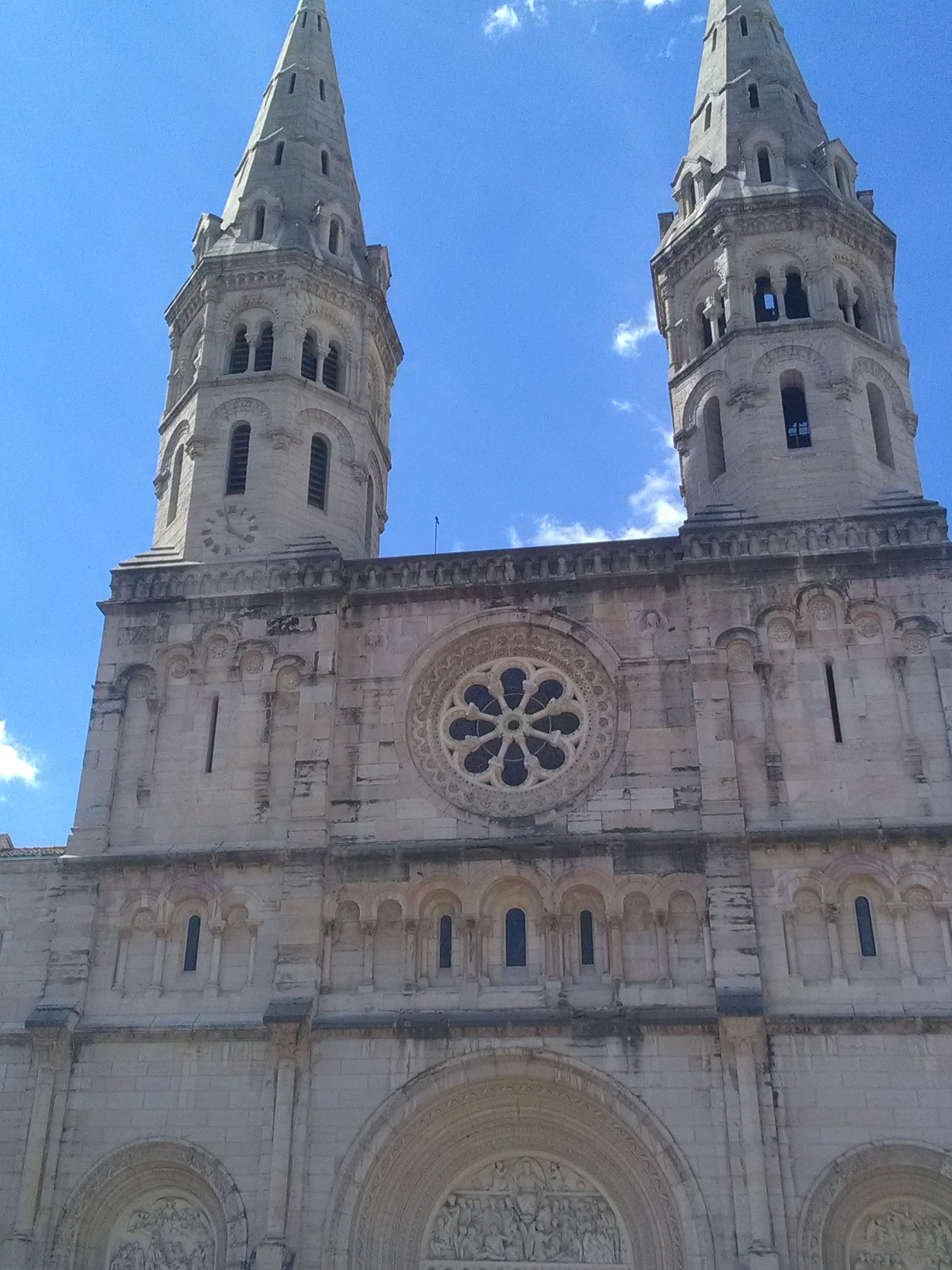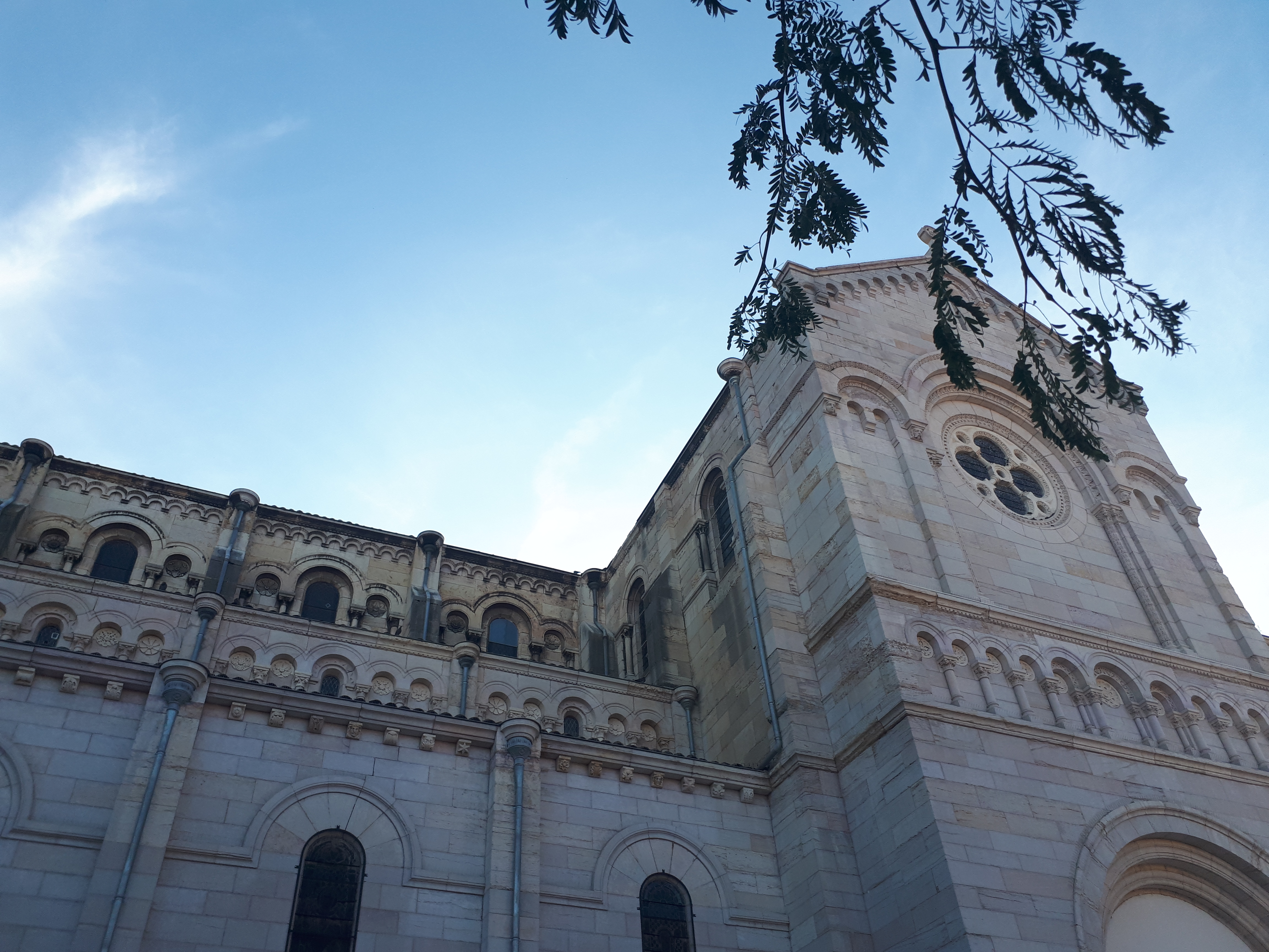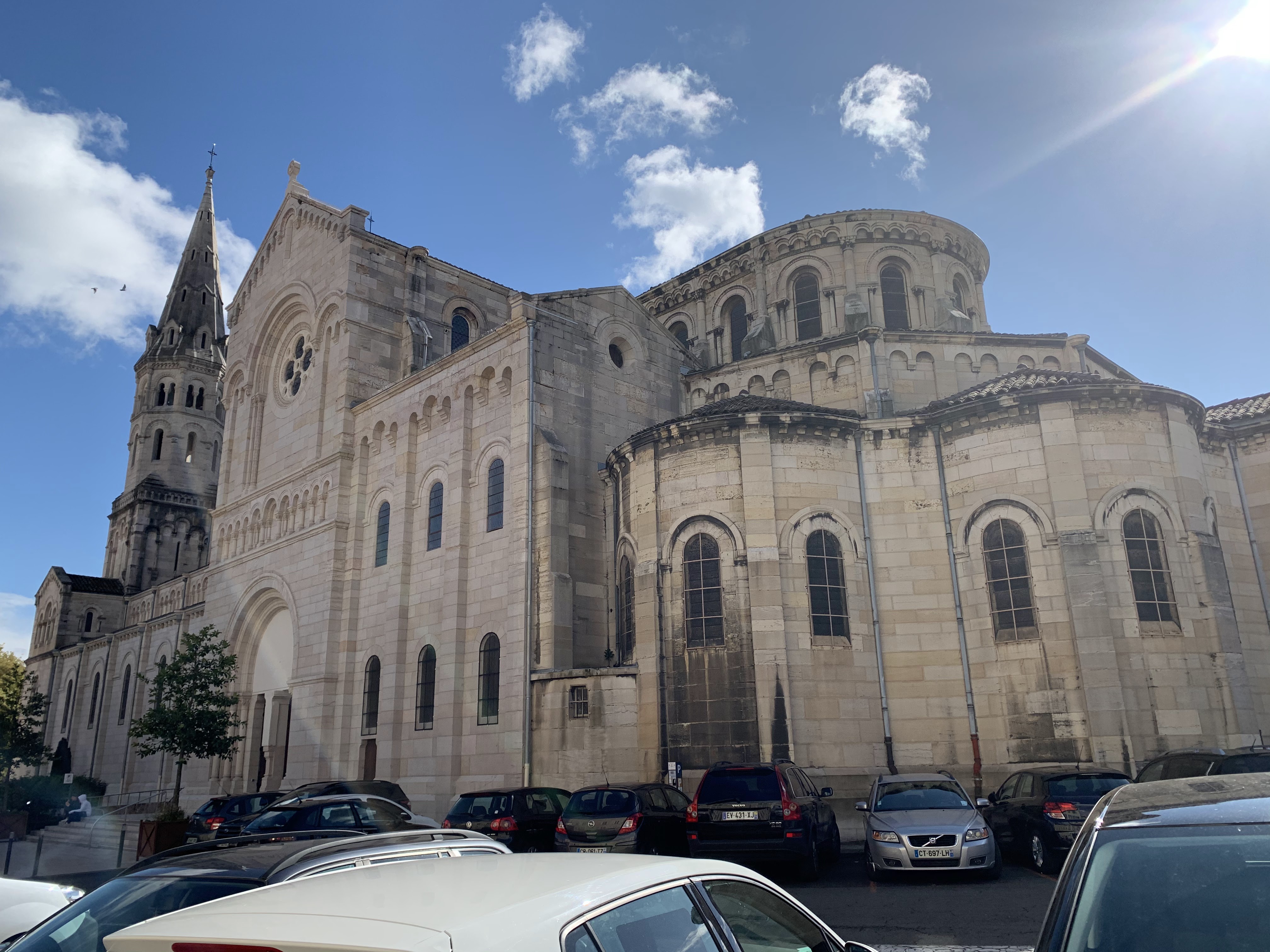 Alors du coup, cette église remplace la cathédrale Saint Vincent détruite au XVIIIème siècle. Donc de fait elle ne porte pas les siècles ni l'authenticité de l'époque romane ou gothique. Elle est construite au XIXème dans un style appelé le néo roman, c'est à dire le faux roman: on fait du neuf dans un style ancien. En règle générale le néo c'est la même chose en moins bien.