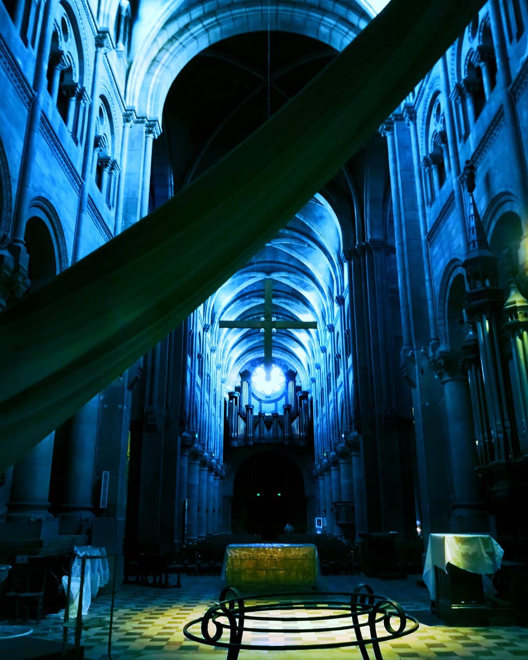 C'est une cathédrale située en plein centre ville et il y a de bons restaurants autour.