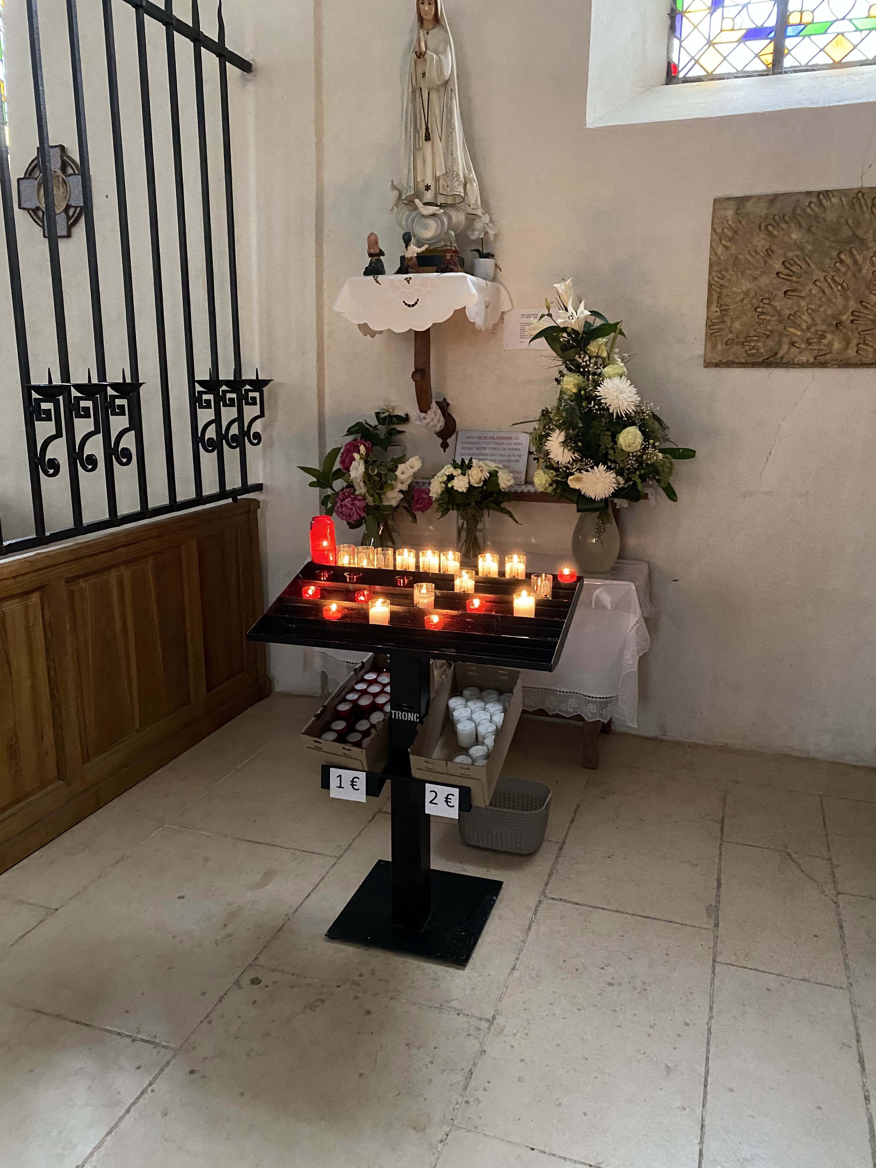 C est dommage car les portes de l église est ouverte mais pas les grilles qui sont à l intérieur de l eglise il y a notre notre-dame de Fatima où on peut prier Les grilles sont ouvertes à l l'intérieur de l eglise que au moment des messes