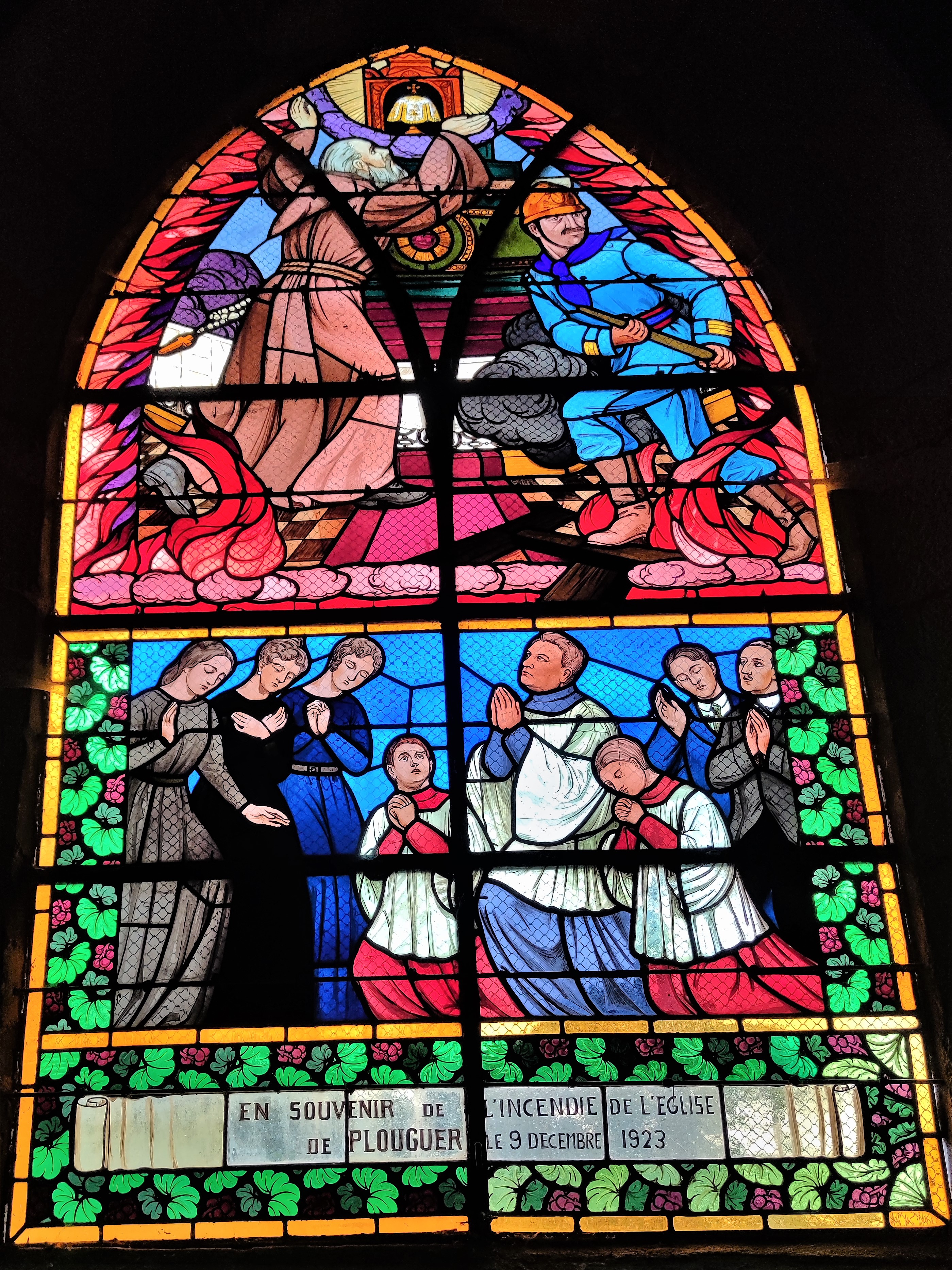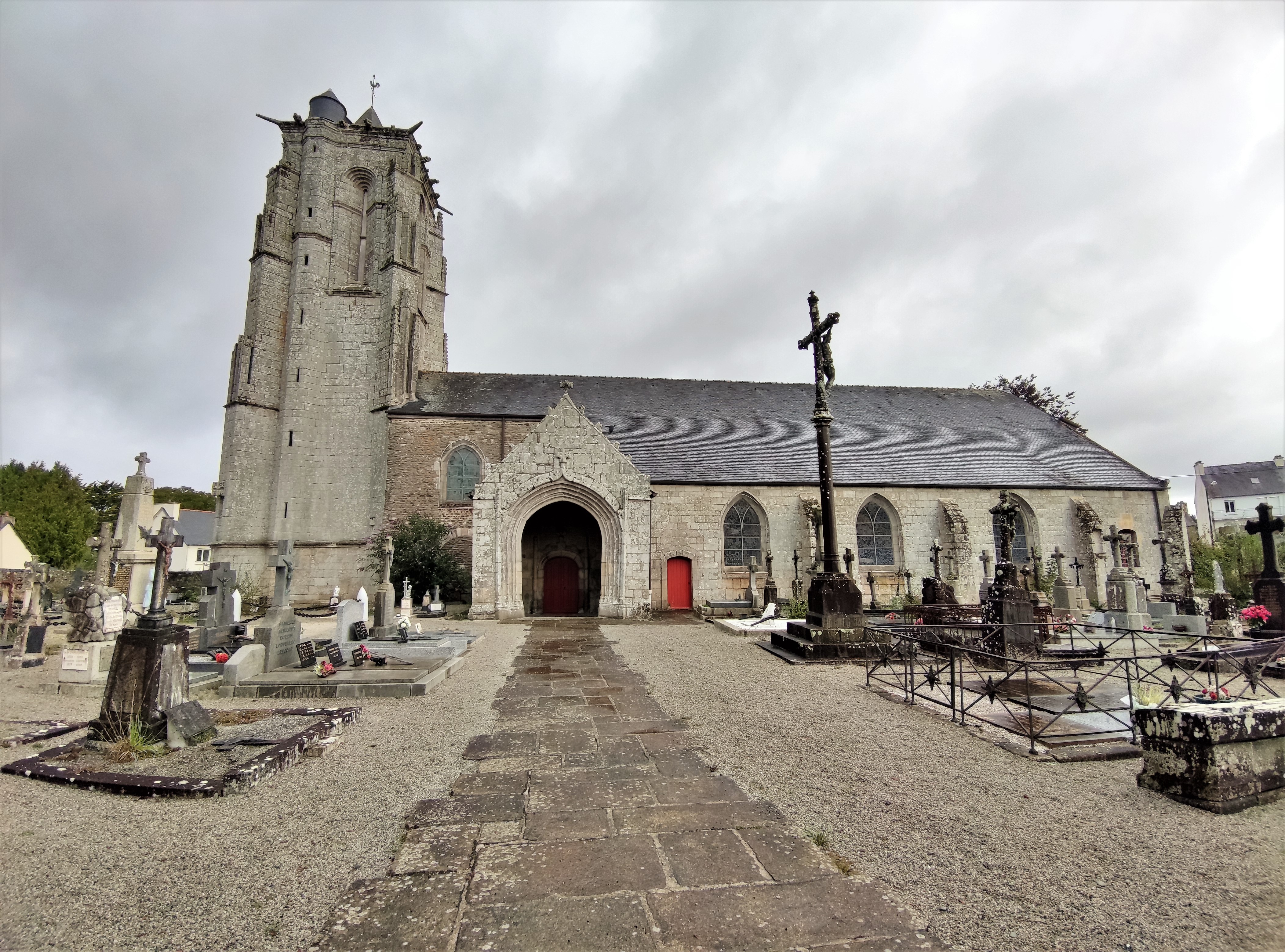 C'est l'église historique de la paroisse de Plouguer, la paroisse de Carhaix apparut seulement à la Révolution. L'édifice est classé depuis 1914 par les Monuments Historiques. Église paroissiale du 11ème, les transformations nombreuses (plus particulièrement aux 16ème et 18ème et 20ème siècles) ont créé un mélange de styles, roman, gothique et renaissance. Cela se distingue avant même d'entrer. L'intérieur peut donner l'impression d'un chaos architectural, augmenté le jour de ma visite par le chantier de la campagne de restauration en cours. Un intérieur dépouillé, vidé mais un peu encombré d'éléments disparates, c'est l'occasion de repérer les différentes périodes de construction. De plus, une partie des vitraux est en réfection, ceux qui restent sont superbes : ils sont l'œuvre du maître peintre-vitrailliste Roger Desjardins d'Angers. Une visite d'un monument en travaux qui m'a bien plu. L'histoire de cette église, de la et des paroisses, de la commune et des communes a suscité beaucoup d'intérêt.