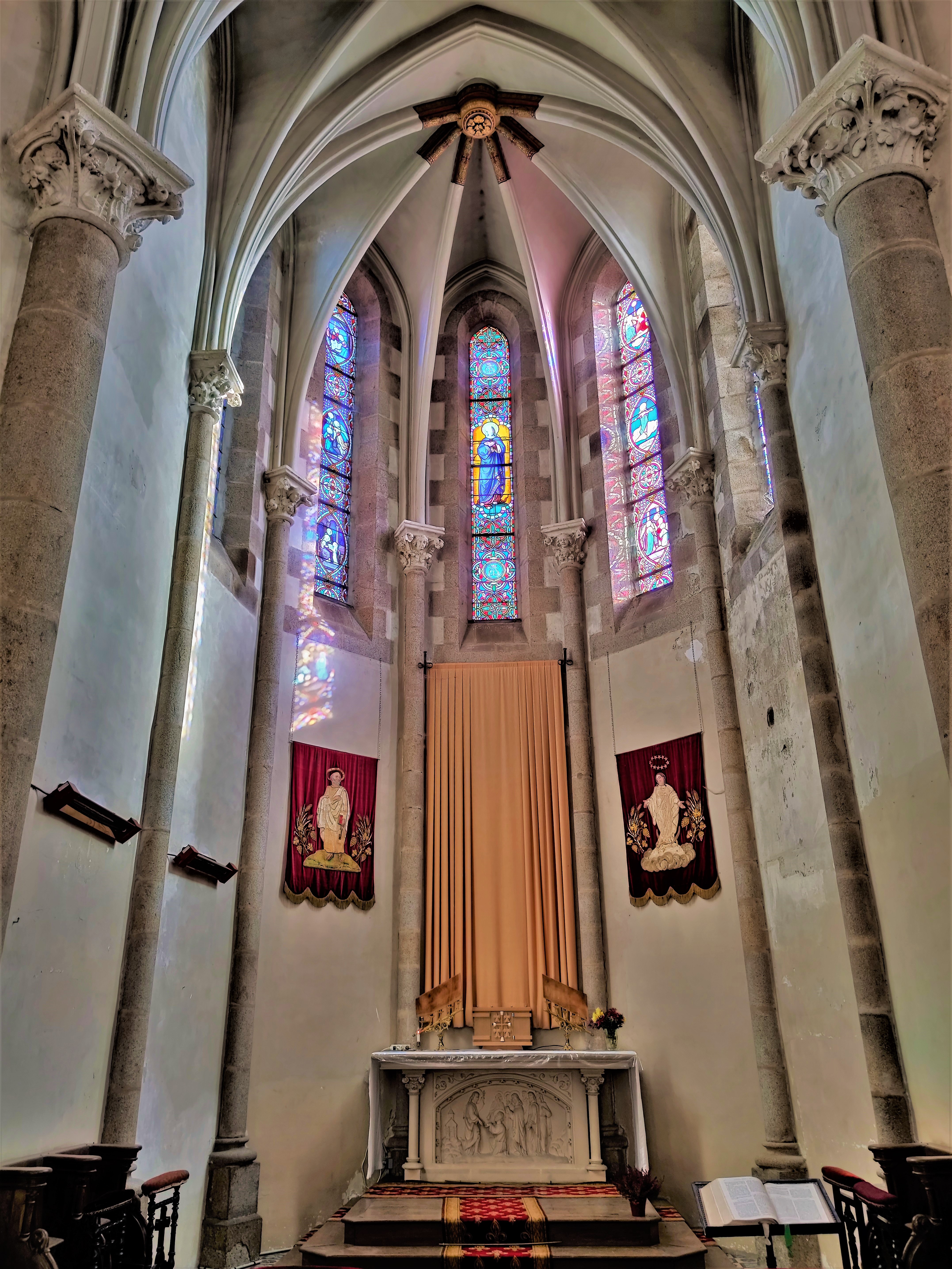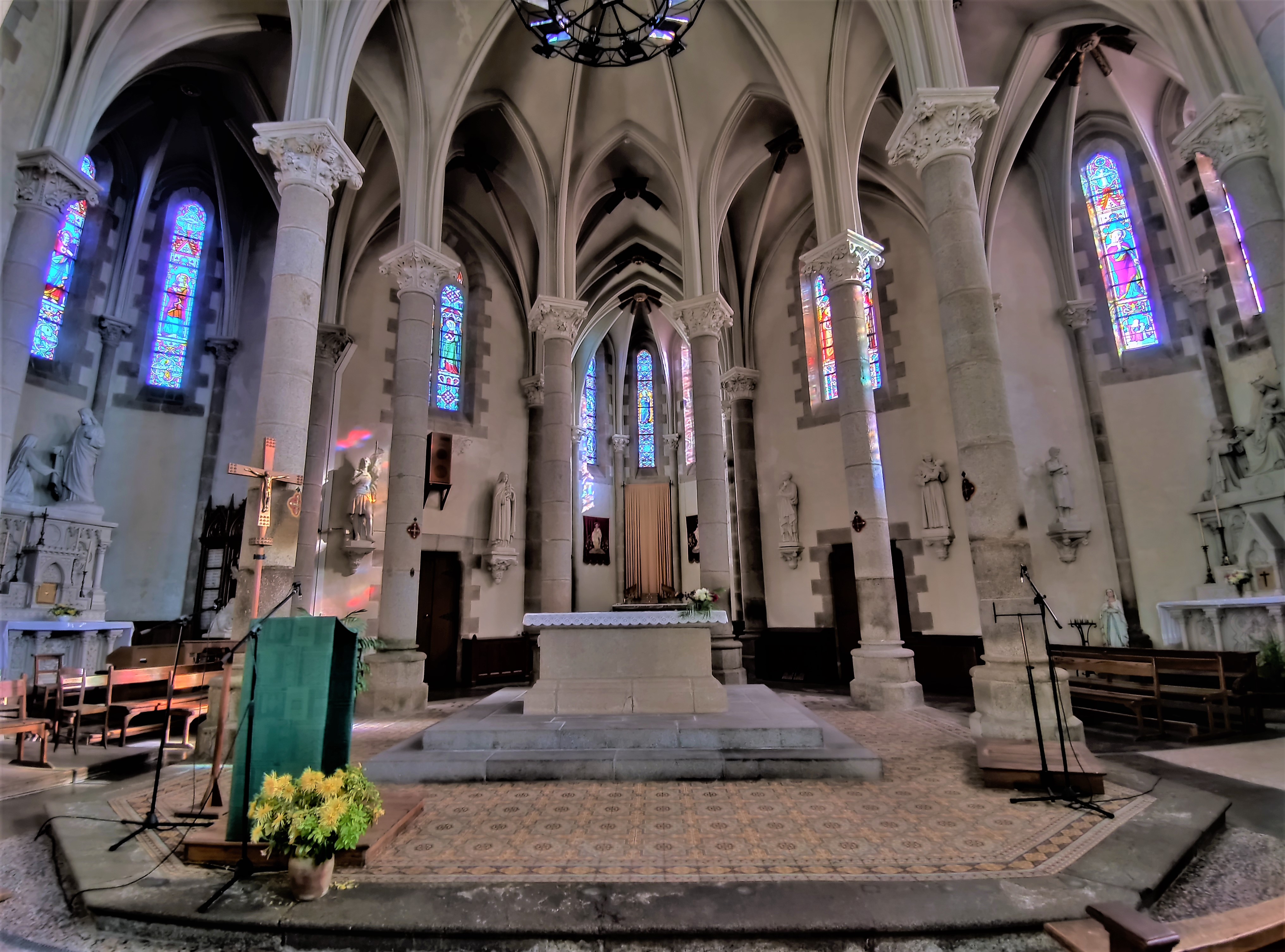 Église très lumineuse, bonne acoustique.