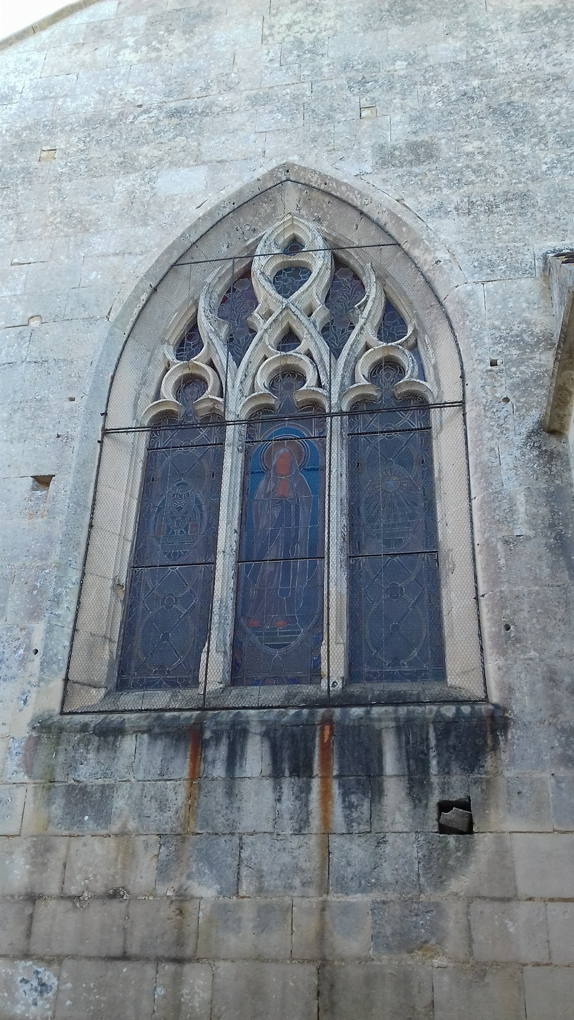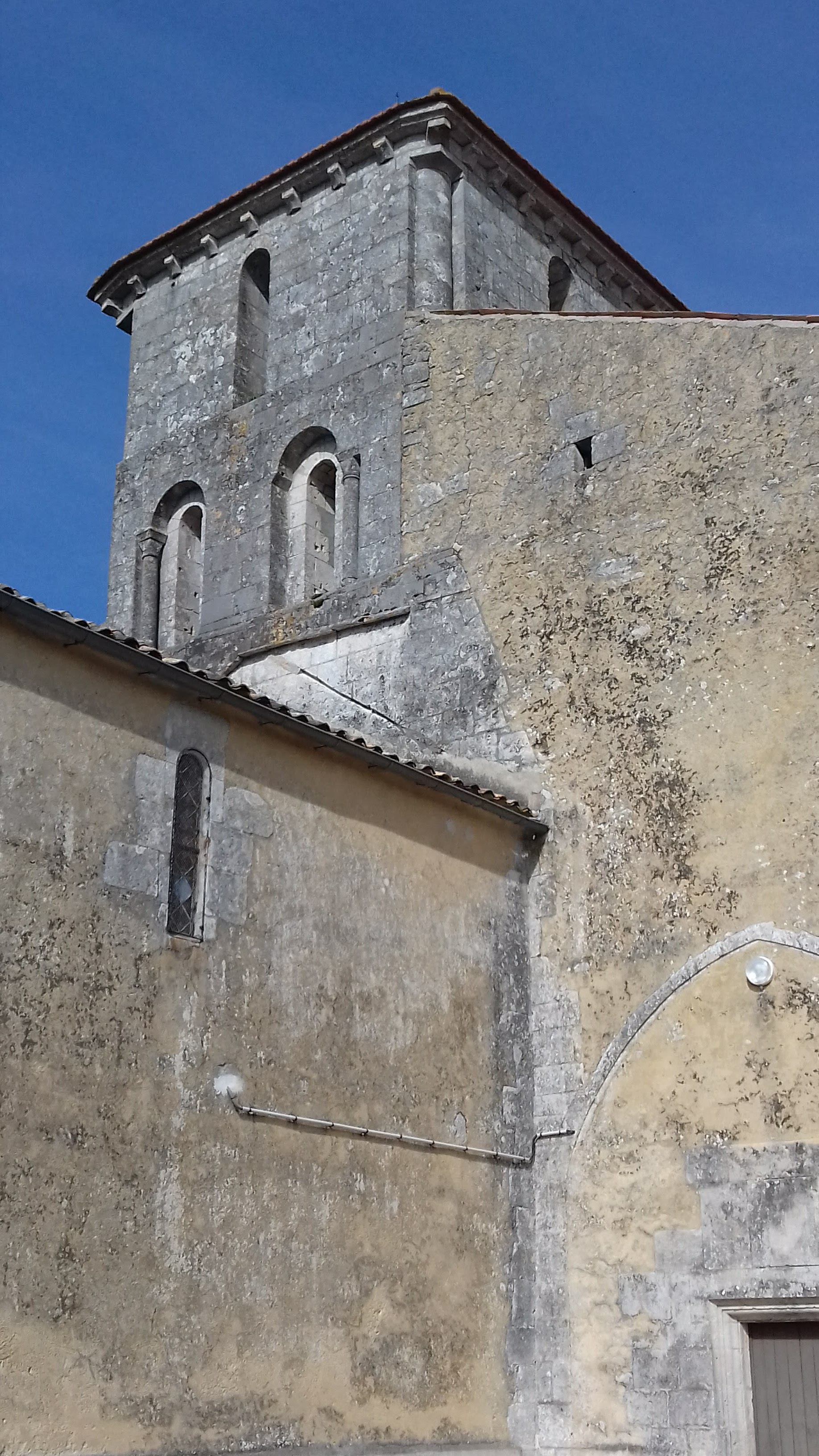 Encore une église de fermée, pourquoi l'une et pas l'autre ?. Pt village sympa avec aux pieds ses vignes. Sur sa place, Église du XII ème siècle remaniée période gothique. Façade romane à pignon, portail assez simple. Clocher carré avec son toit de tuiles et ses ouvertures avec colonnettes.
