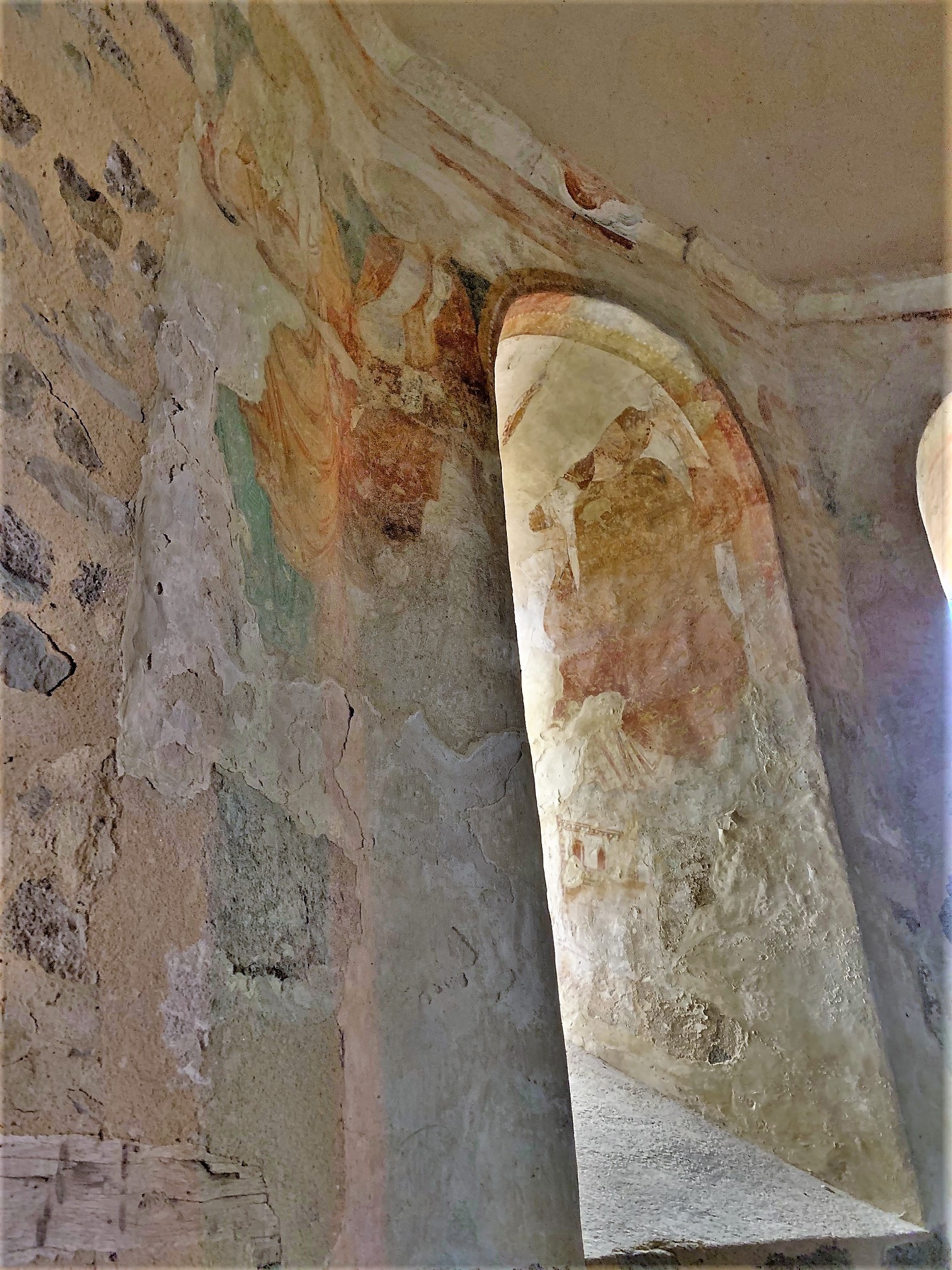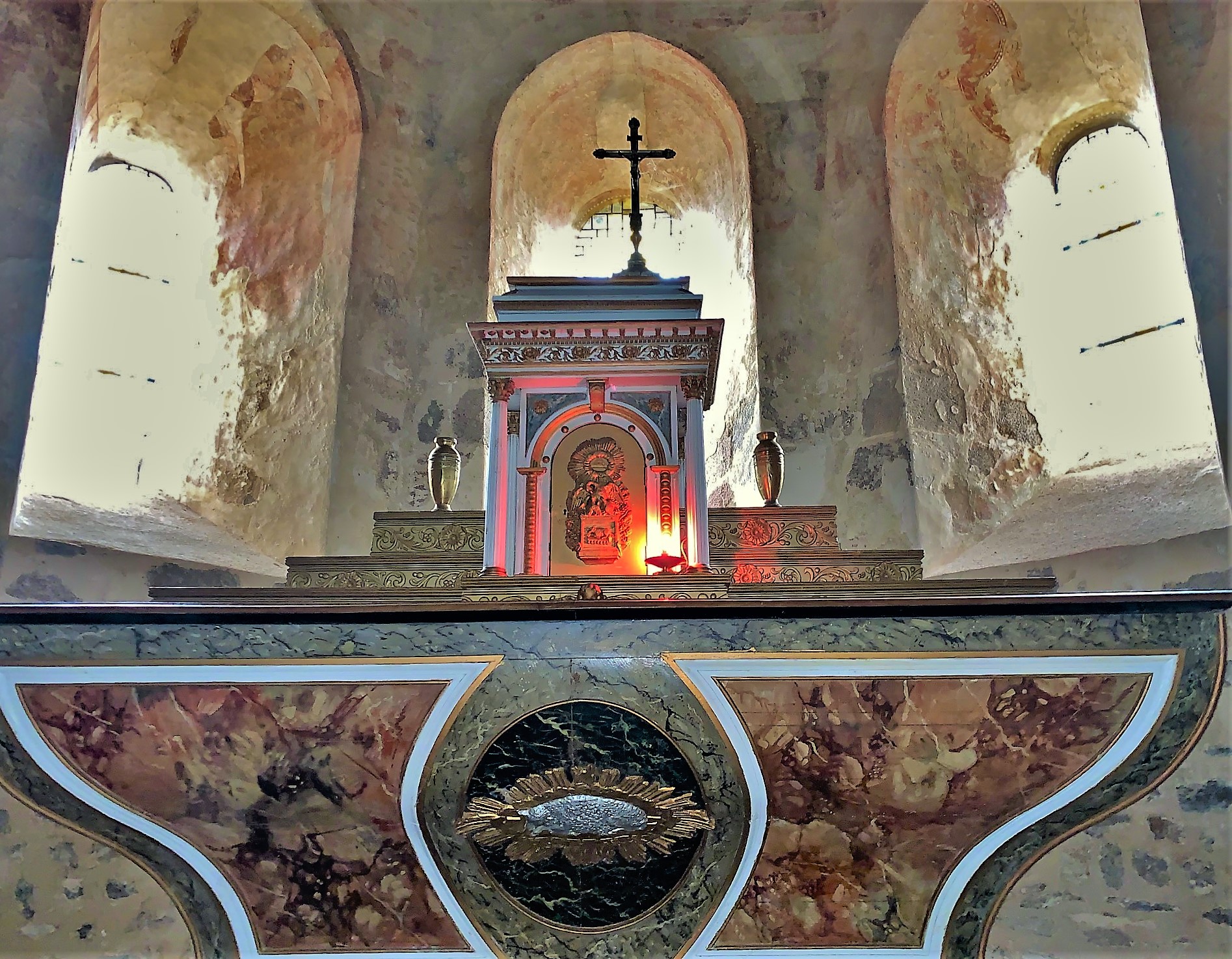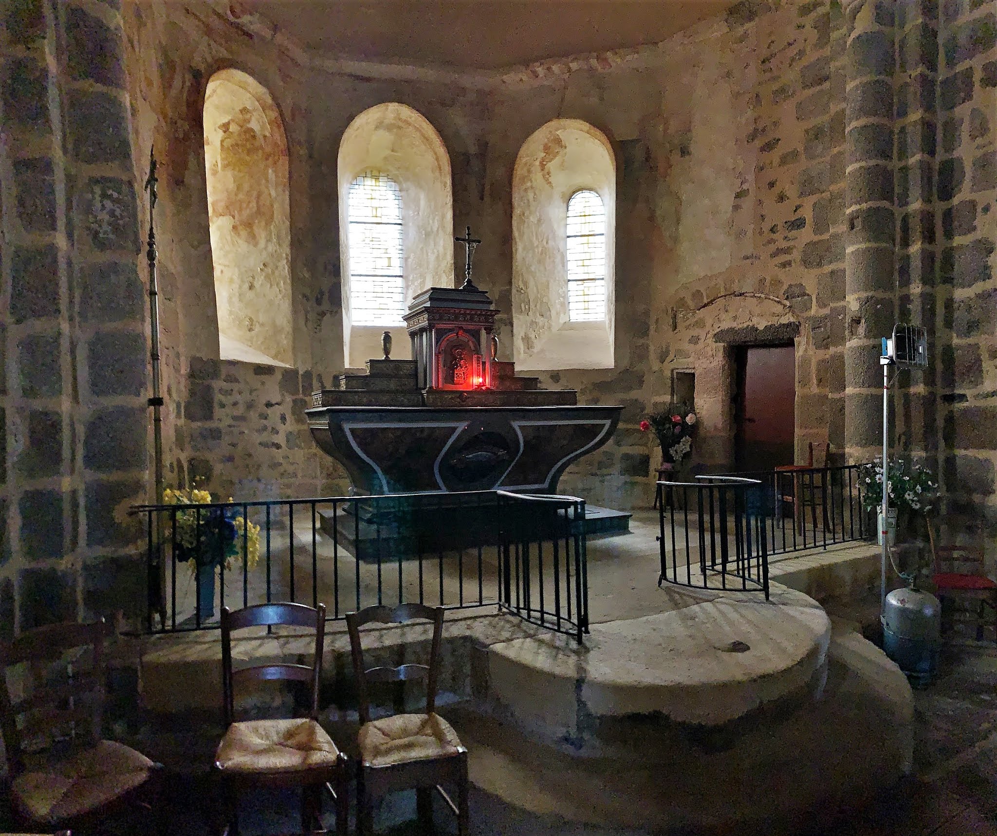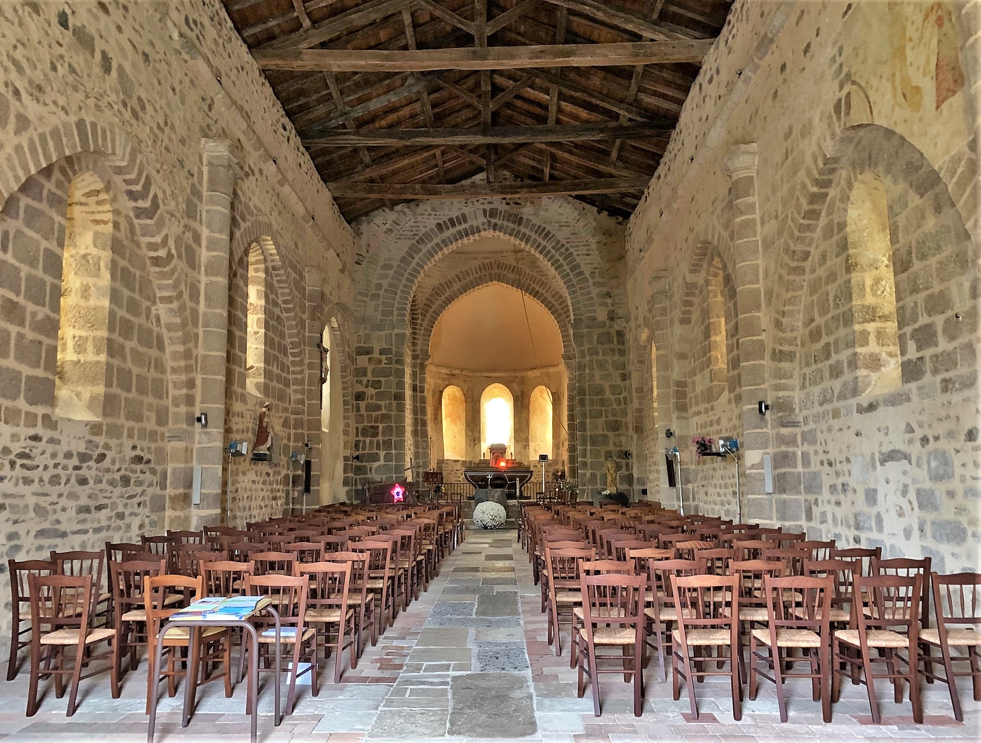 Une église aujourd'hui parfaitement Romane, fidèle à l'esprit qui régnait dans cet édifice au moment de sa création. Construite au 11ème siècle, elle sera modifiée ou restaurée au 14ème, 18ème, et 19ème siècles. Après des travaux sur la toiture et le clocher effectués par la municipalité en 1972-73, elle obtient son inscription par les M.H. en 1980, et va alors bénéficié d'un programme de restauration. Quelques raretés architecturales la distinguent : une abside semi-circulaire à l'intérieur et pentagonale à l'extérieur, une coupole sous clocher en octogone allongé. Des peintures de différentes époques sont encore visibles. Des peintures religieuses dans le chœur, d'autres, sur le mur nord de la nef, semblent porter un message éducatif civil : le sujet en est le dessin en perspective, technique venue d'Italie qui se développe au 15ème siècle.