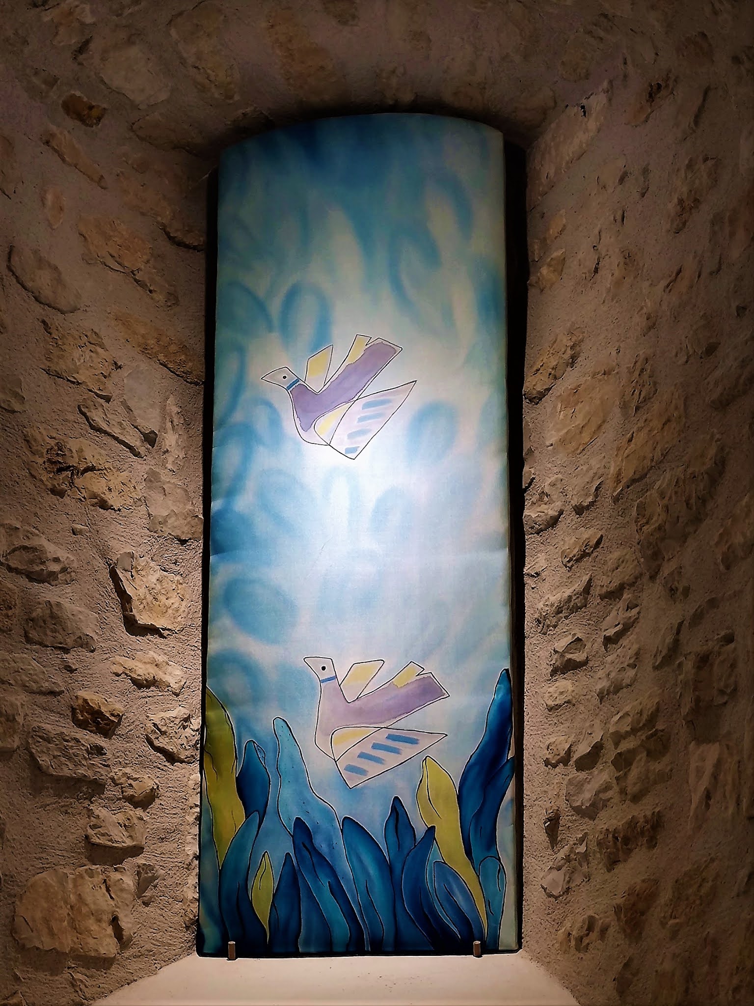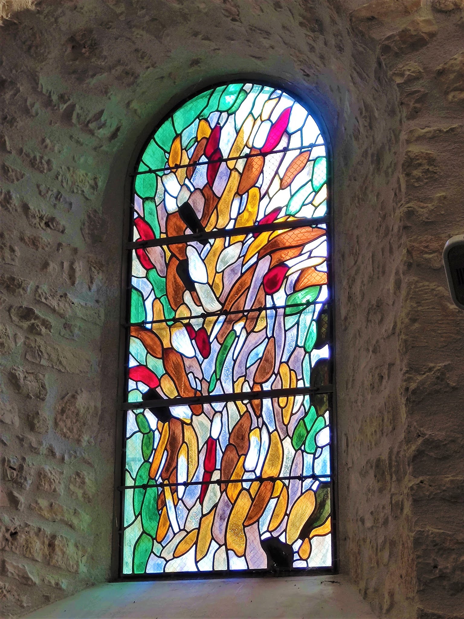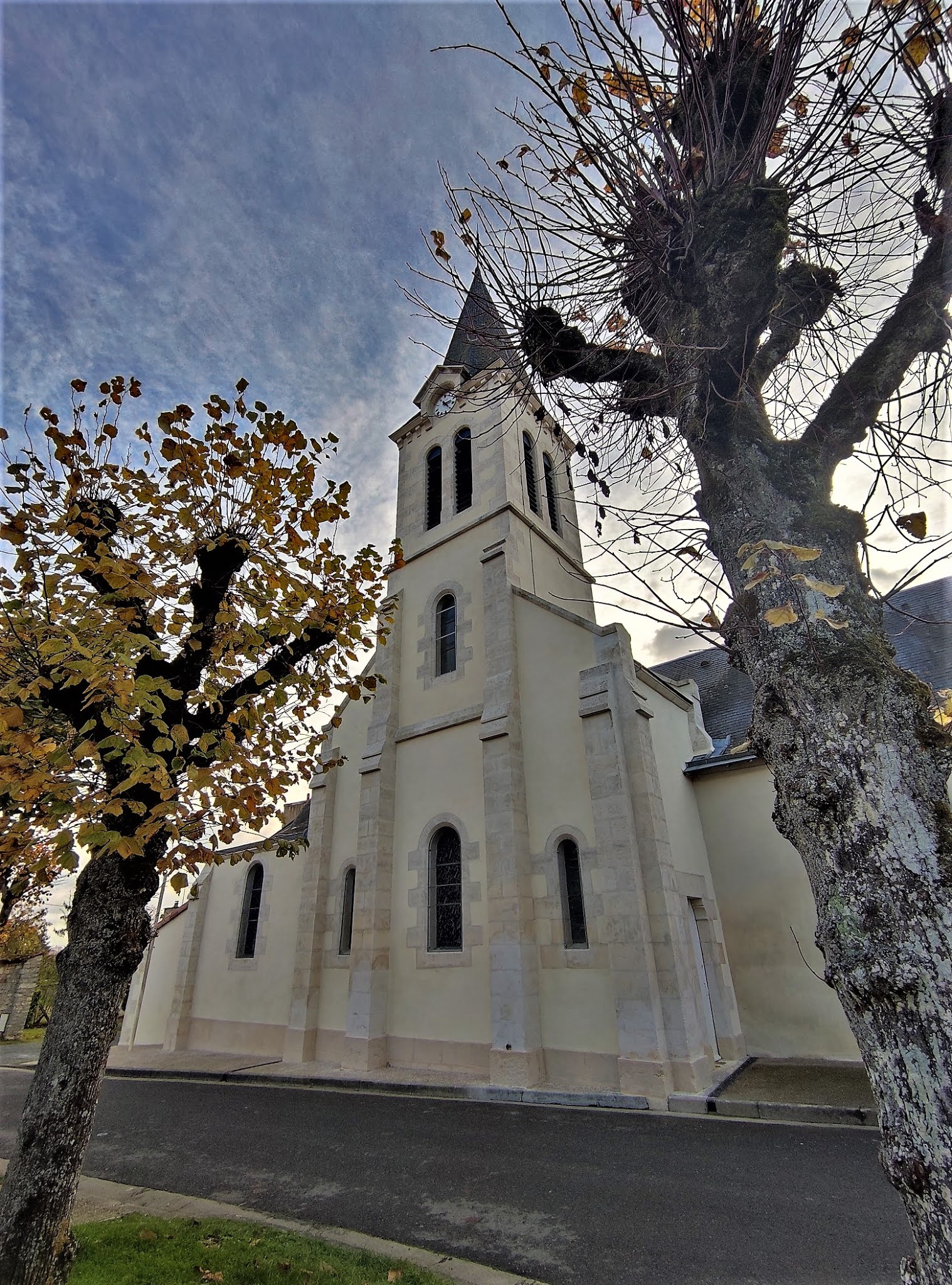 Merveille aux dimensions modestes, elle est témoigne de mille ans d'histoire. Cinq années de restaurations intérieures et extérieures offrent aux visiteurs une église superbe. Je remercie le paroissien, responsable des ouvertures de l'église, pour la visite guidée qu'il m'a offerte. Grâce à lui de multiples détails me sont apparus et m'ont été expliqués. Cette église, construite au 11ème et 12ème siècles, a conservé l'abside de l'édifice primitif et ses colonnes intérieures et extérieures munies de chapiteaux romans. Ces parties, en pierres de taille, sont visibles au chevet mais aussi dans le bras Sud du transept. Le portail date aussi du début du millénaire. A l'intérieur, les murs en pierres apparentes donnent un cachet particulier, les voûtes recouvertes d'un enduit blanc reflètent bien la lumière. Les vitraux de Marina Gelineau, vitrailliste renommée installée à Poitiers, en parfaite harmonie avec l'édifice, diffusent un éclairage coloré et bienveillant. Ils bénéficient d'une signalétique. Dans le chœur, un vitrail représentant le saint-Patron de l'église occupe la petite baie de plein cintre. La statuaire est remarquable, deux statues de Saint-Bernard et Saint-Maur accueillent les visiteurs à l'entrée Ouest. Dans la chapelle sous clocher, dédiée à la vierge, une piéta en pierre est à découvrir. Le clocher, tour carrée accolée au Nord de la nef, abrite 4 cloches, dont une de 1450, une des plus anciennes de France. Agrandie et modifiée au 19ème siècle, cette église Saint Pierre ès Lien a gardé son charme et son authenticité. La fraicheur apportée par les restaurations lui a redonné belle allure.