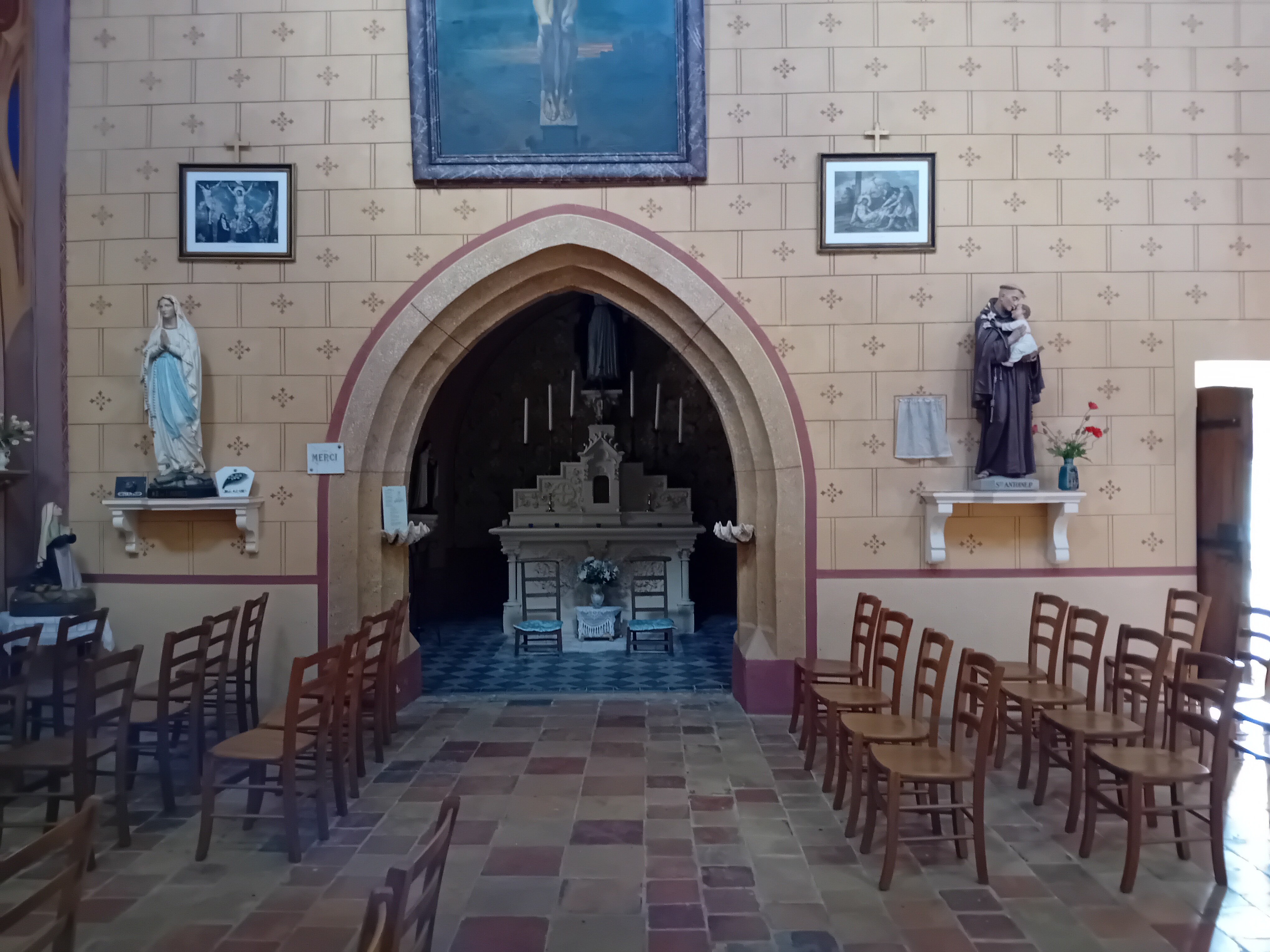 Magnifique église construite au XIIIe siècle qui domine la vallée de la Gupie. Elle possède une charpente apparente en forme de coque de bateau inversée. Nombreuses peintures murales et de très beaux vitraux. Très beau paysages tout autour.