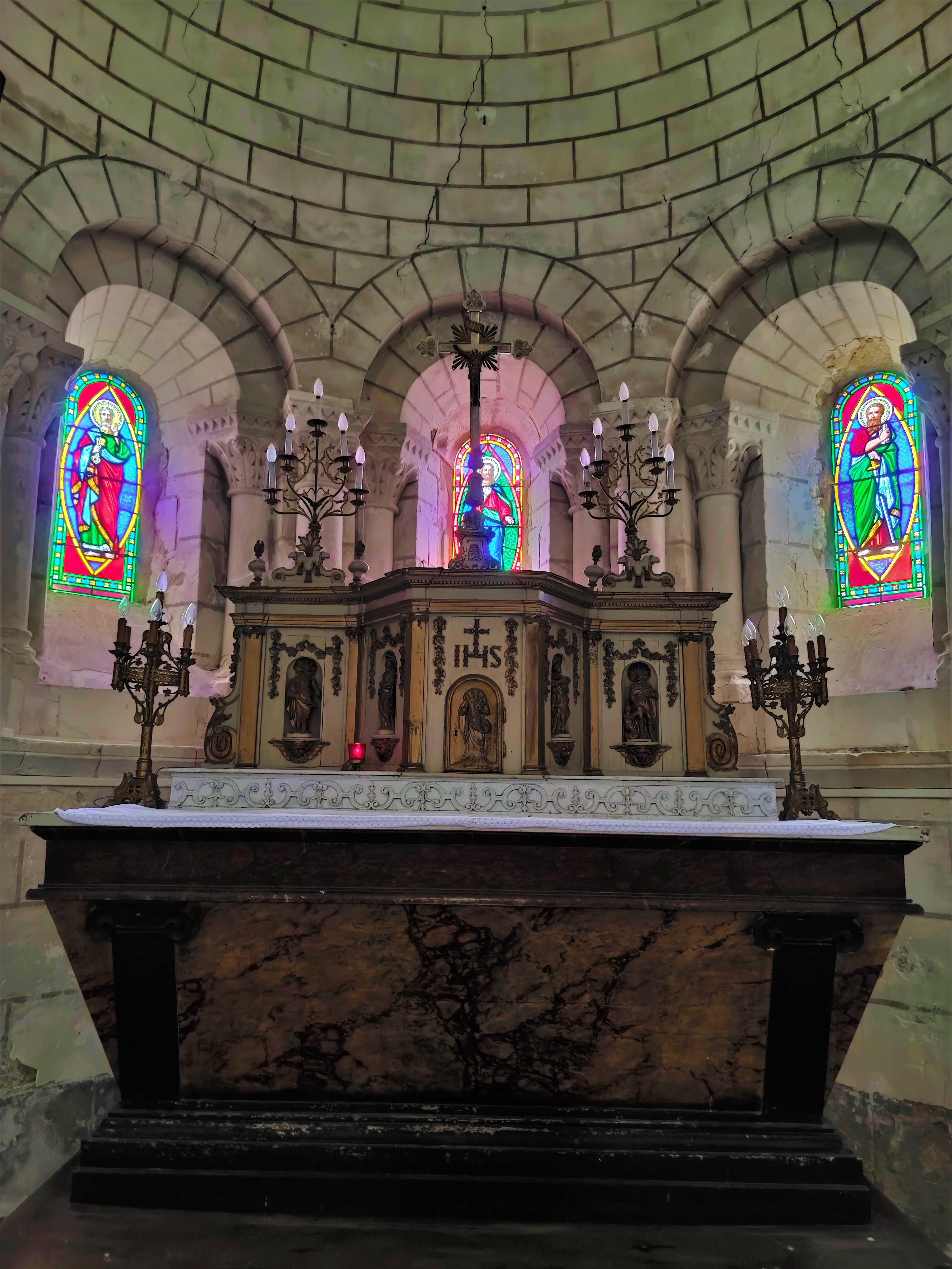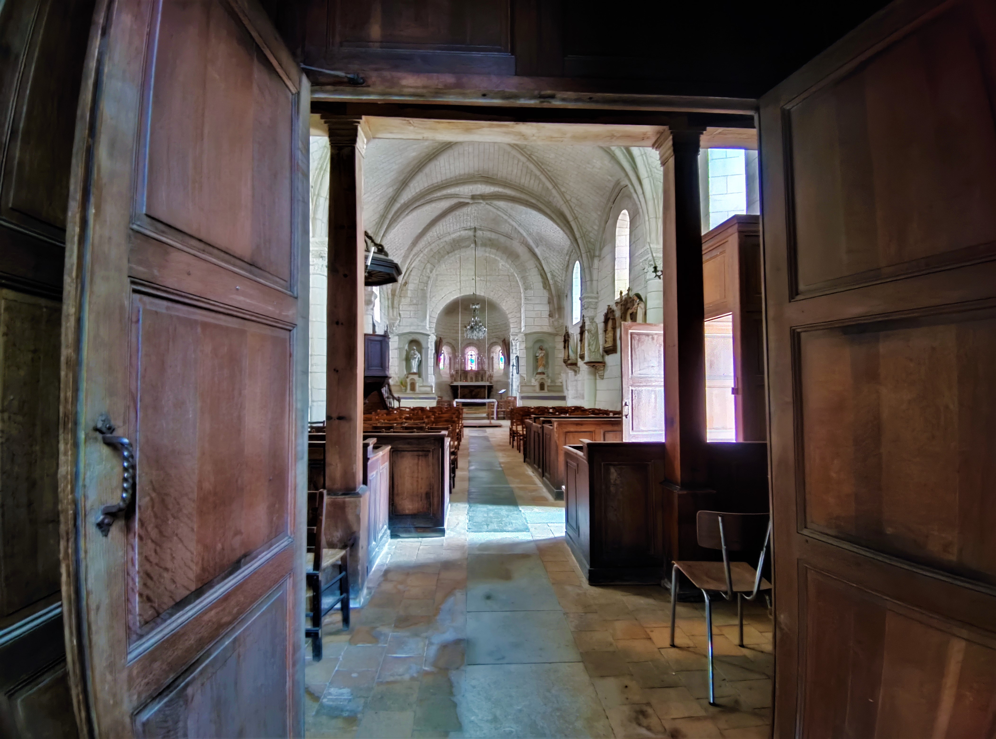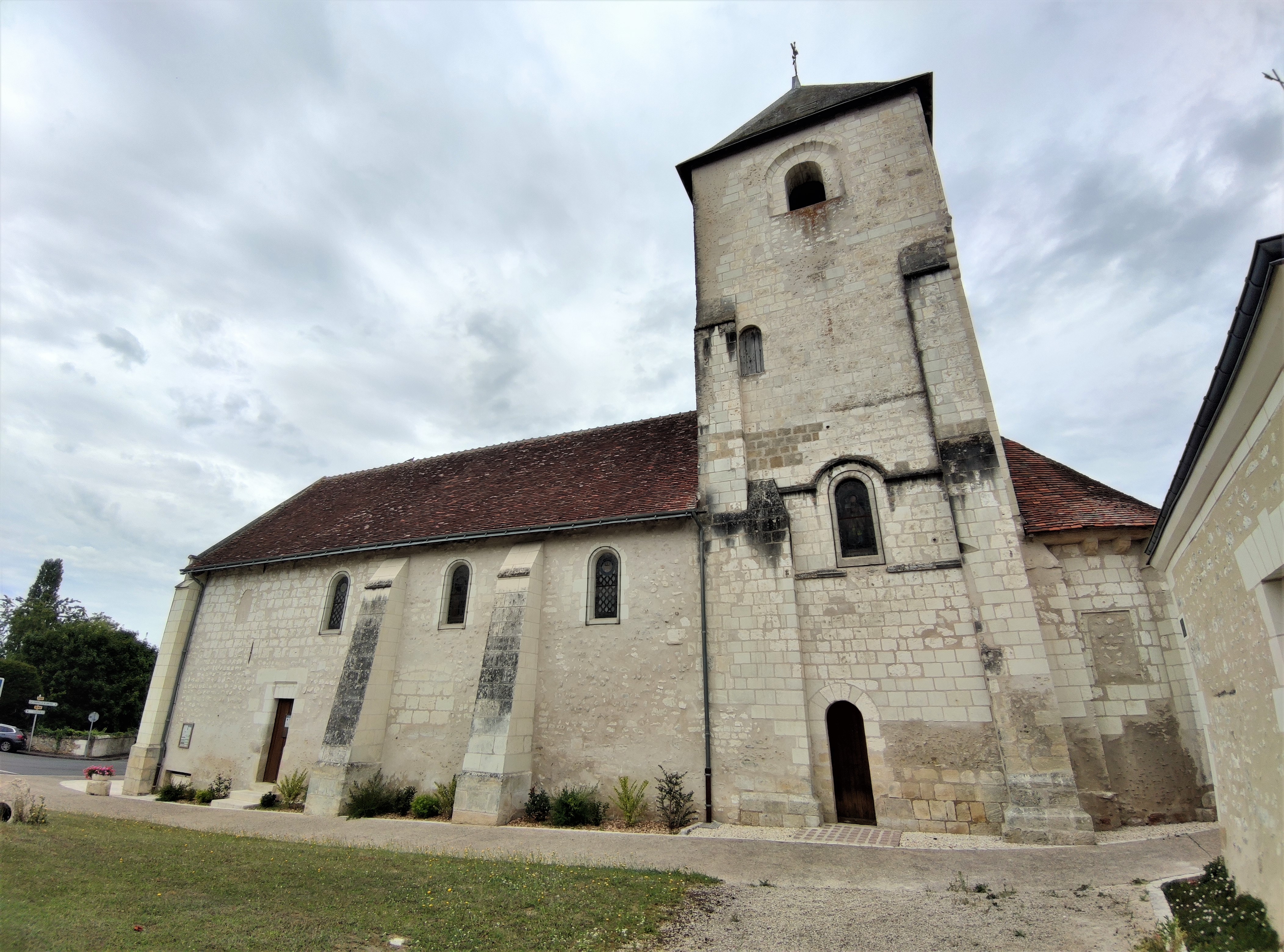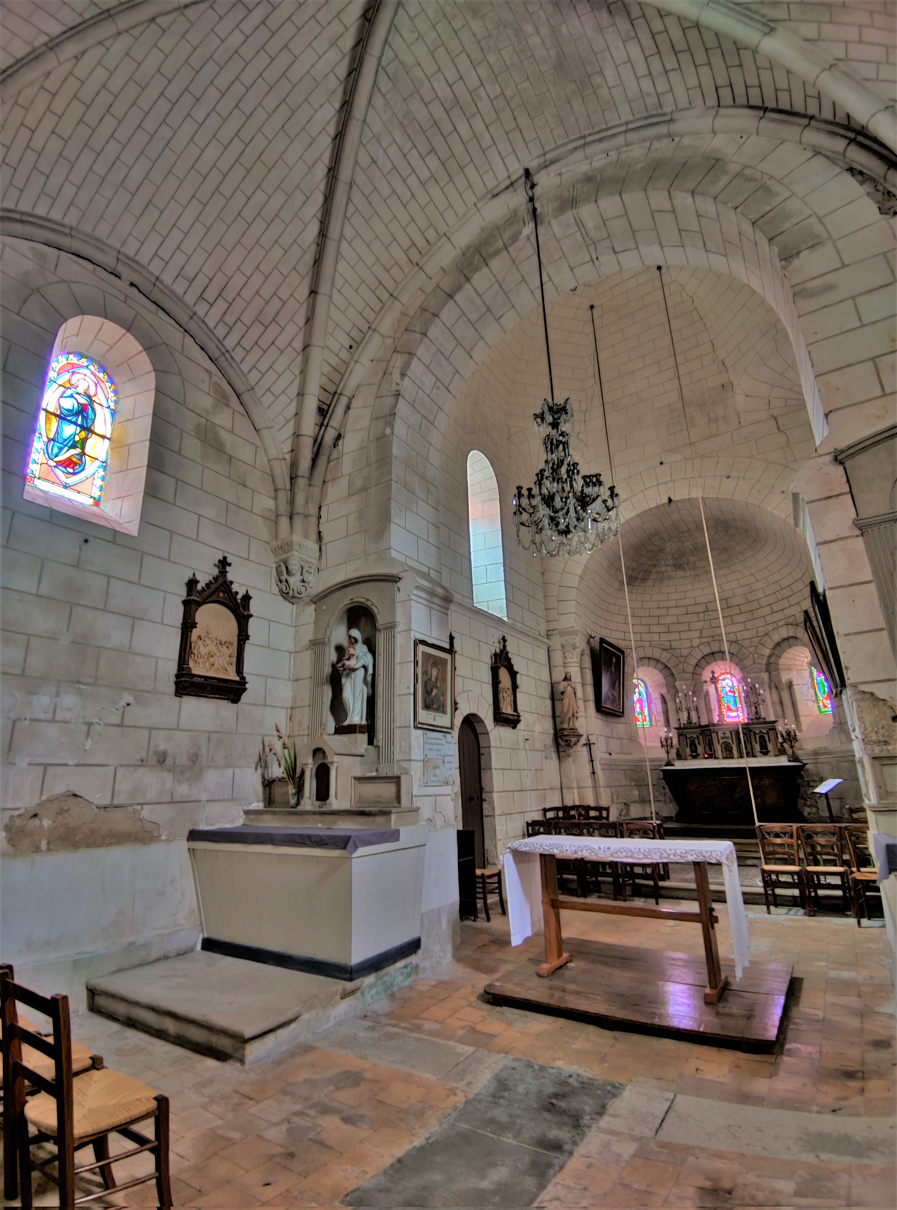 Protégée par les MH depuis 1973, j'ai trouvé cette église ouverte et accueillante. Église romane du 12ème, touchée par la foudre au 18ème, la façade, le portail et le haut du clocher ont été refaits au 19ème. La nef a reçu une voûte en briques à la même époque, mais l'esprit roman a été préservé. Pour la réfection du portail, des réemplois d'éléments sculptés du 12ème donnent un vrai cachet à la façade. Le clocher a une allure authentique, la voûte en briques respecte les courbes en plein cintre qui prédominent. La travée sous clocher est couverte d'une coupole sur trompes, l'abside semi-circulaire est voûtée en demi-coupole. Ouverte lors de mon passage, la mairie, situé en face de l'église, vous ouvrira si nécessaire.