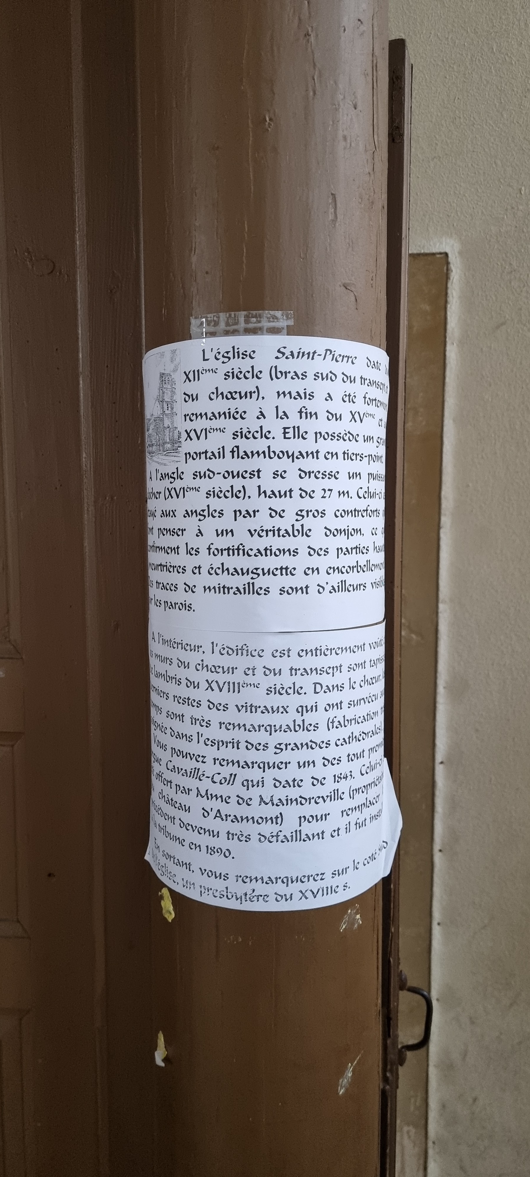 Eglise du XIV à siècle classée mais peu entretenue. Si les bancs et le sol ont été refaits partiellement, l'intérieur de l'église est peu engageant. L'orgue classé Cavaillé Coll de 1841 est laissé à l'abandon. Il se dégrade de jour en jour et rien n'est fait pour le rénover. L'extérieur de l'église n'est guère plus reluisant. Les tuiles sont en très mauvais état et recouvertes de mousse.