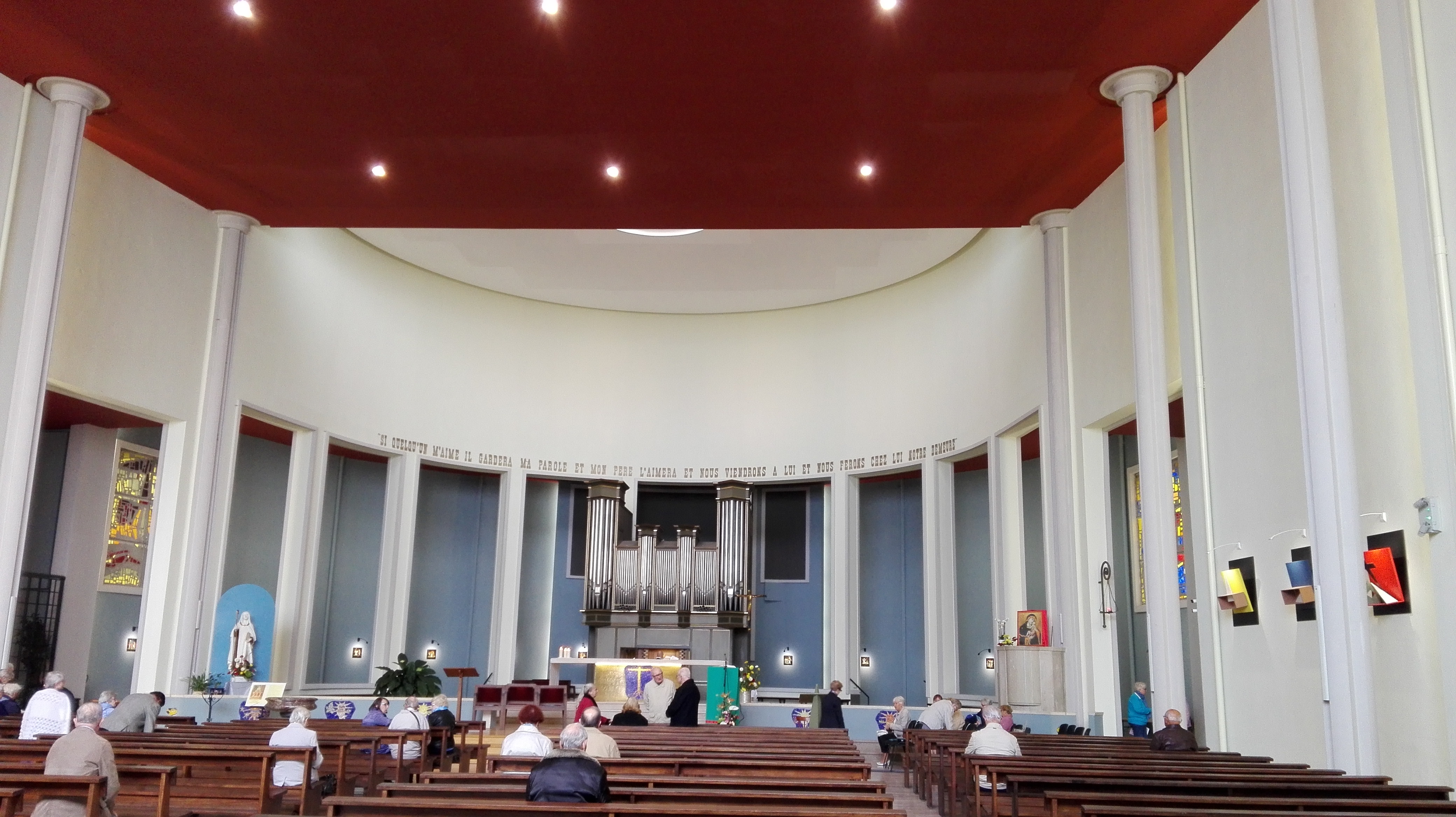 Malgré l'aspect extérieur de l'église sans élégance, l'intérieur et l'aménagement sont beaux. Les mesures anticovid me semble efficace.