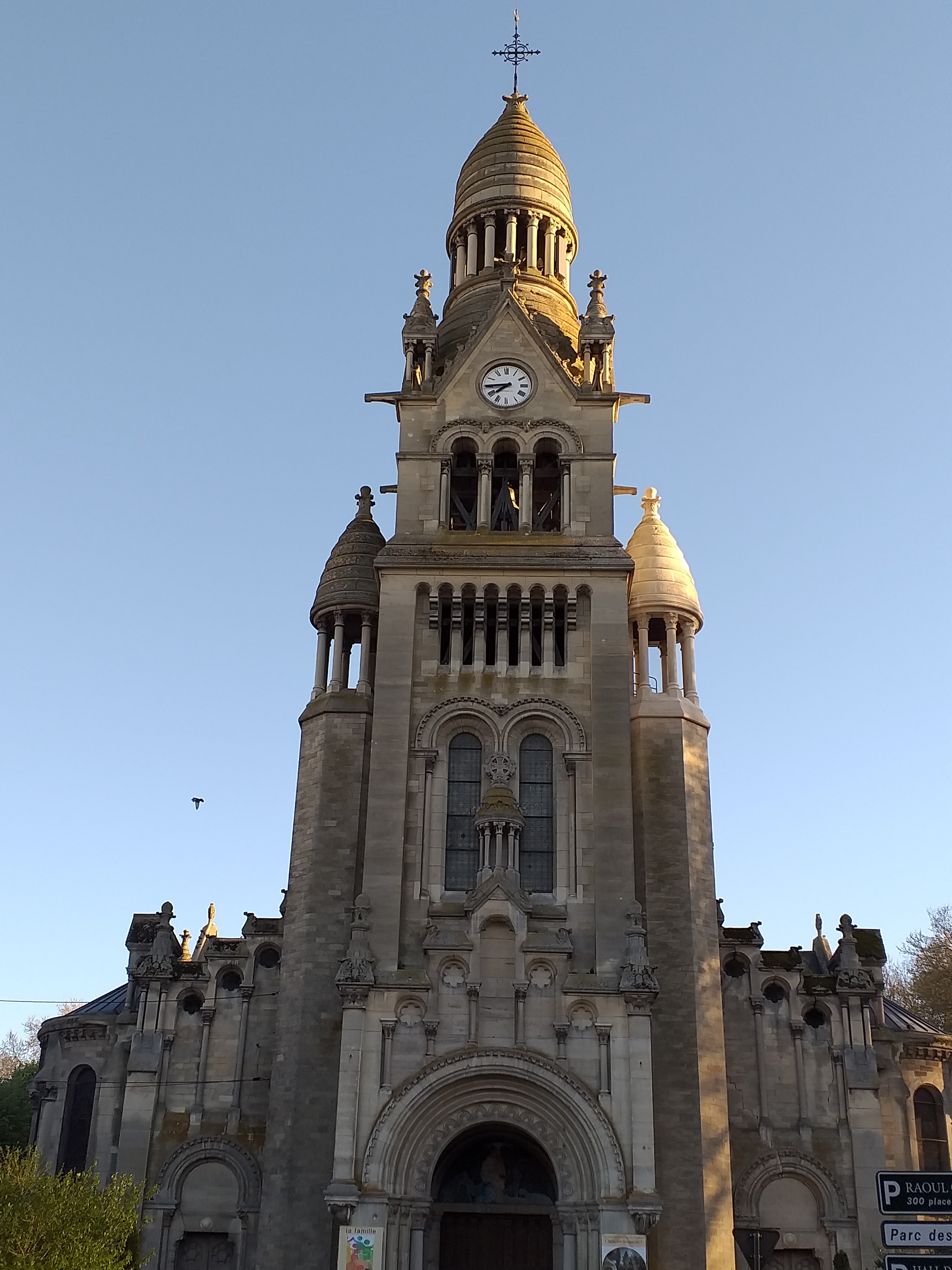 Église néo-romane. Une tour ressemblant au sacré cœur de Montmartre. Bel autel entouré d'un mur de mosaïques. Orgues classées. Très beaux vitraux.