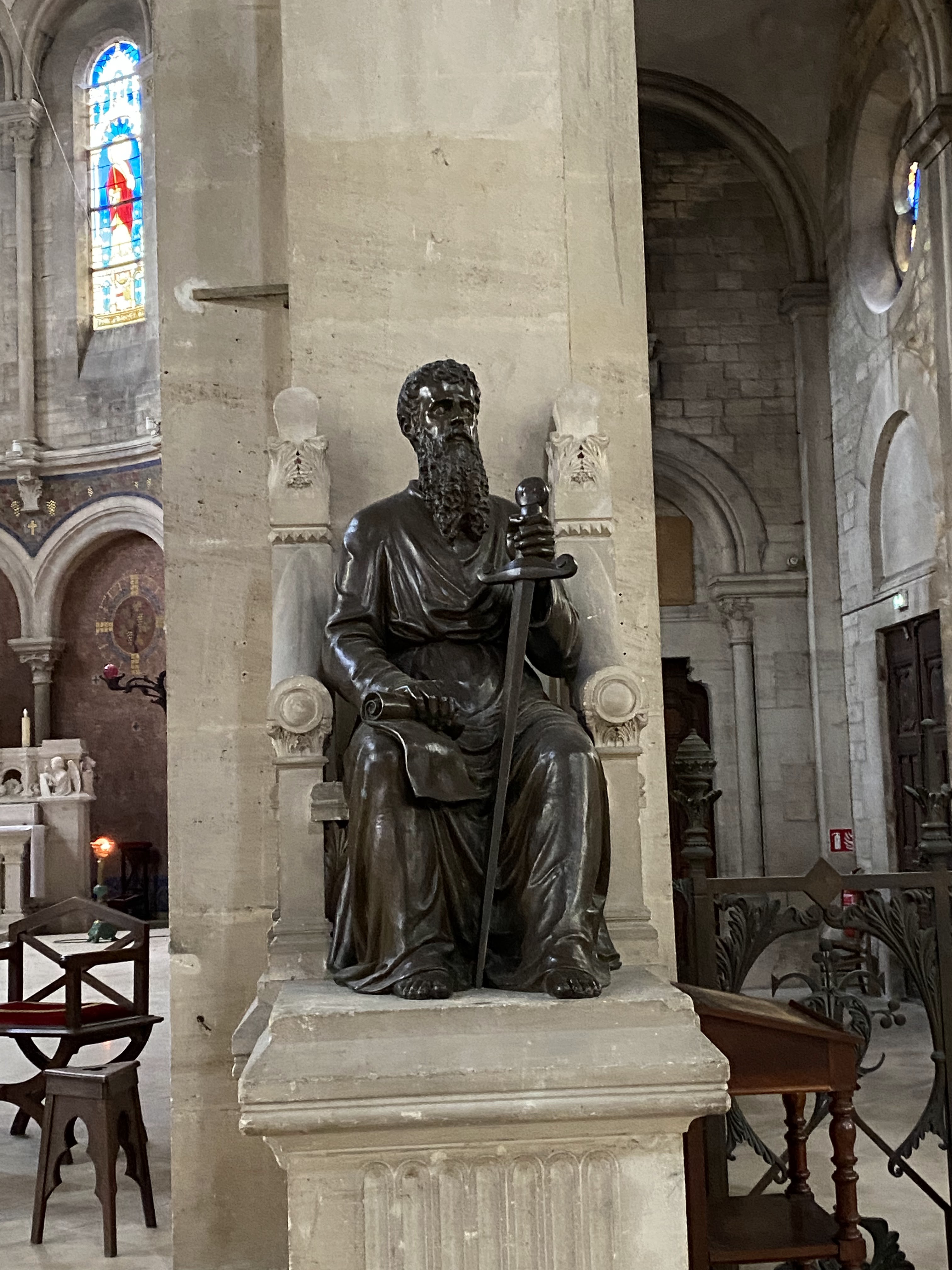 Belle église, beaux vitraux et deux très belles statues de St Pierre et St Paul de chaque côté de l'autel.