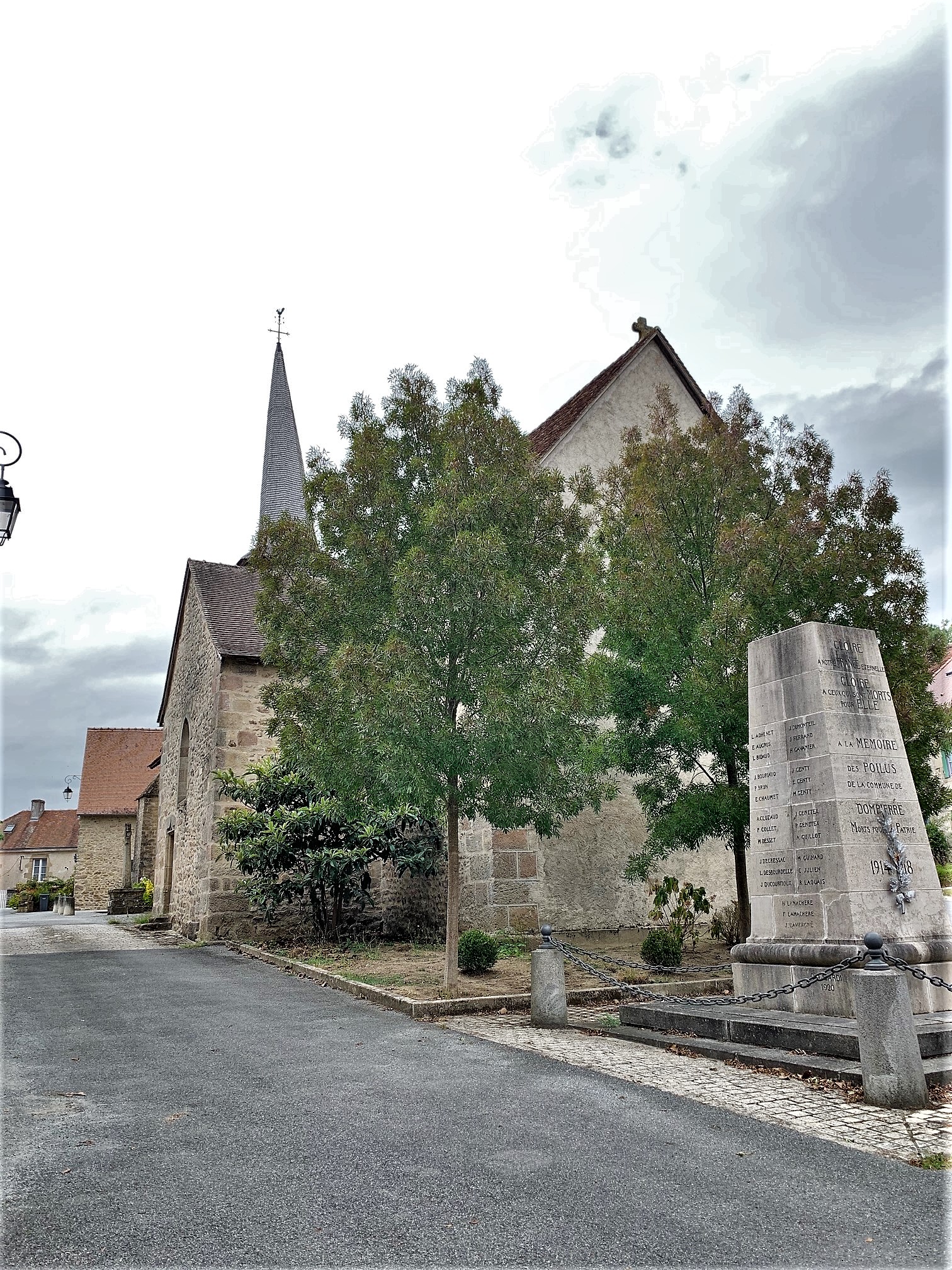 Un village charmant, l'église est bien mise en valeur sur la place centrale. La commune comporte moins de 400 habitants, la petite église possède un clocher inscrit aux M.H. ainsi que trois statues, un tableau et une croix, protégés également. Contrairement aux renseignements que je possédais, l'église était fermée, il fallait s'adresser à la mairie pour emprunter les clés. La mairie était fermée ce mardi à 14h15, les horaires d'ouvertures sont : du mardi au samedi de 8h00 à 12h00. Dommage, je me suis contenté des extérieurs, comme pour le château de Dompierre-les-Églises, dont toutes les animations sont suspendues (il est donc inaccessible) pour cause d'épidémie.