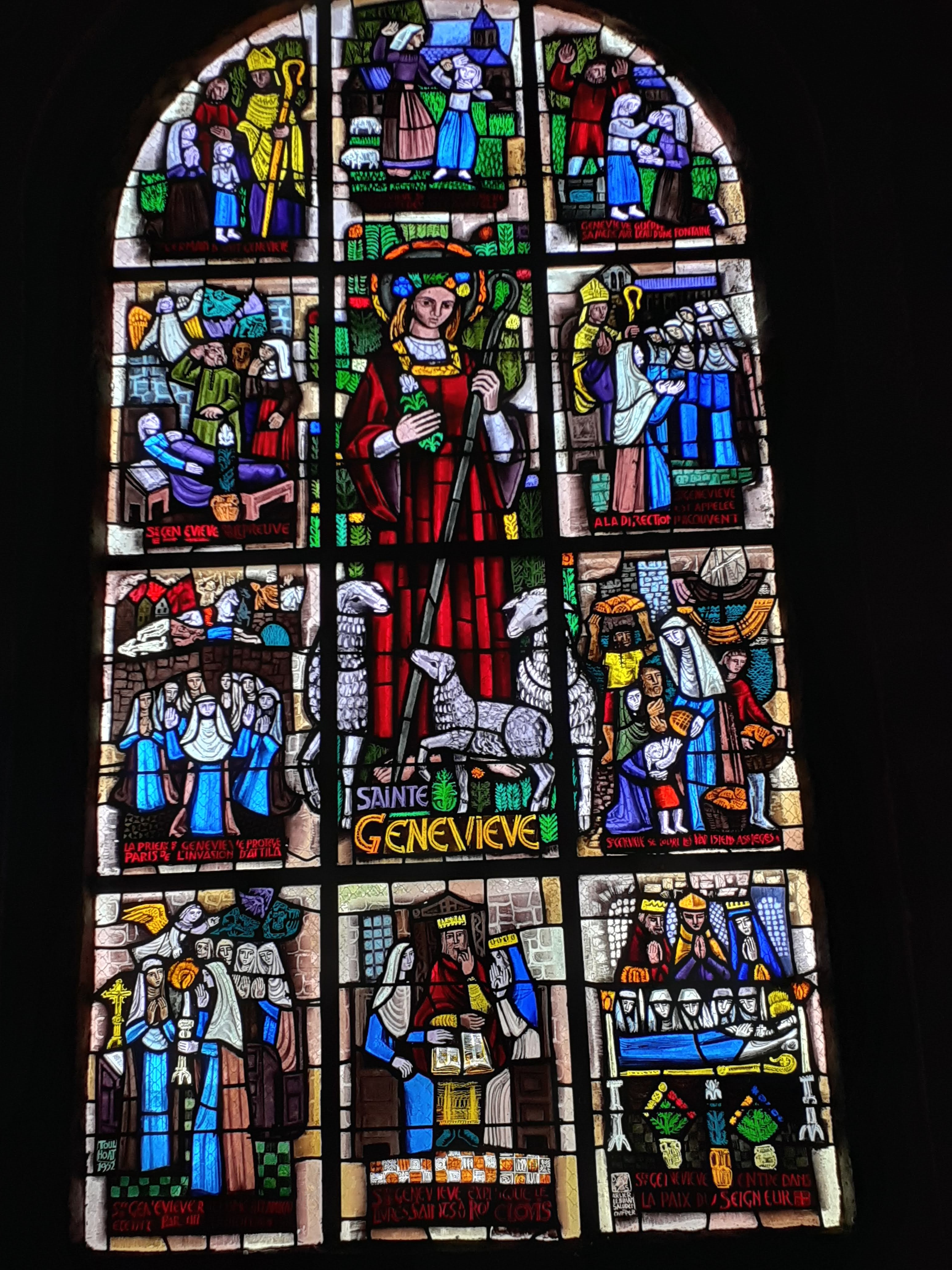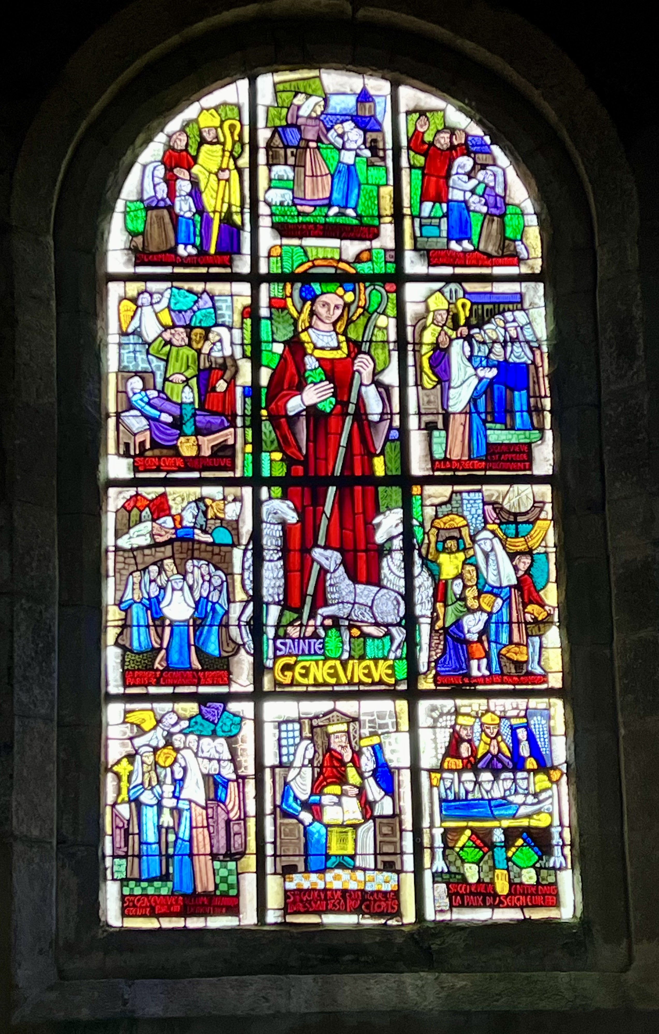 Très belle chapelle dans son enclos. De jolis vitraux, un ensemble de la fin XVI ème. Un beau retable de Ste Geneviève. Une statue équestre du Roi Gradlon, sur l'arc de Triomphe