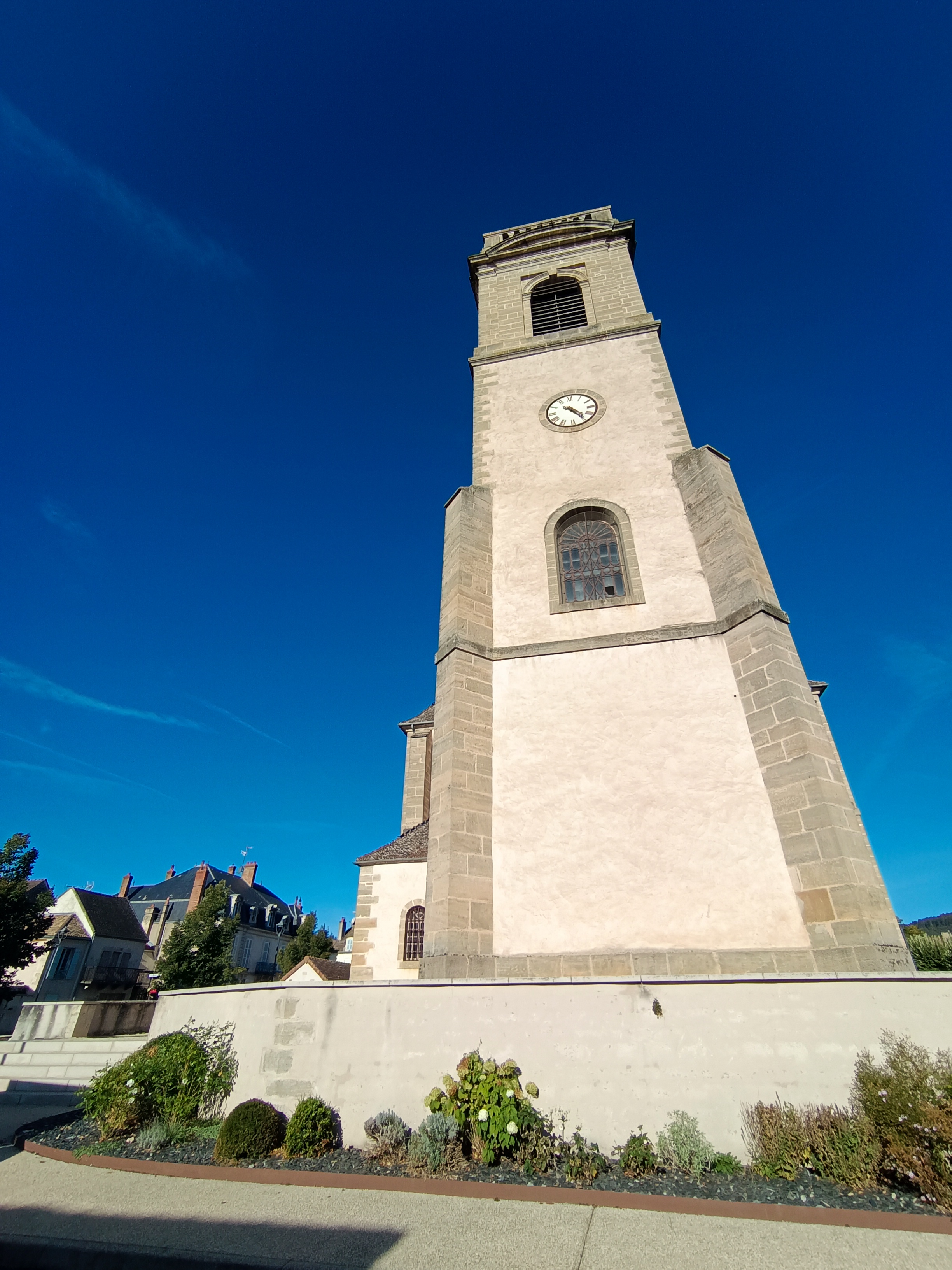 Église massive au centre du village