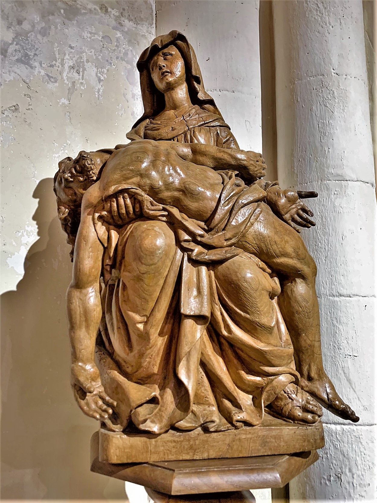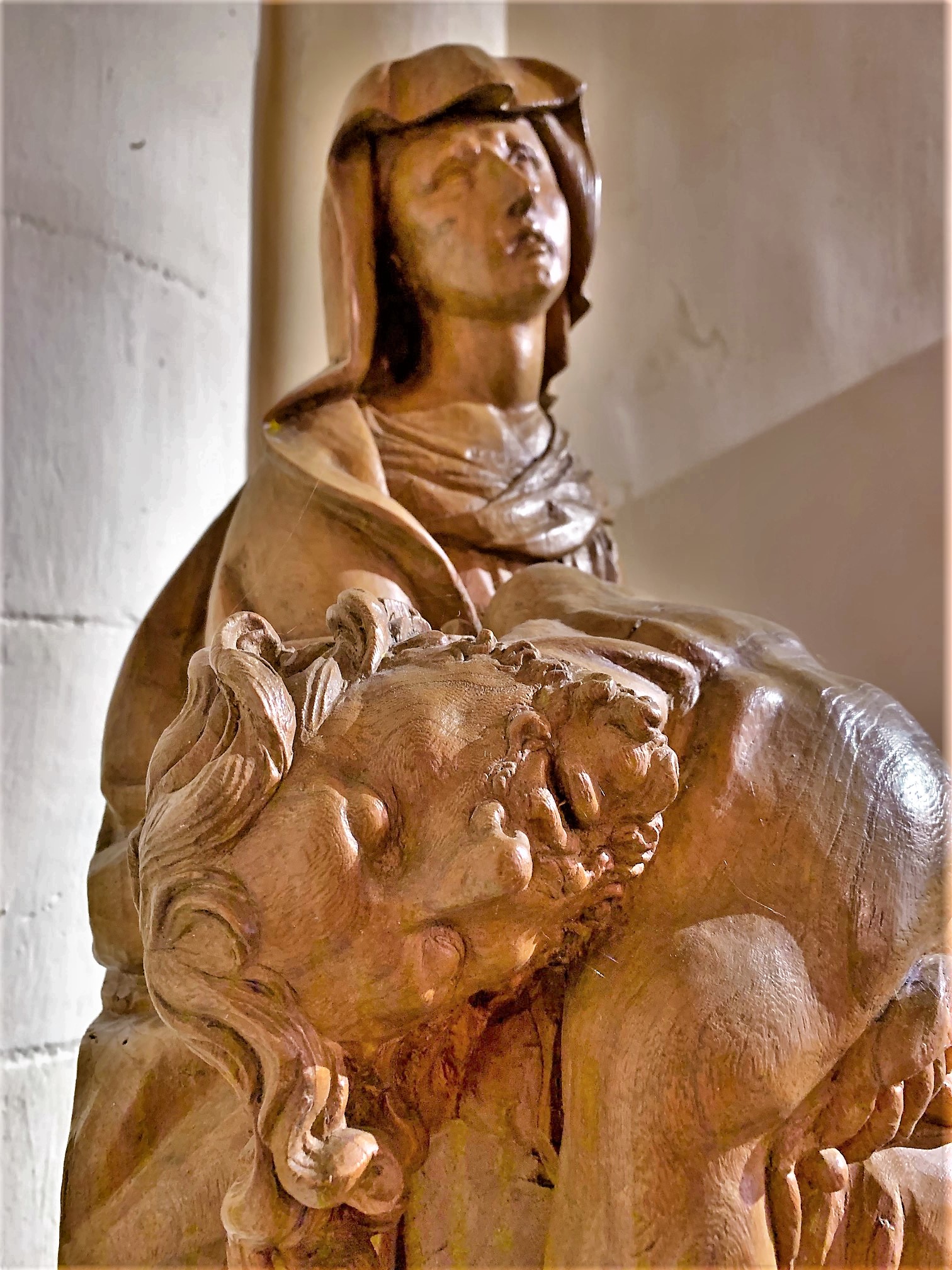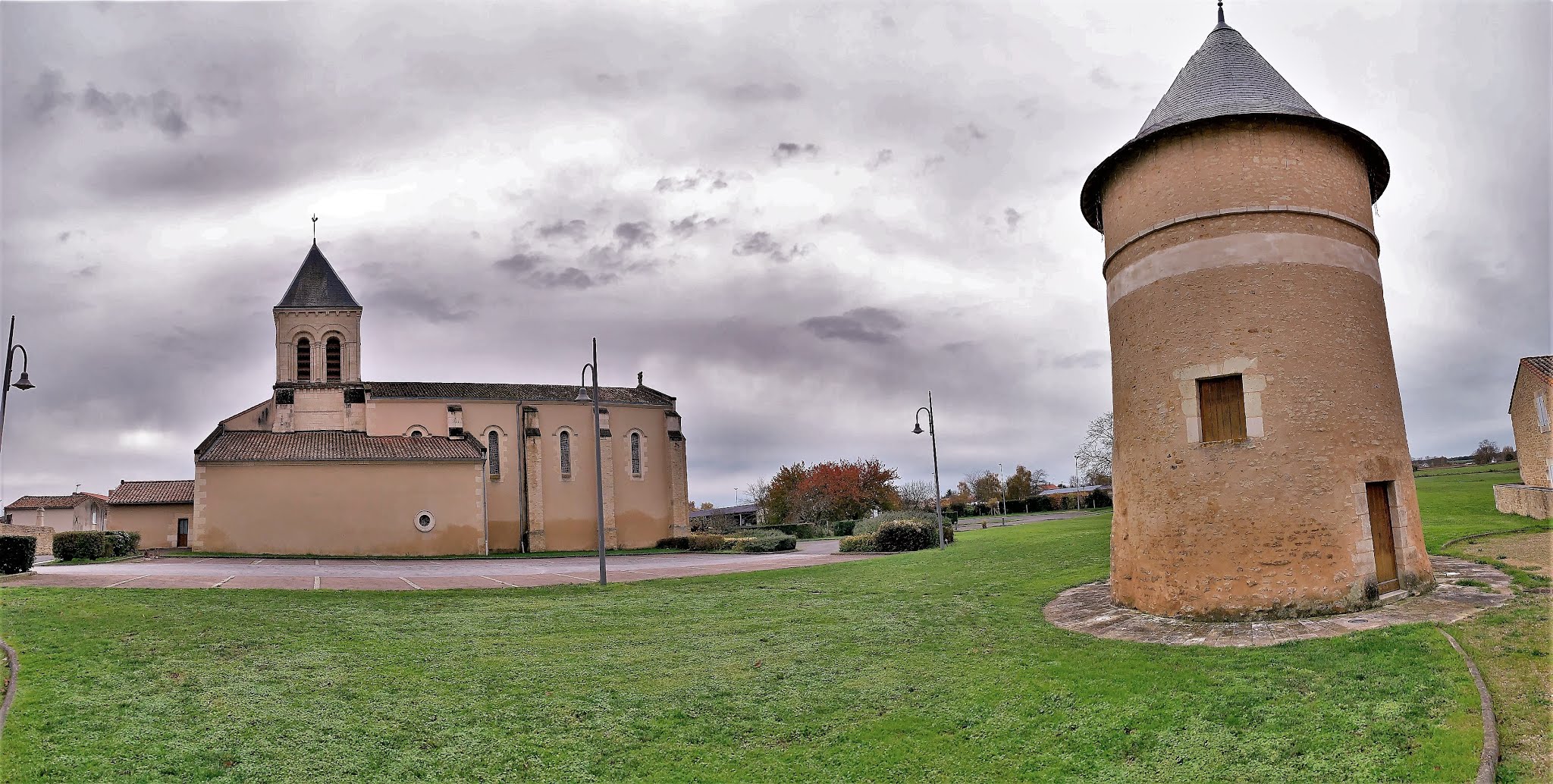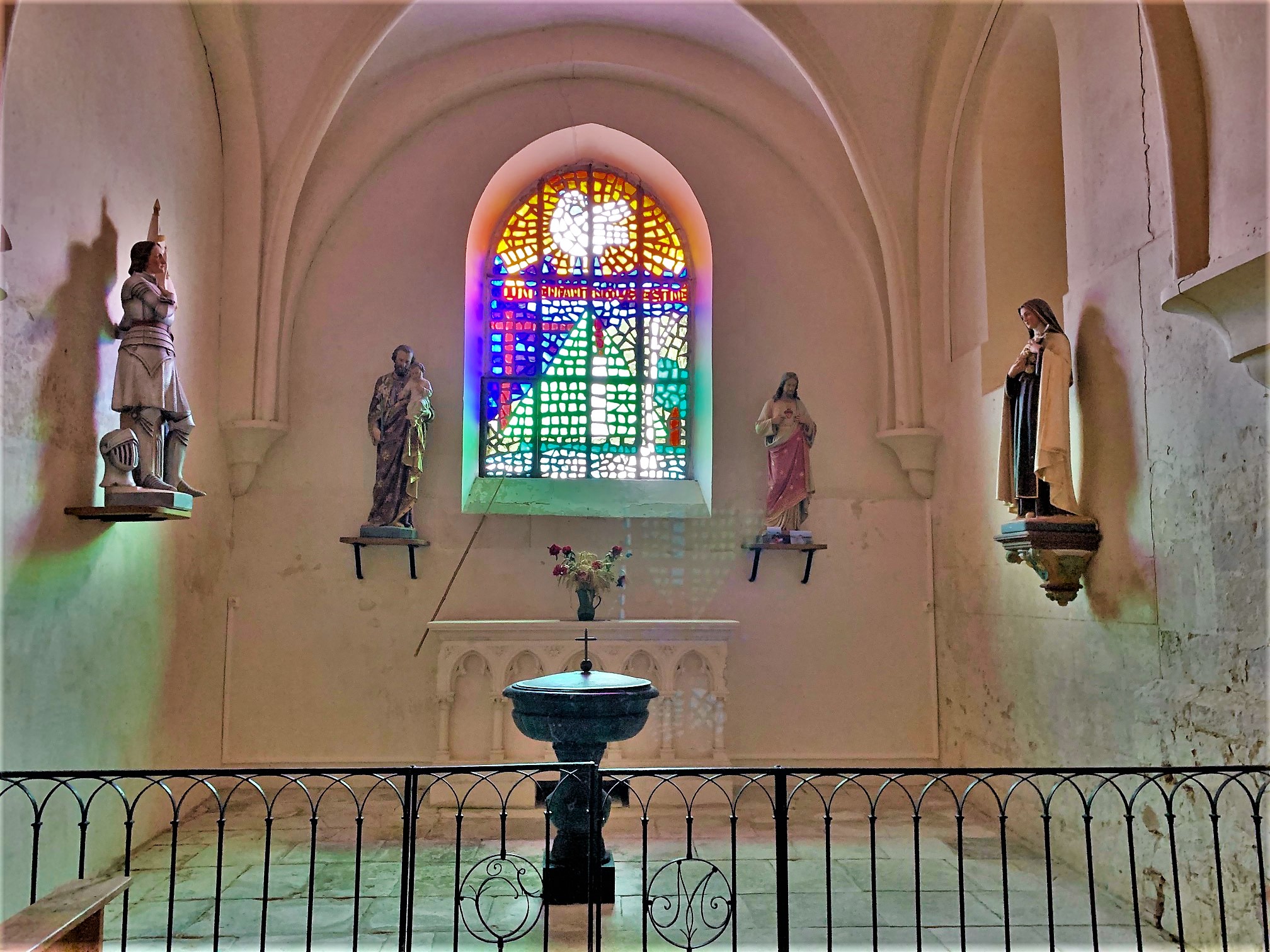 Une église simple, joliment éclairée, située près d'un pigeonnier, le cadre est charmant. L'édifice a été mis en valeur au centre du village, la place et et les constructions proches ont bénéficié de l'attention et des soins des responsables locaux. Pour visiter l'église, il faut s'adresser à la mairie, située à 200 m, une personne vous redirigera vers le détenteur des clefs. En fait, cela est très simple, la dame de la mairie est courtoise et efficace, le détenteur abrite tout près de l'église. Cette dernière fut construite au 12ème, souvent remaniée, elle a gardé, son clocher, son chœur et son abside du bâtiment primitif. Des vitraux modernes, en dalles de verre retaillées, éclairent de façon intéressante et colorée la nef. Une chapelle, consacrée à Saint-Jacques, est de belle importance, cet édifice était une étape importante pour les pèlerins sur la route de Saint-Jacques-de-Compostelle. Le clocher, restauré au 19ème, est situé au dessus du chœur, ce dernier est prolongé à l'est par l'abside. A l'entrée du chœur, une pietà du 16ème, en bois d'orme, restaurée et magnifique est l'objet prestigieux de cette église.