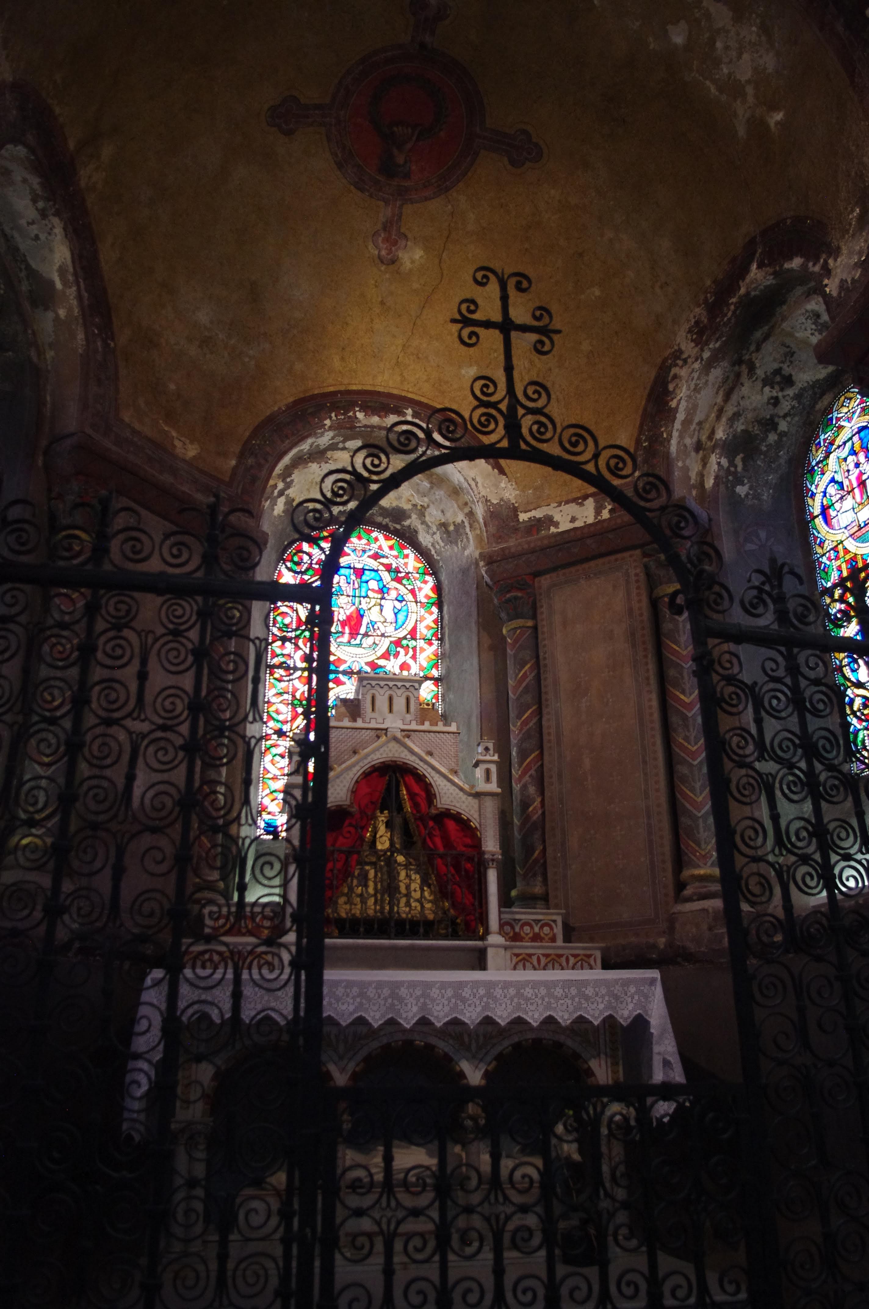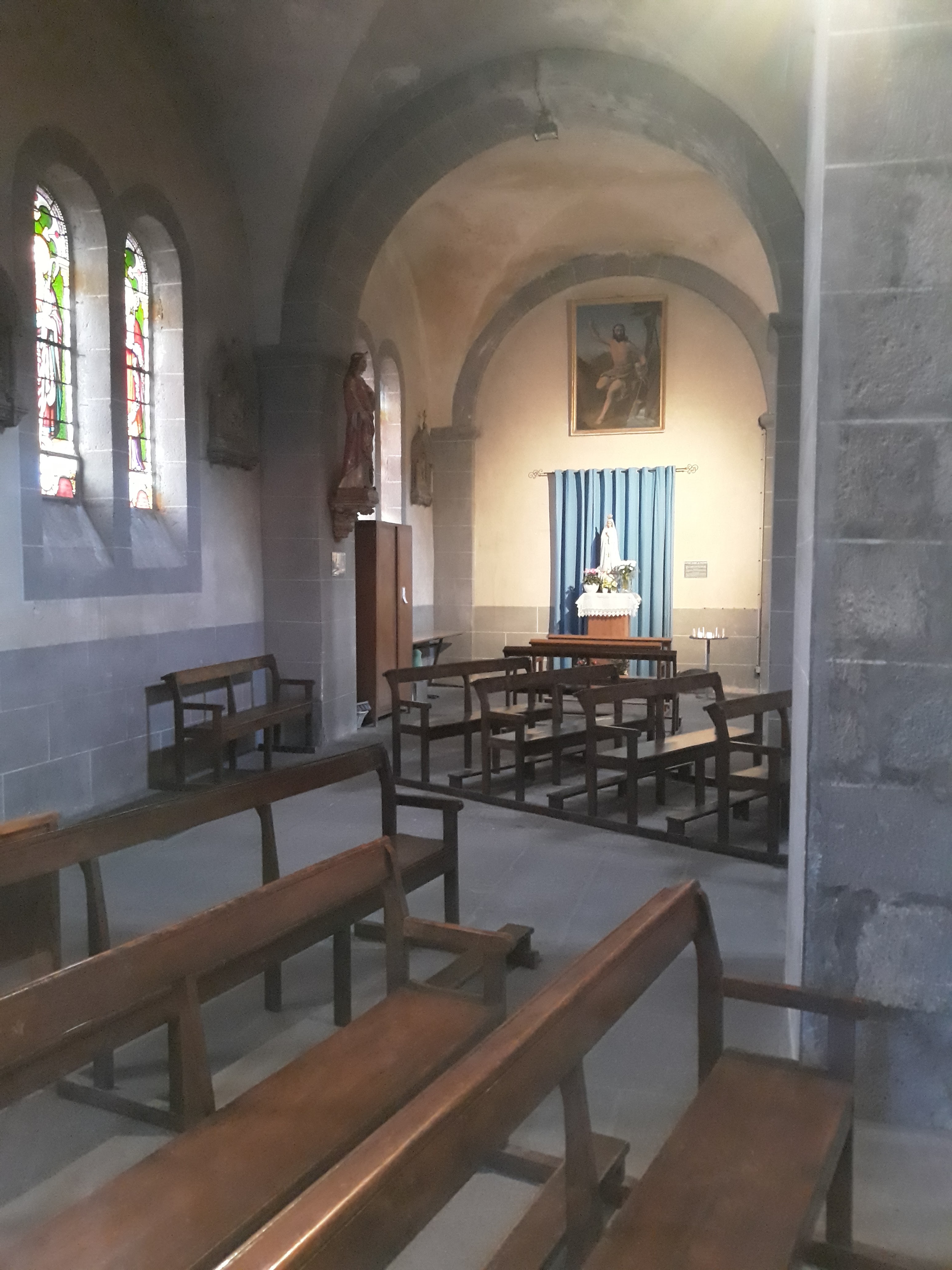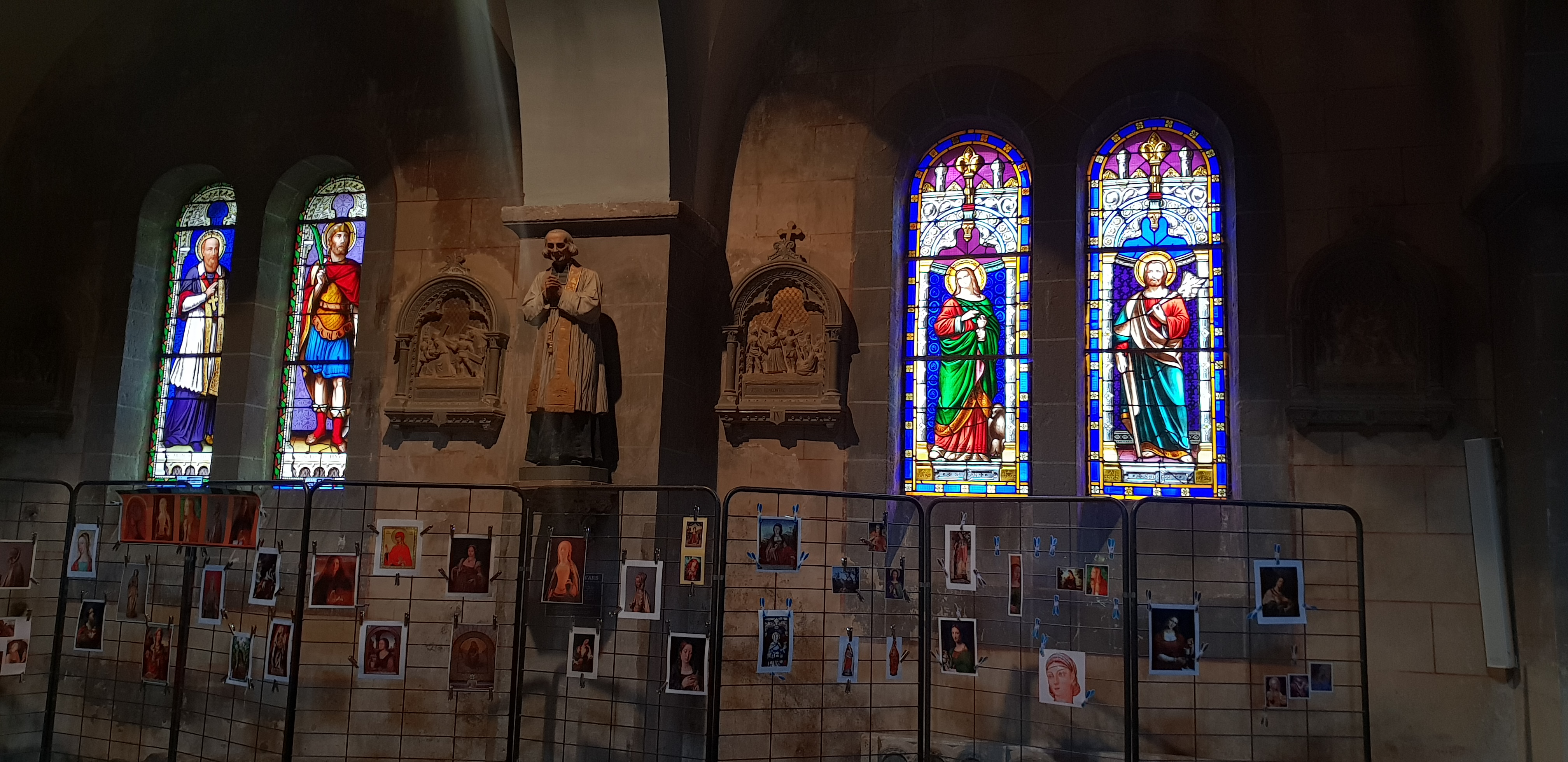 Un peu sombre dommage.. L éclairage mériterait d être amélioré car il y a plein de belles choses à voir. Les vitraux ou le chemin de croix en mosaïque. Très jolis, très colorés.