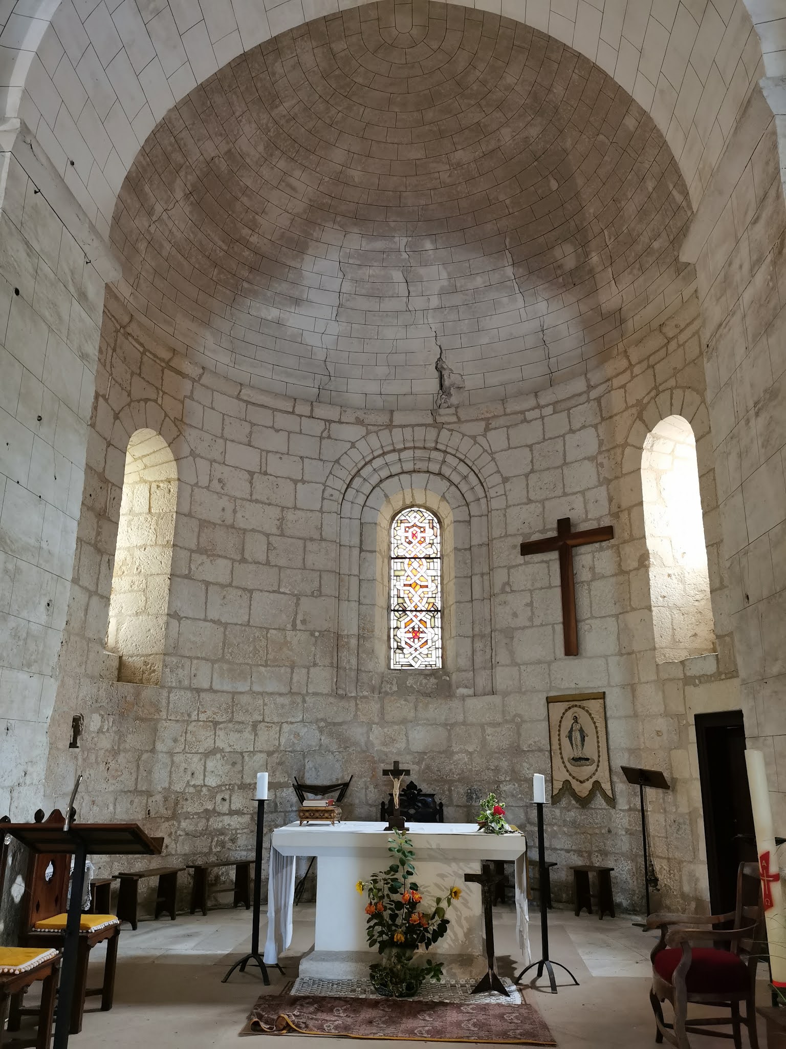 Église fortifiée de style romane à coupole du 12e siècle. La façade de type saintongenais avec un très beau portail à voussures et une série de modillons. Il y a deux autels en bois sculpté, un du XVIIe siècle et l’autre du XVIIIe siècle. Quelques piliers de la nef sont décorés de beaux chapiteaux à feuillages. Cette église, d’un ancien prieuré bénédictin disparu à la Révolution, est devenue paroissiale.