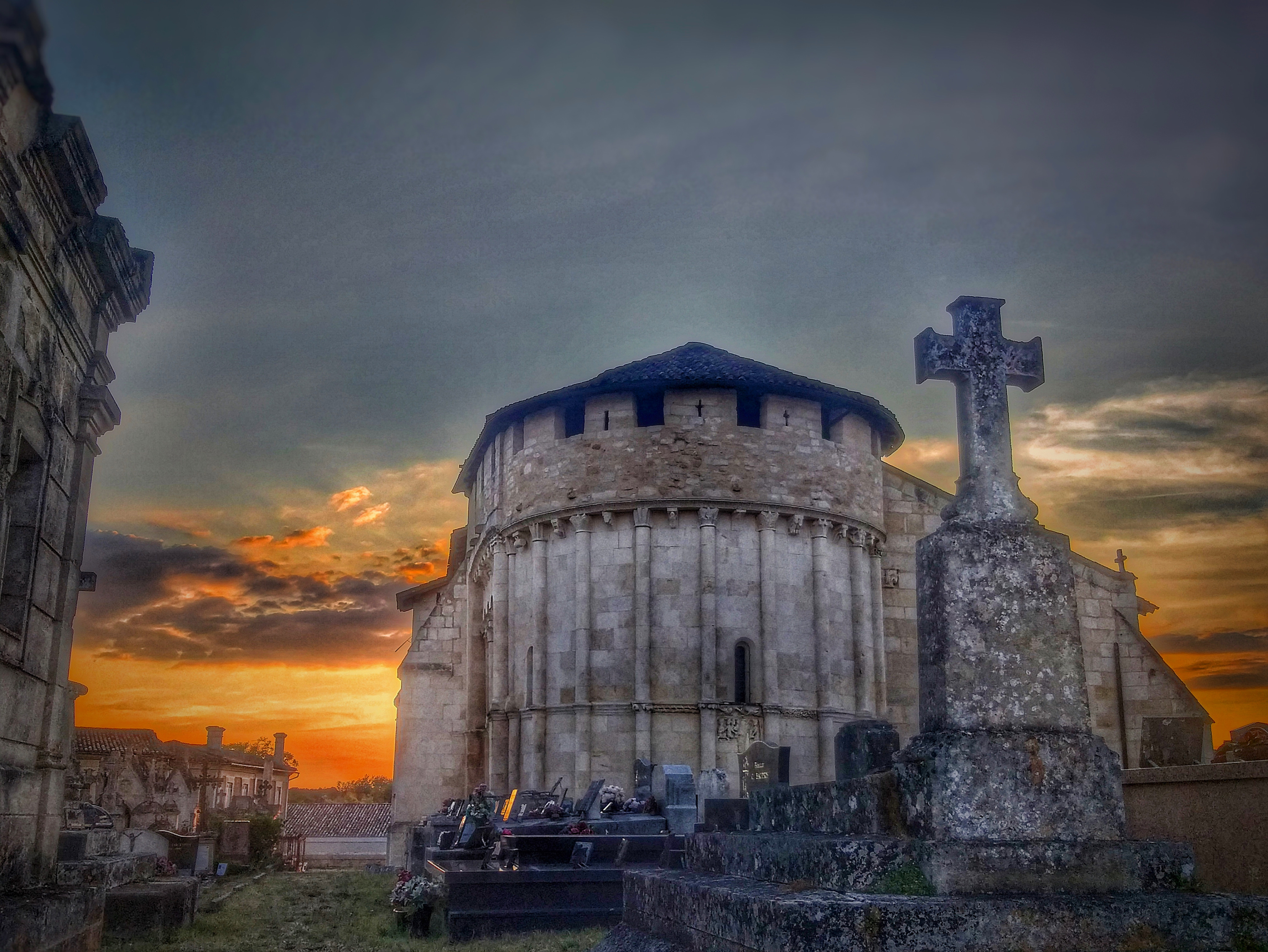 Charmante petite église Romane entourée de son petit cimetière.