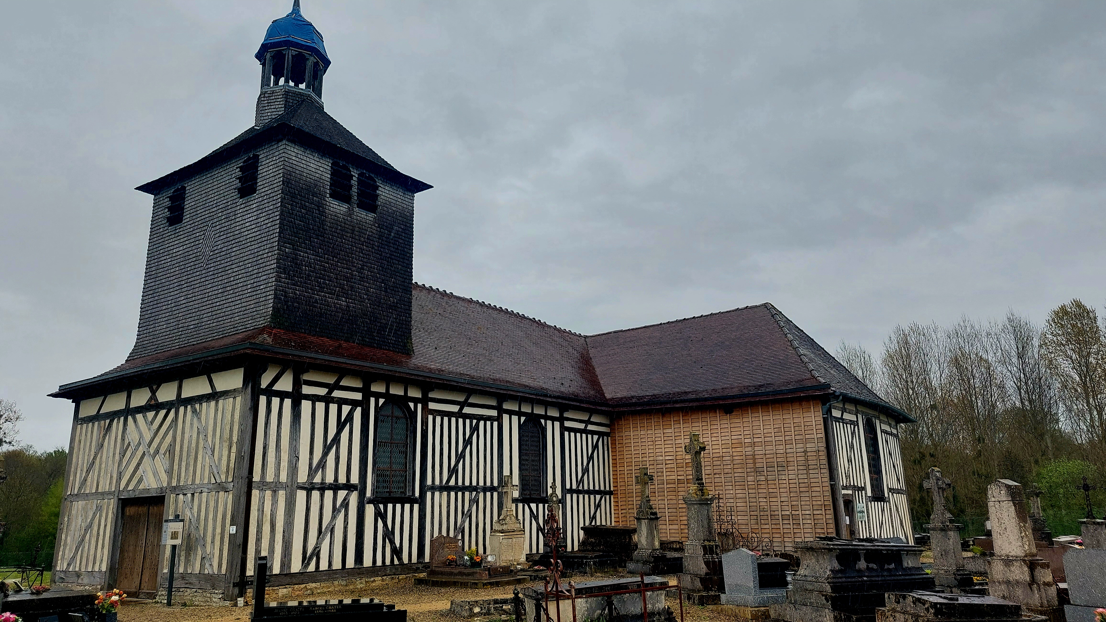 Superbe église, avec son petit cimetière accolé. Construction en pans de bois ( colombages), à quelque mètre d'un ancien château dont il ne reste que les vestiges d'anciennes douves ( Panneau avec explicatif de l'histoire du lieu, relative à Napoléon évidemment) Un lieu qui vaut le détour !!