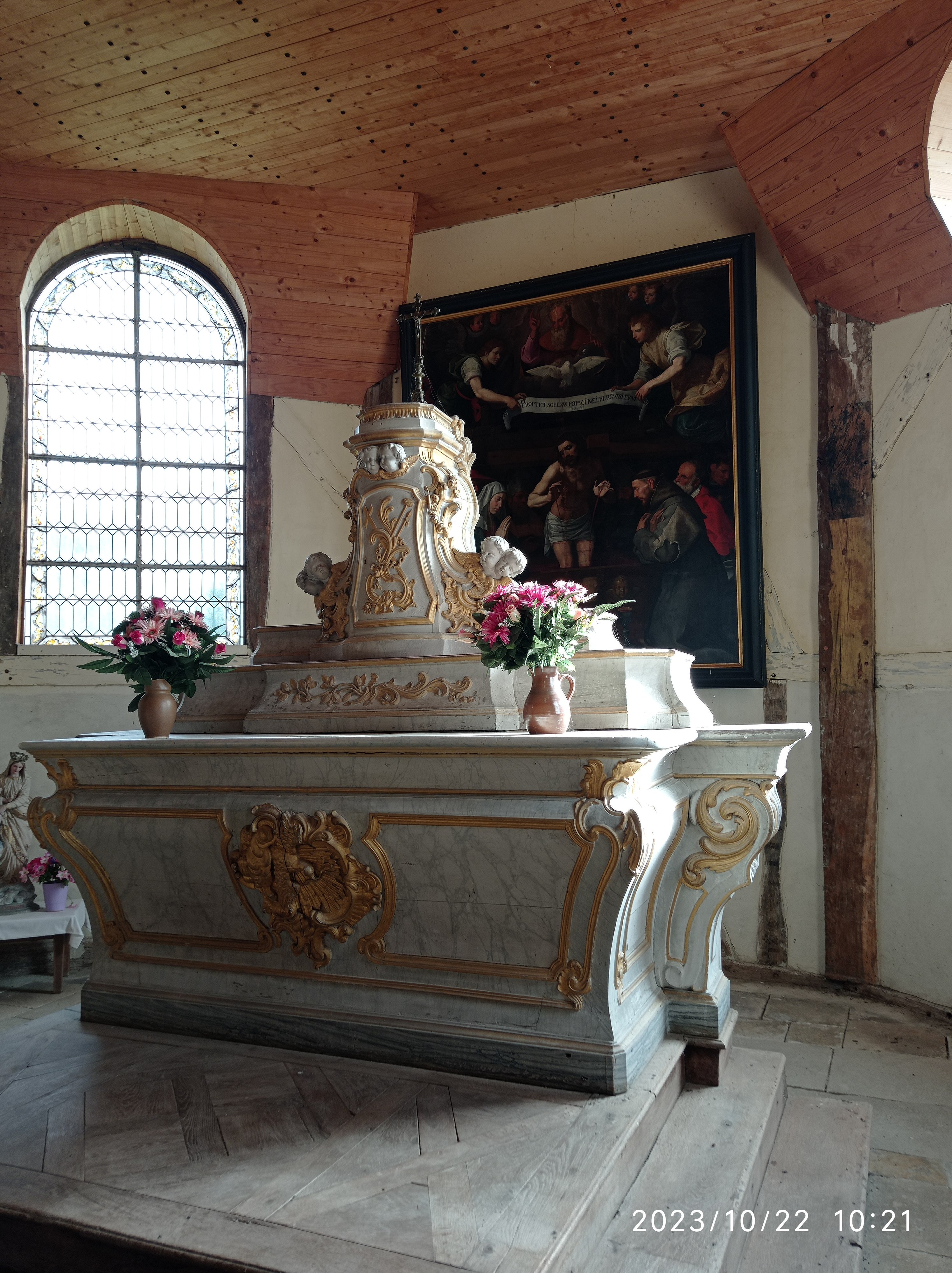 Jolie petite église en pan de bois, entretenue par une équipe de bénévoles. Des panneaux retracent son histoire depuis sa construction initiale. Beaucoup d'objets d'origine mériteraient d'être conservés dans d'autres conditions mais il faut de l'argent pour ça ! N'hésitez pas à contribuer à sa rénovation !