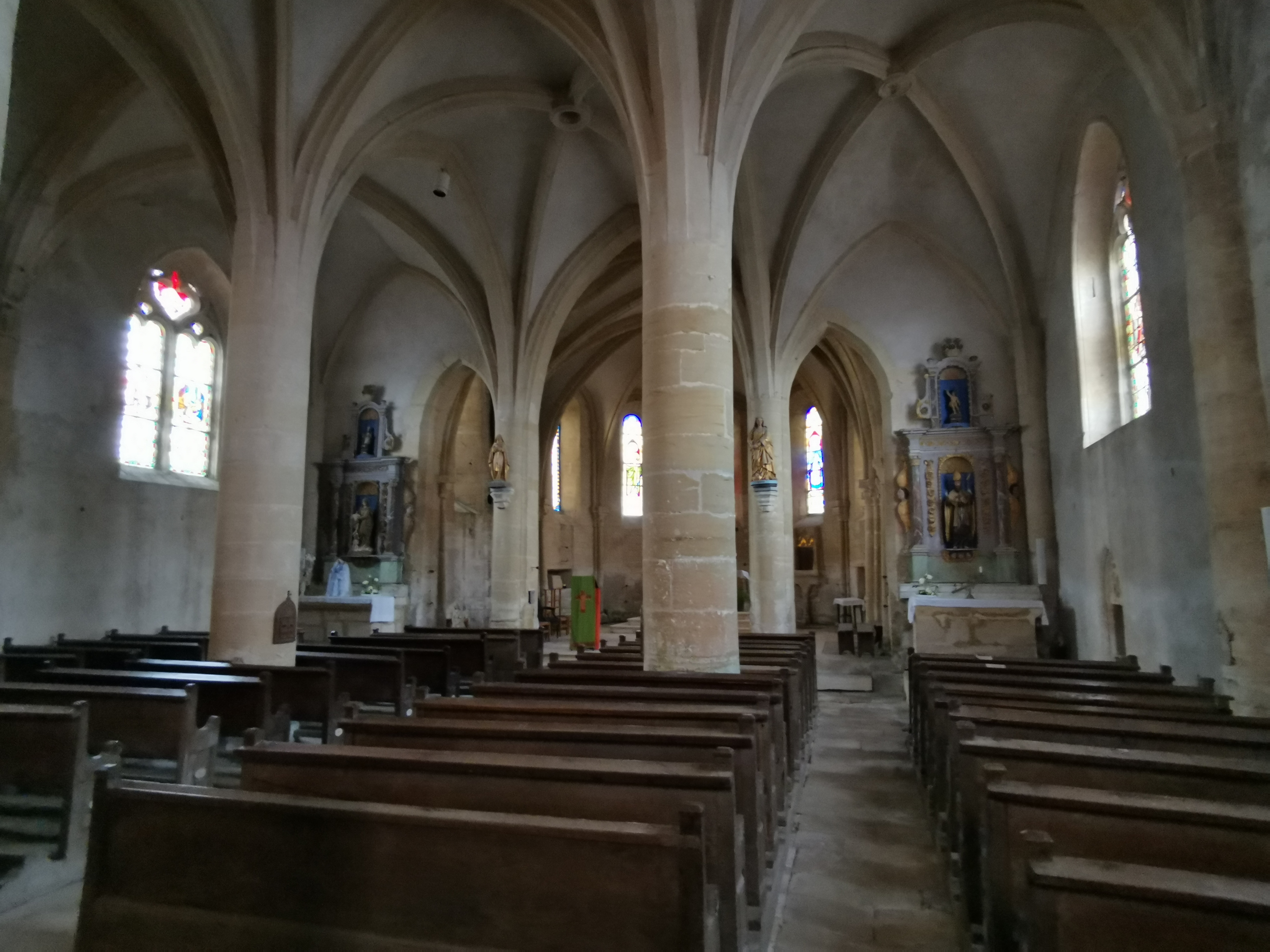 Un des plus bel exemple d'église fortifiée nichée sur le point à la fois central et le plus élevé de ce petit village, dommage qu'il n'est été possible de voir sa partie supérieure prévue en cas de siège, ses bretèches sont caractéristiques de sa polyvalence, mais il reste sans doute possible de la visiter en s'adressant en mairie, déjà eu l'occasion de voir des photos sur Facebook et c'est assez impressionnant, les combles abritent un vrai musée et la charpente est construite dans le même esprit .La porte d'entrée à supposer d'époque est petite mais lourde et massive, tout à l'image de l'édifice. Plus loin, le joli hameau de Remenoncourt et sa ferme également fortifiée. J'ai finalement pu accéder aux combles impressionnantes à l'occasion de la journée du patrimoine, il n'y avait malheureusement pas d'éclairage, donc des clichés un peu sombres dans une atmosphère particulière.