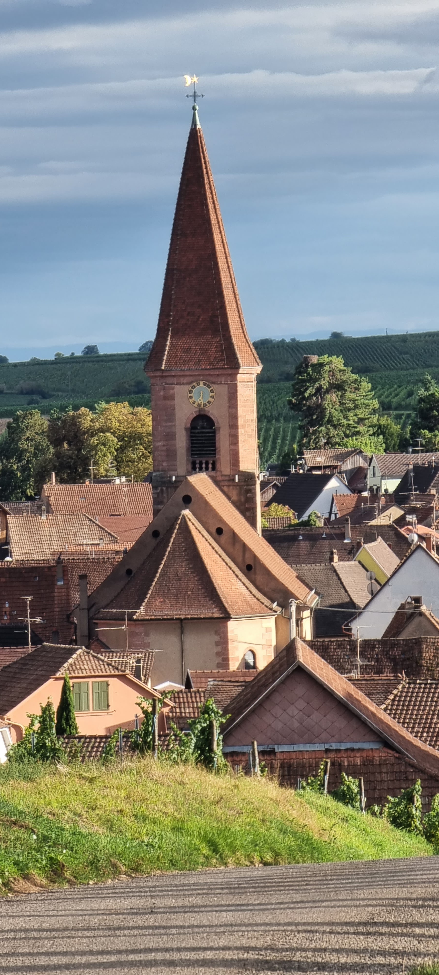 Église en pierre avec un joli toit rouge bien intégrée dans les maisons du village, construite au dix-huitième siècle et rénovée deux fois au vingtième siècle. La paroisse fait partie de la communauté « Les Sarments du Hohlandbourg ». Malheureusement, on a pas su visiter l’intérieur. (Traduction Google) Stone church with a pretty red roof well integrated into the village houses, built in the eighteenth century and renovated twice in the twentieth century. The parish is part of the community Les Sarments du Hohlandbourg. Unfortunately, we did not know how to visit the interior.