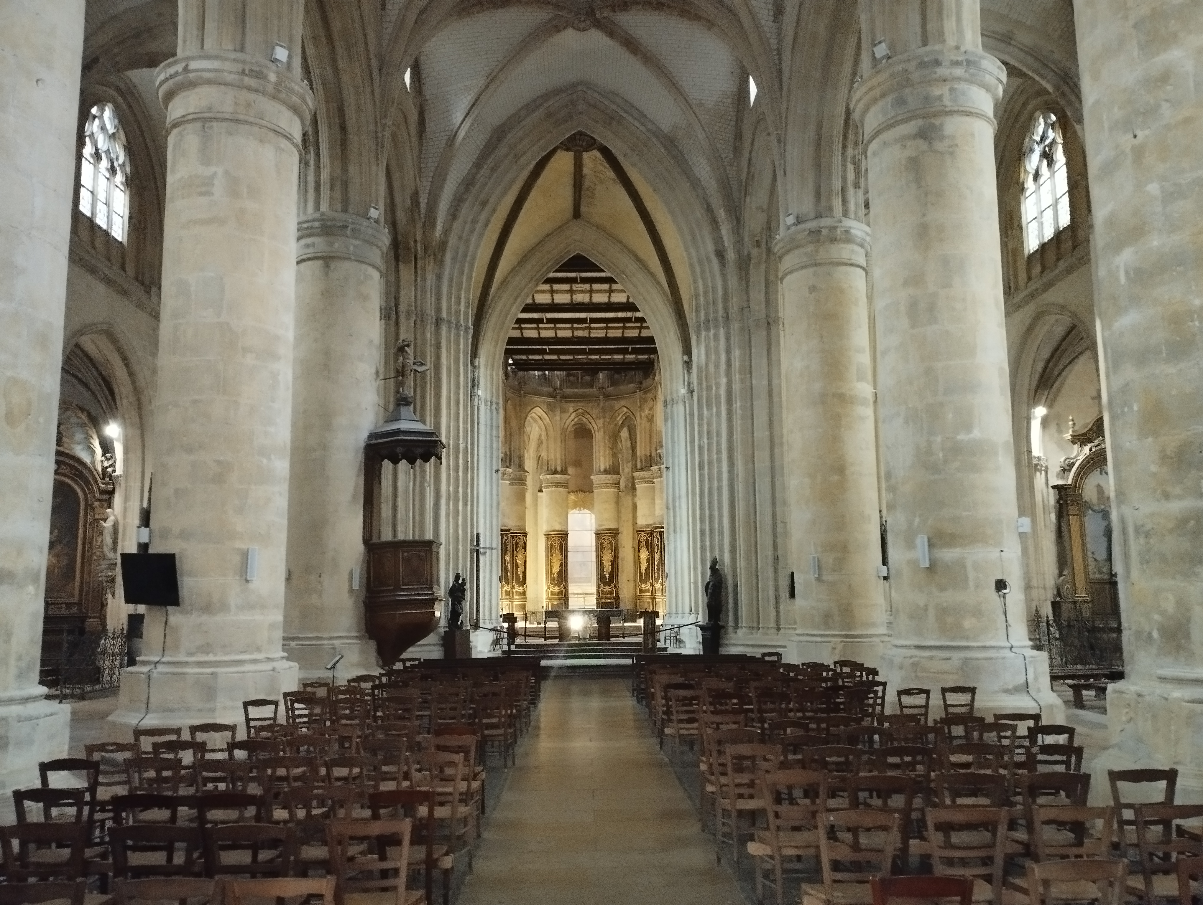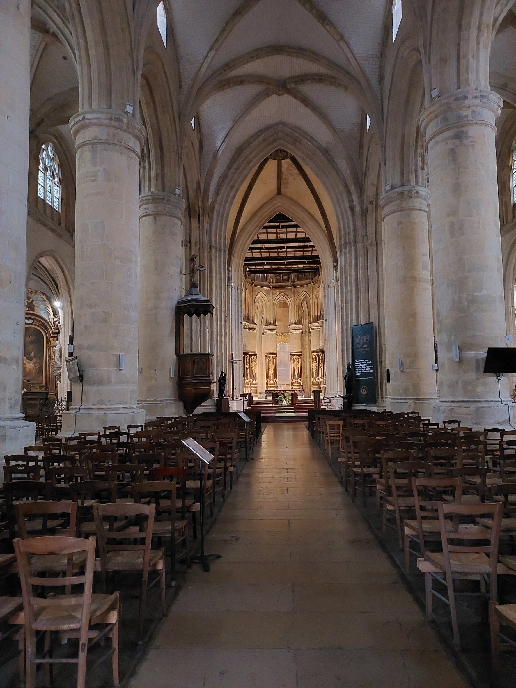 Belle église aux piliers imposants.